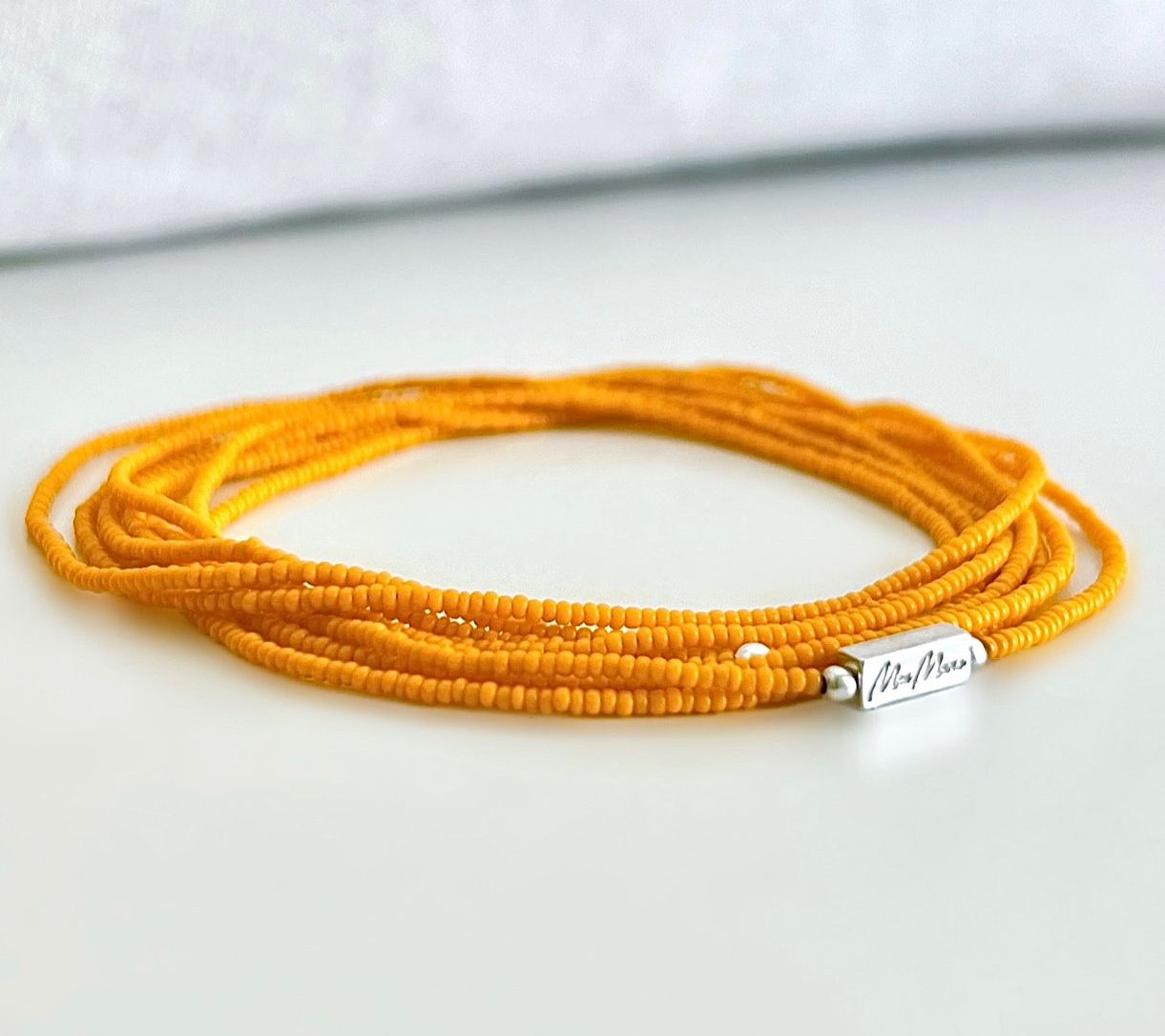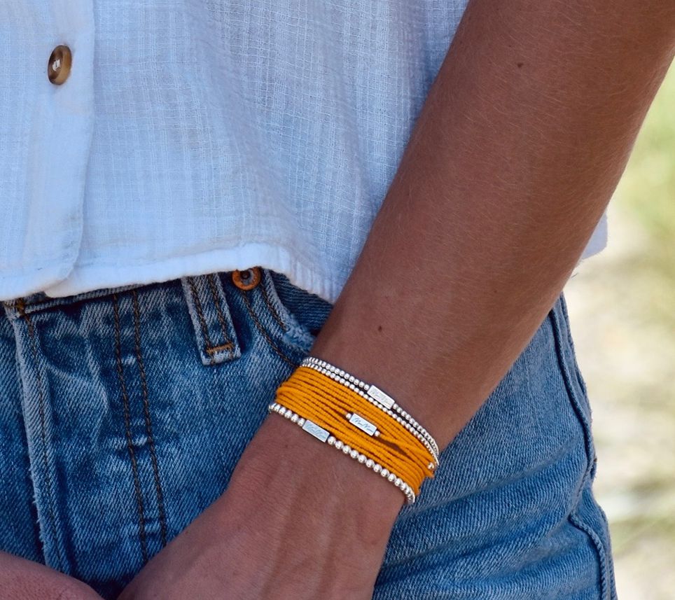 As you wrap these glass beads around your wrist, the idea is to take a moment to set a personal intention. The beads can then serve as a subtle and gentle reminder of your aspiration without being conspicuous. From MaeMarie Wraps.