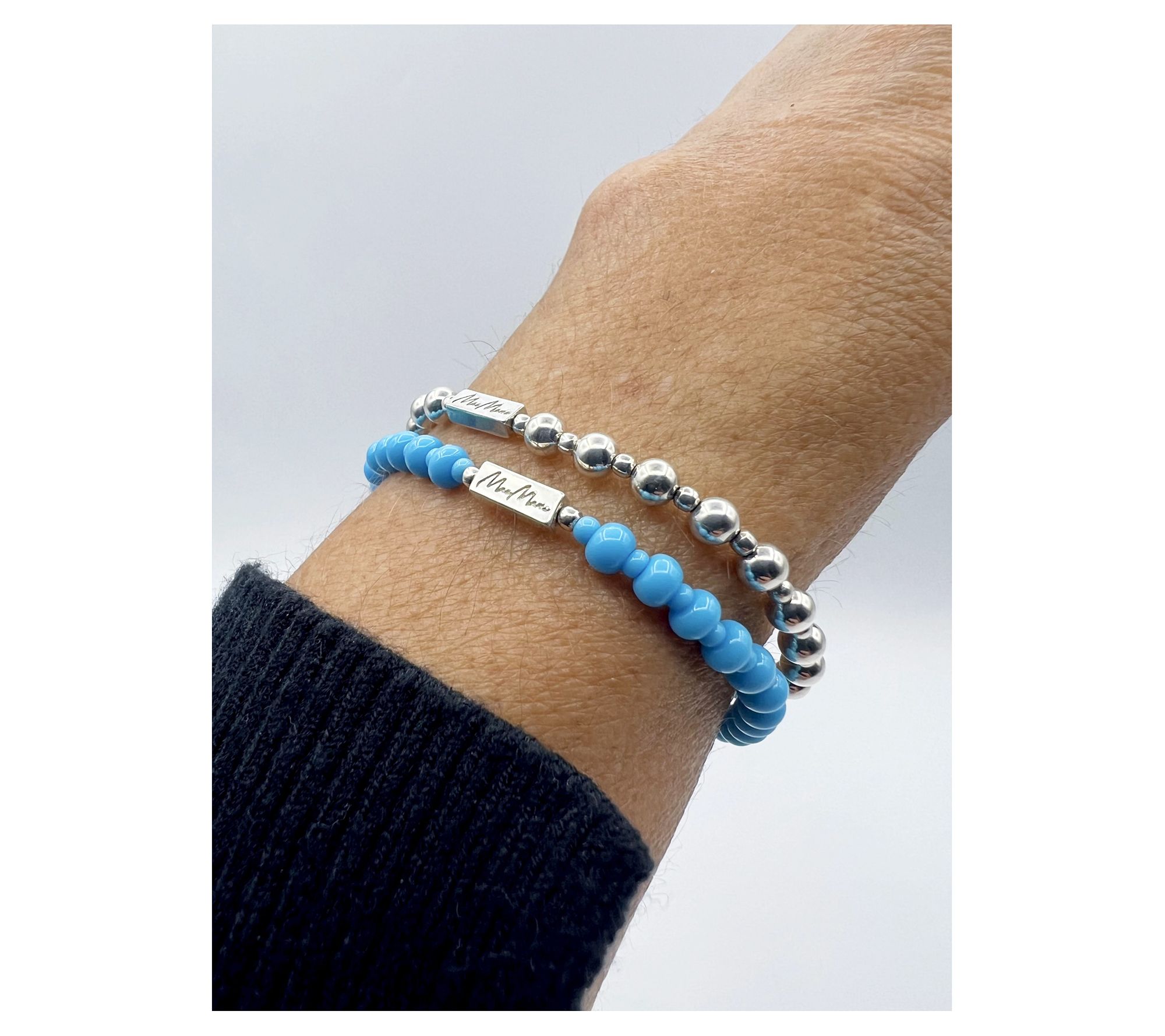 When you just want a simple accessory or want to add color to your stack, this Sky Bubble beaded bracelet makes a sophisticated choice. From MaeMarie Wraps.