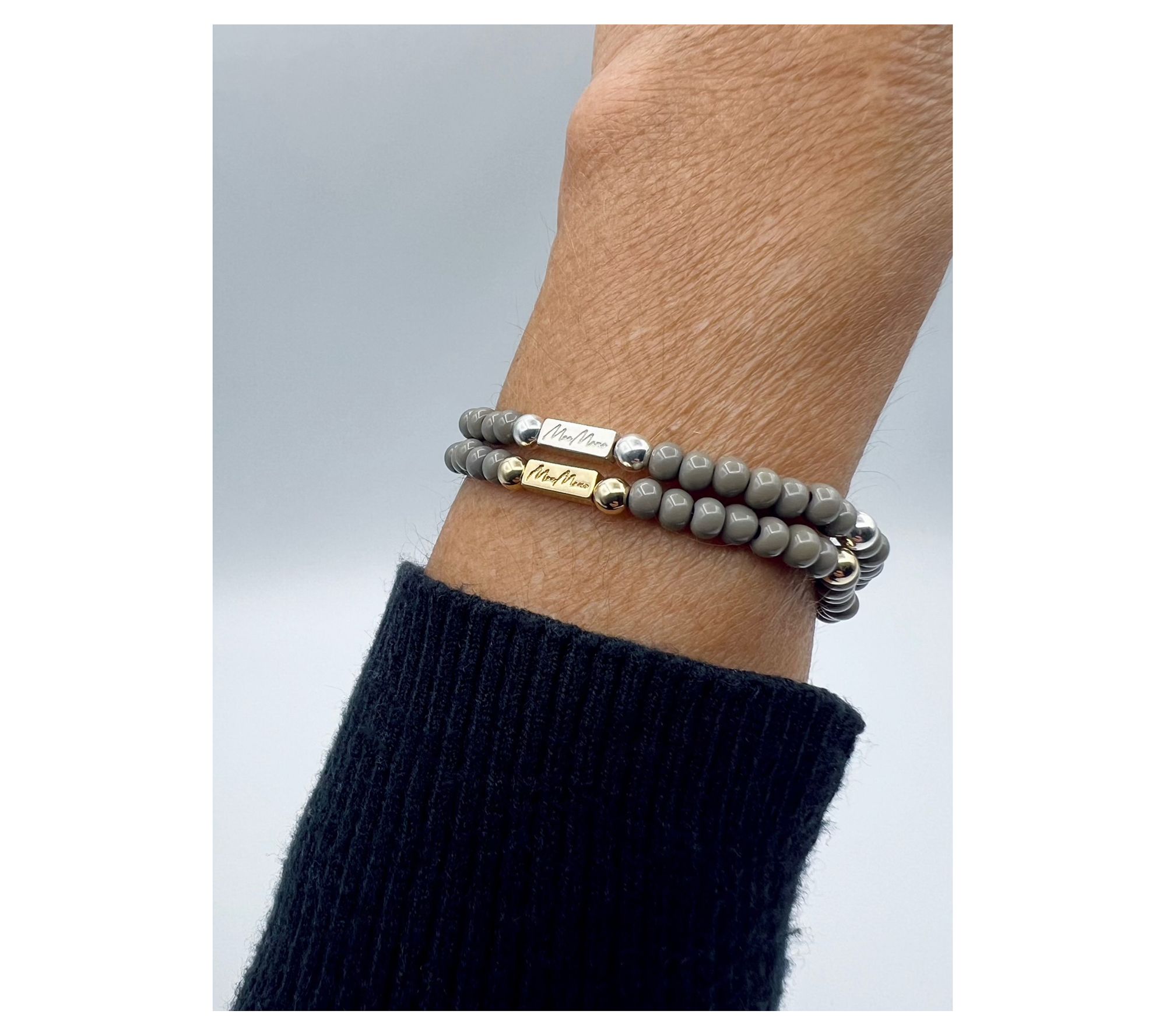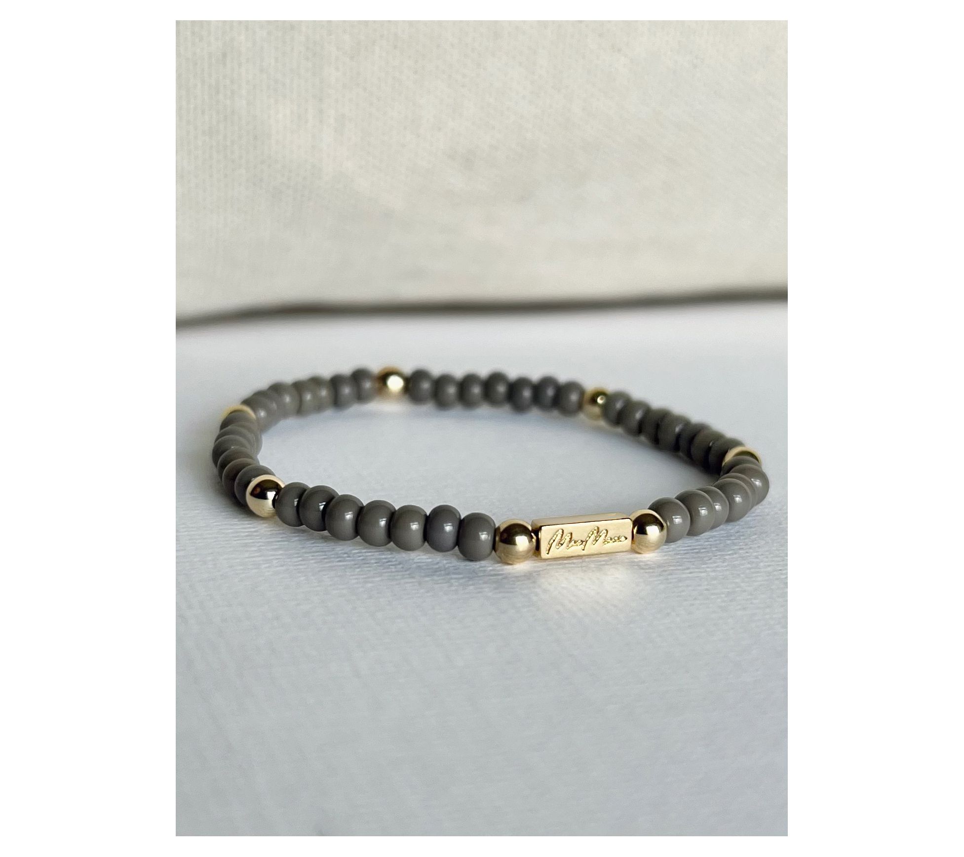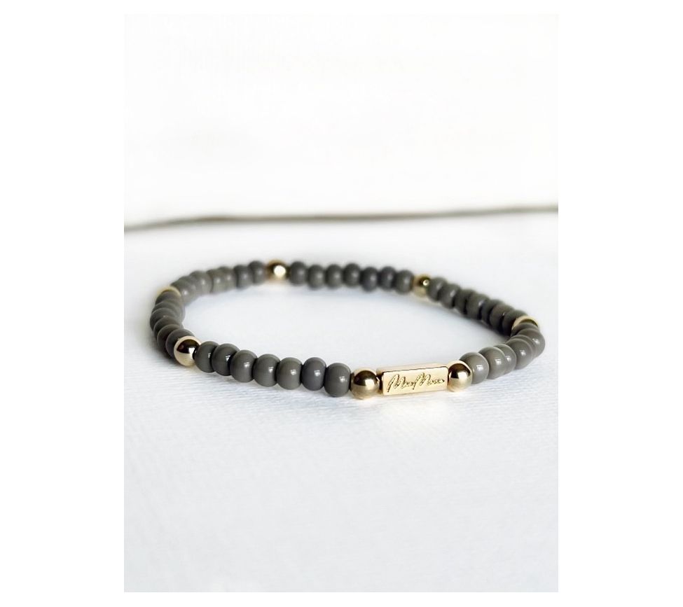 • Beaded, tied, glued, and crimped by the MaeMarie team; strong elastic; 14K gold-filled sterling silver and European glass beads