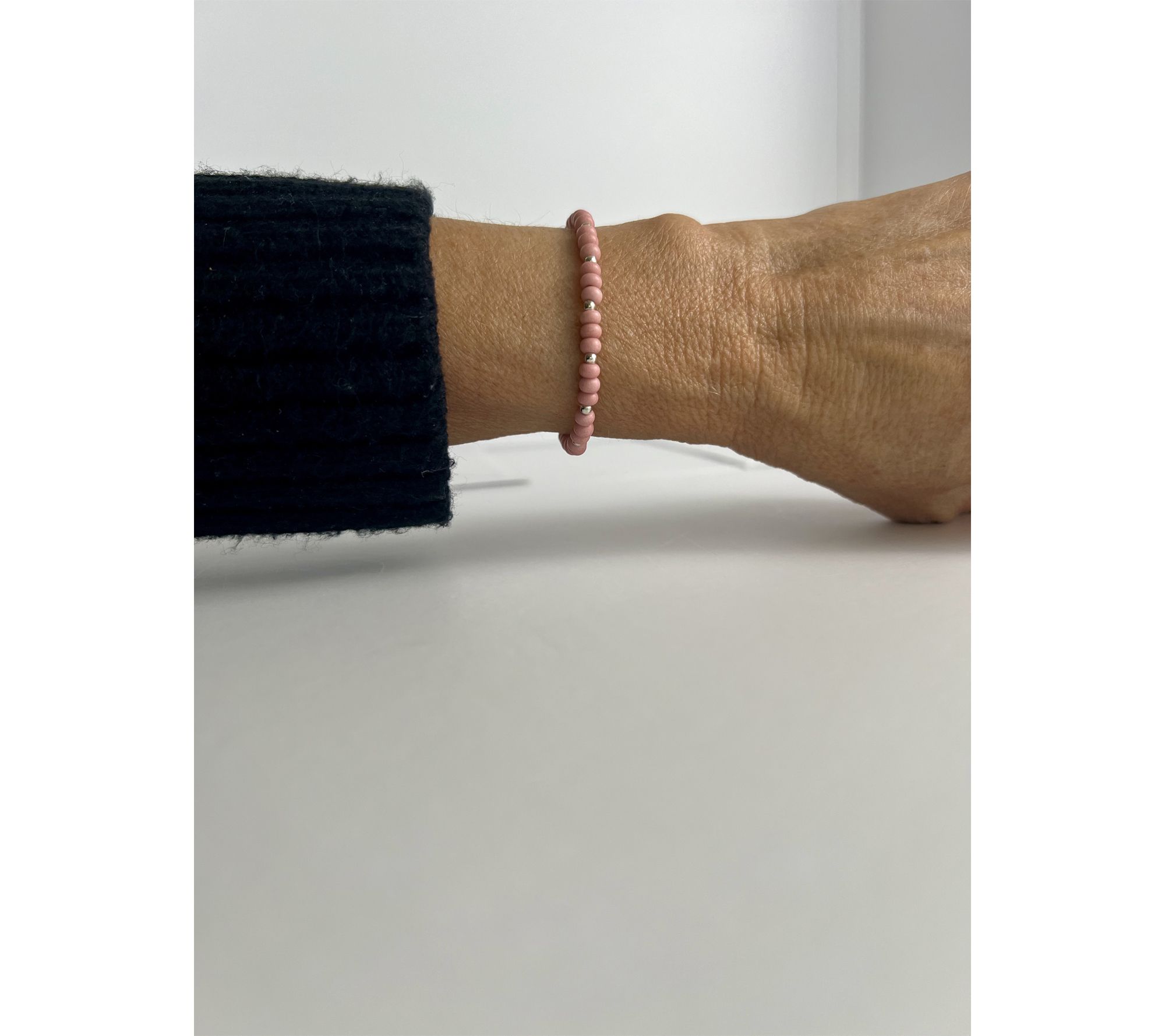• Stretch, slip-on style; beaded, tied, glued; features glass beads and sterling silver beads