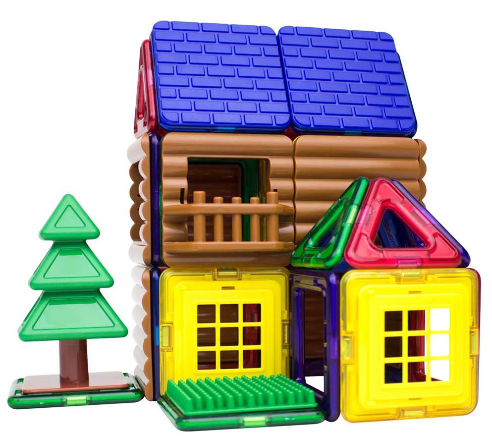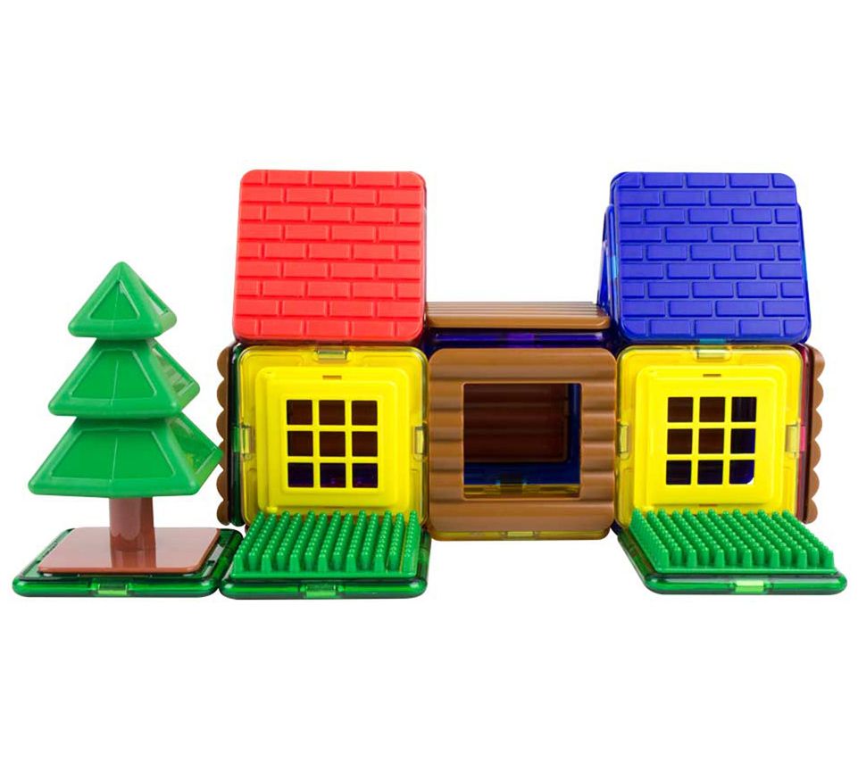 The great outdoors are even greater with a cozy cabin or tree house built with imagination. Kids combine an assortment of magnetic shapes and accessories to build balconies and walls of their structure, then add windows, turf, and trees. From Magformers.