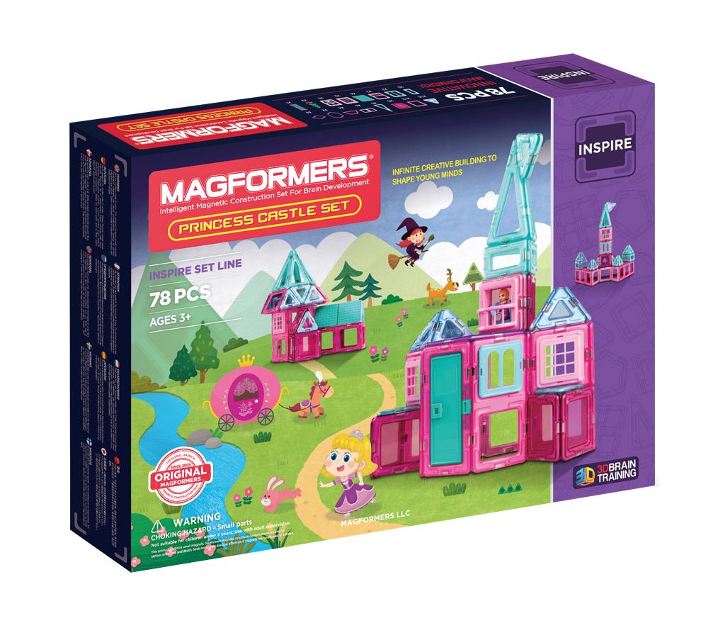 Build your own dream castle with this Magformers princess set. Set the princess on her balcony or have her gaze out of the castle windows onto her kingdom. From Magformers.
