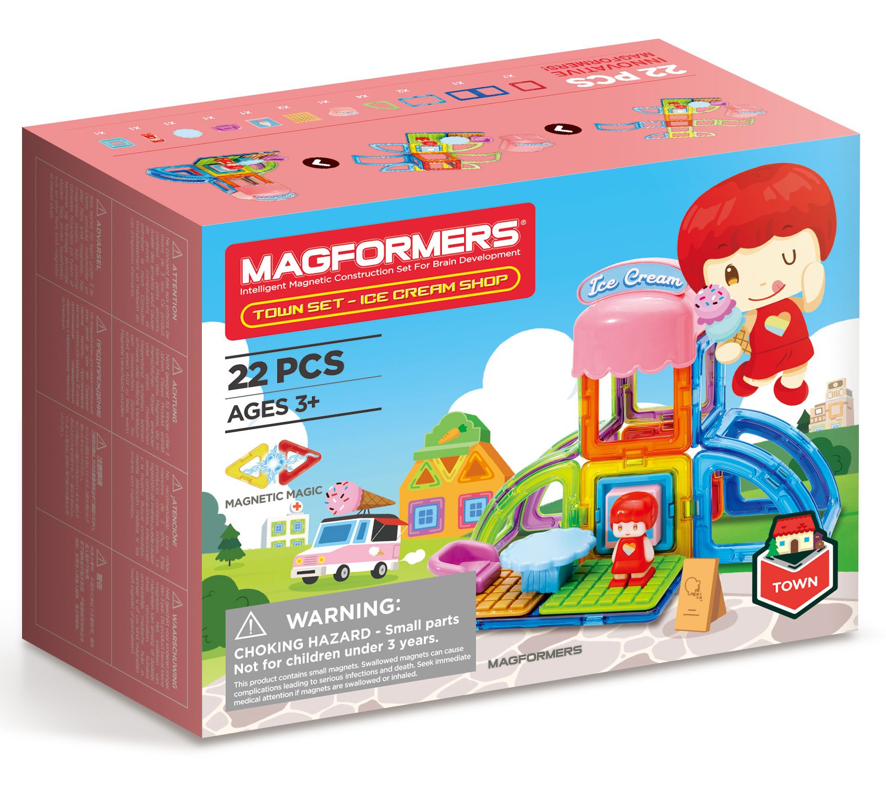 • Includes 22 pieces: seven squares, two arches, four sectors, rectangle, ice cream sign, two base plates, ice cream block, mini chair, mini table, ice cream seller, wall plate, and idea booklet