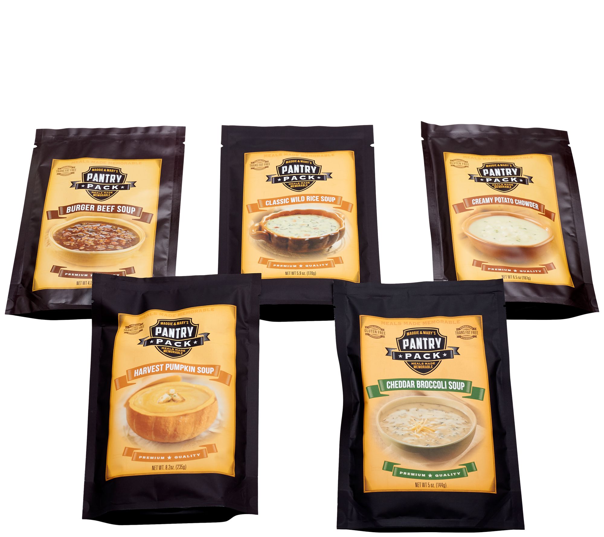 • Includes five soup mixes: 8.3-oz Pumpkin, 5.9-oz Wild Rice, 4.1-oz Burger Beef, 6.5-oz Creamy Potato, and 5-oz Cheddar Broccoli