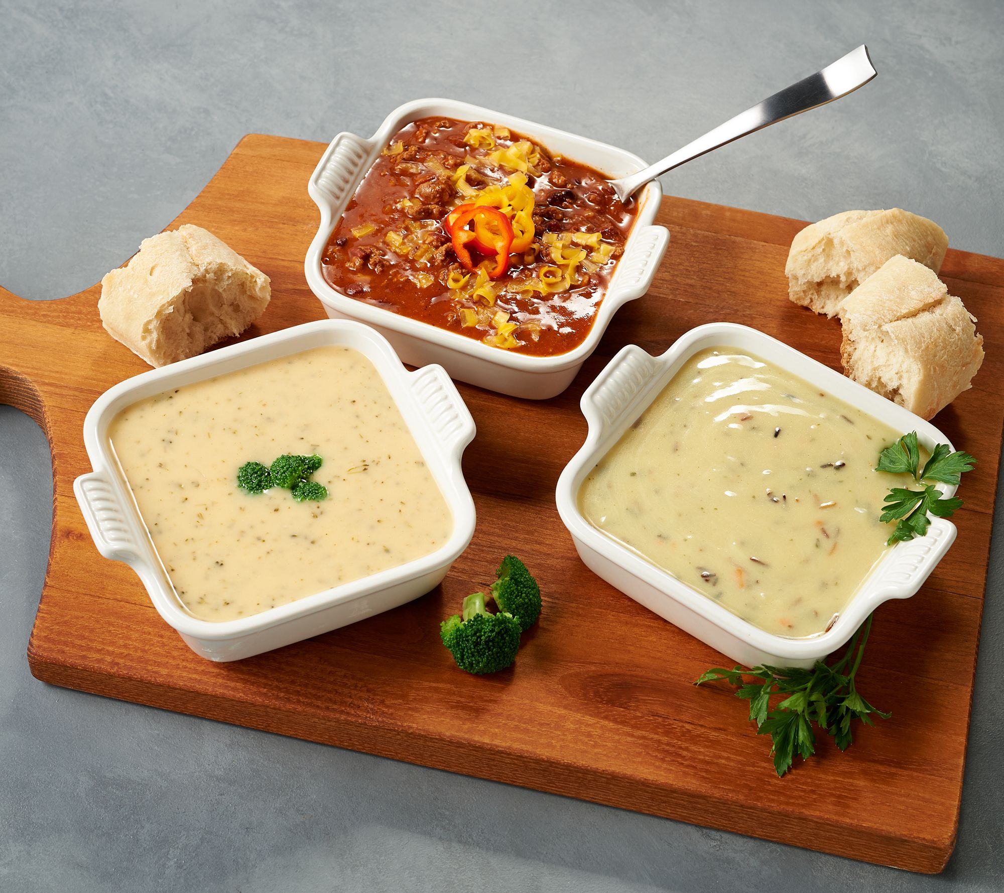 There's nothing like a steaming hot bowl of soup on a chilly day. Warm up with the hearty flavors of cheddar broccoli, wild rice, and roadhouse chili one satisfying spoonful at a time. From Maggie and Mary's Pantry.