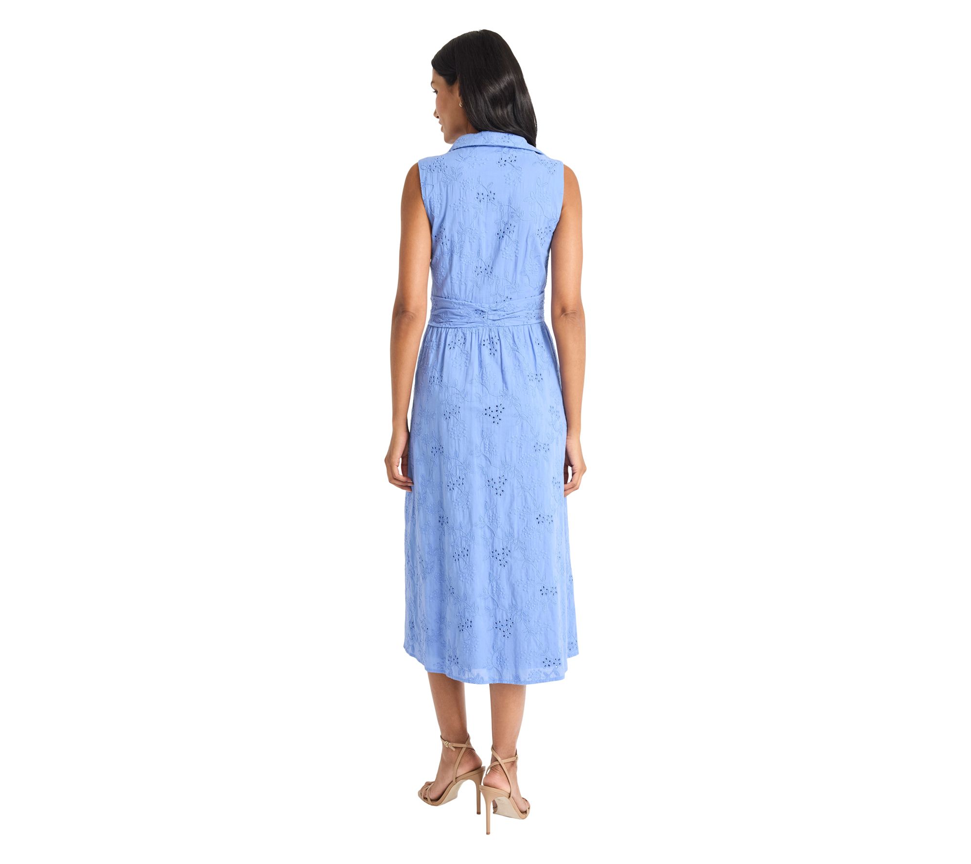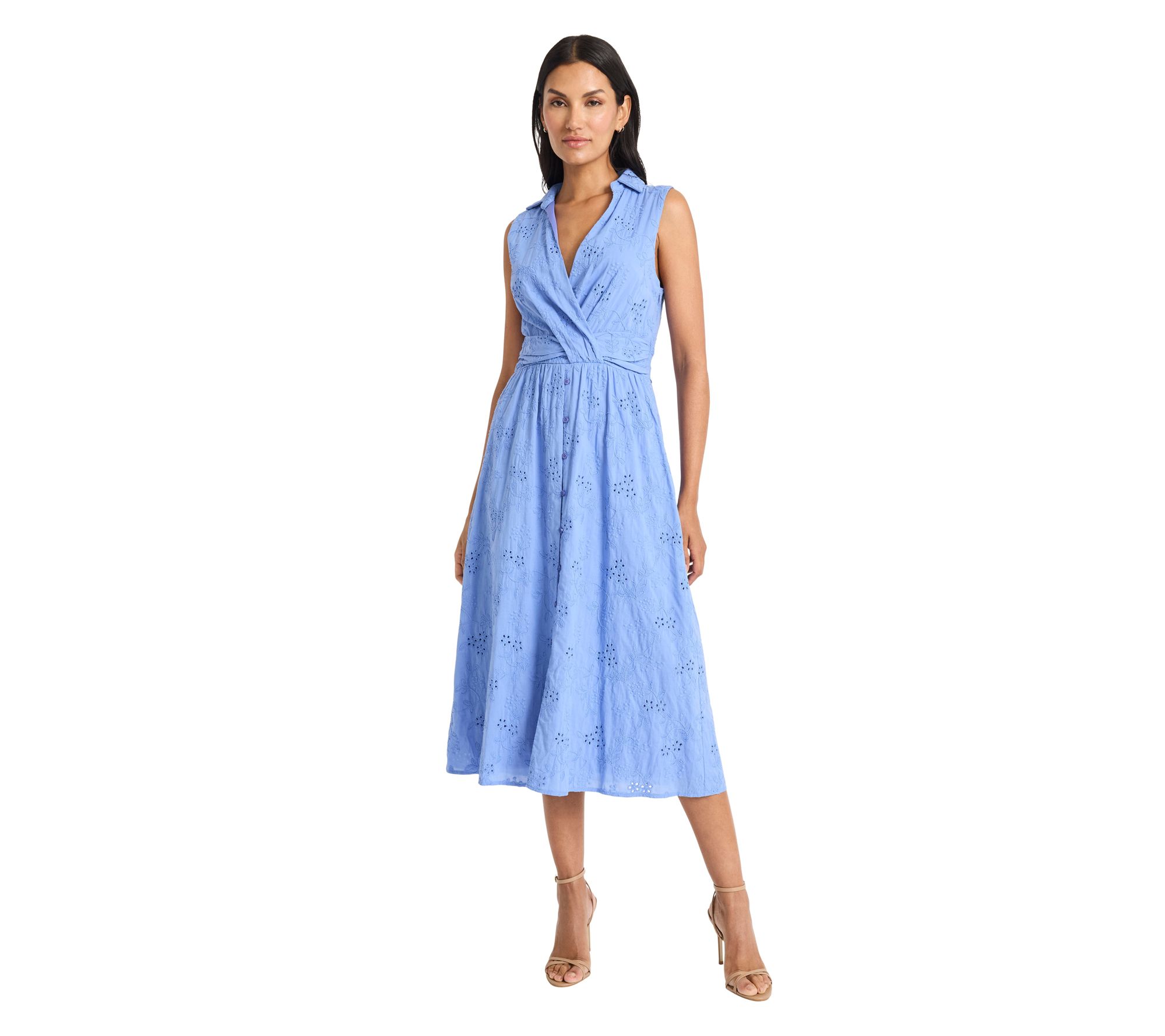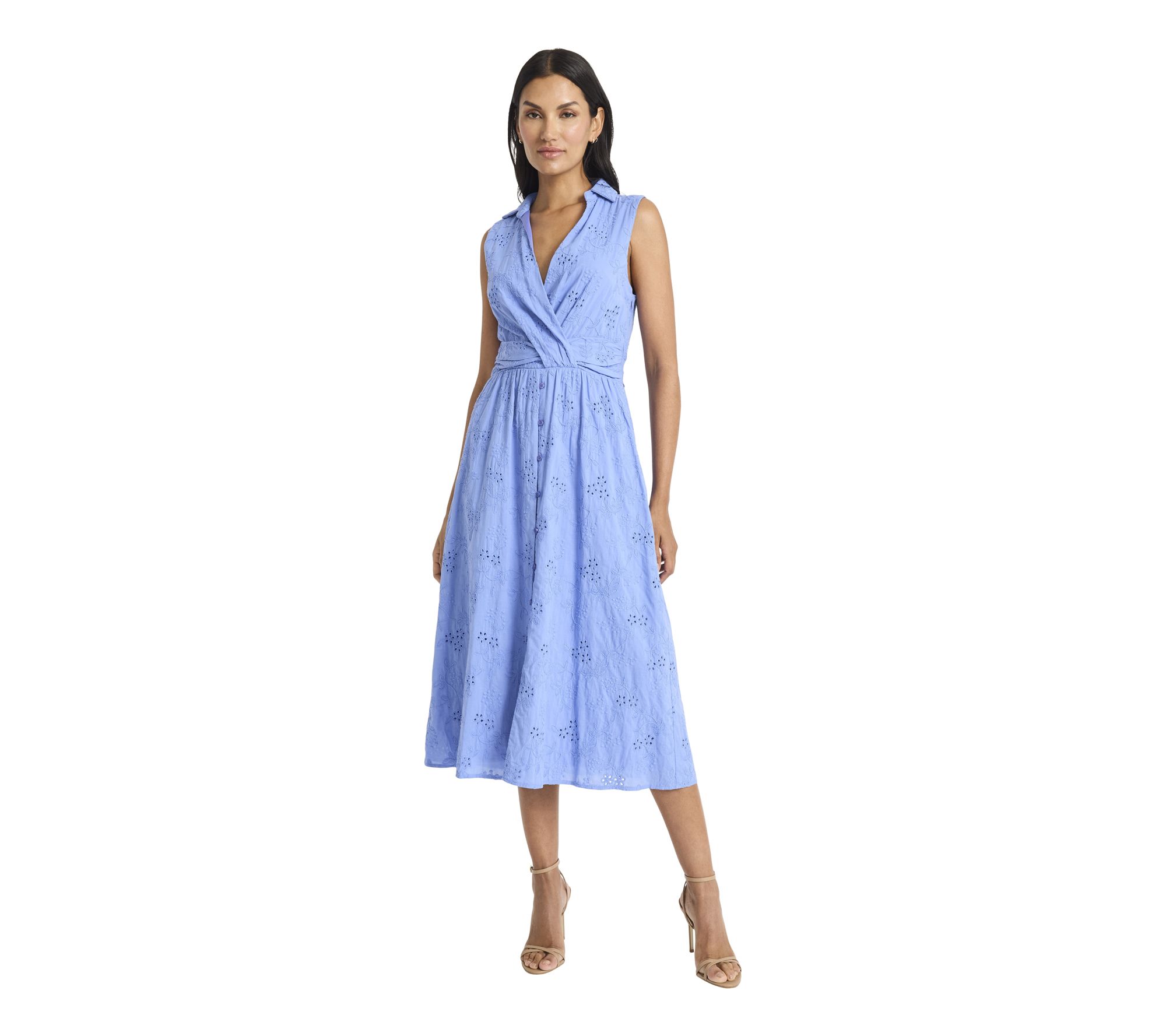 Celebrate springtime occasions with a midi dress that brings a romantic touch to garden parties and brunches alike. Intricate eyelet lace catches the light beautifully, giving a fresh update to classic style while offering comfort and grace throughout your day. From Maggy London.