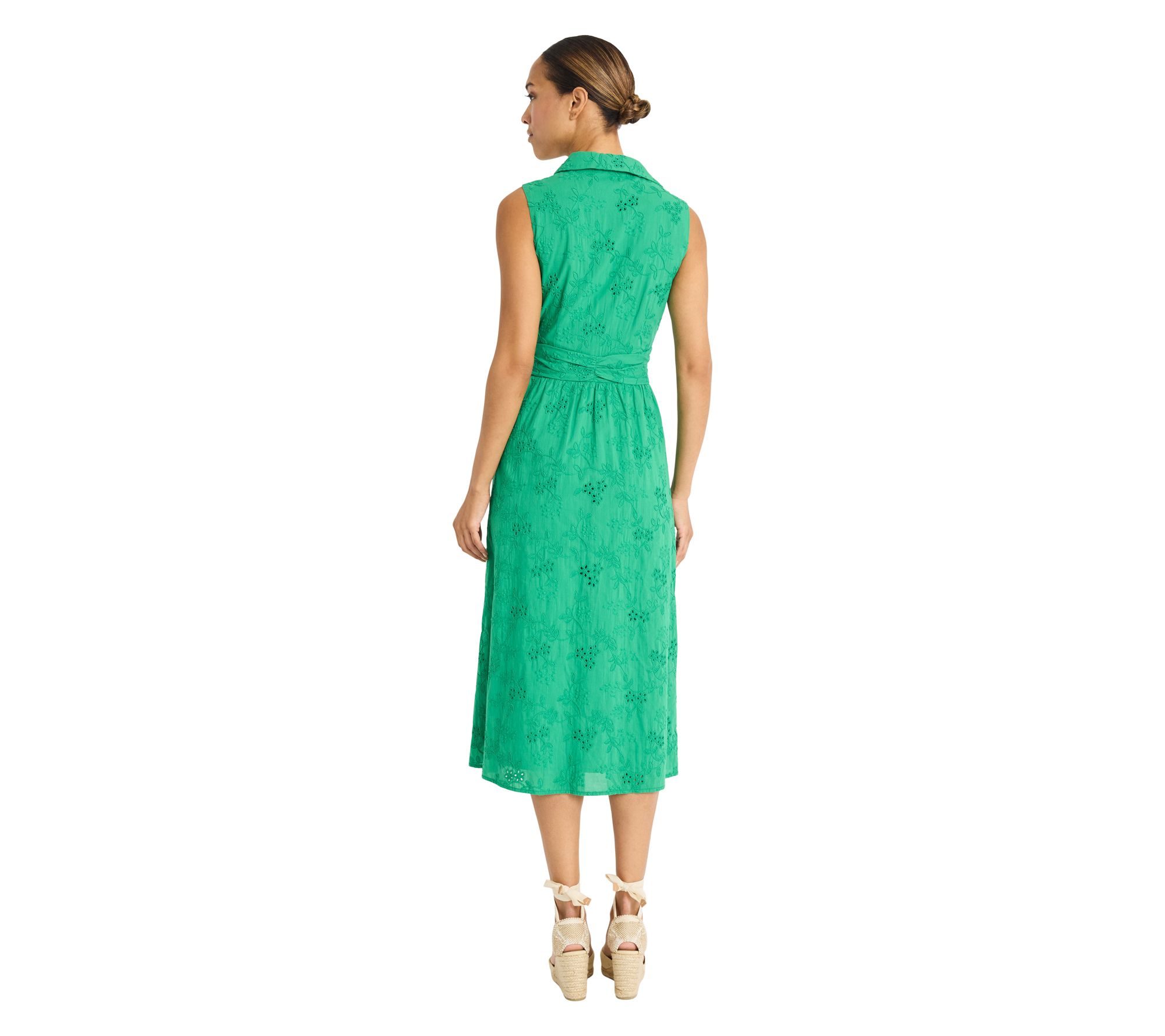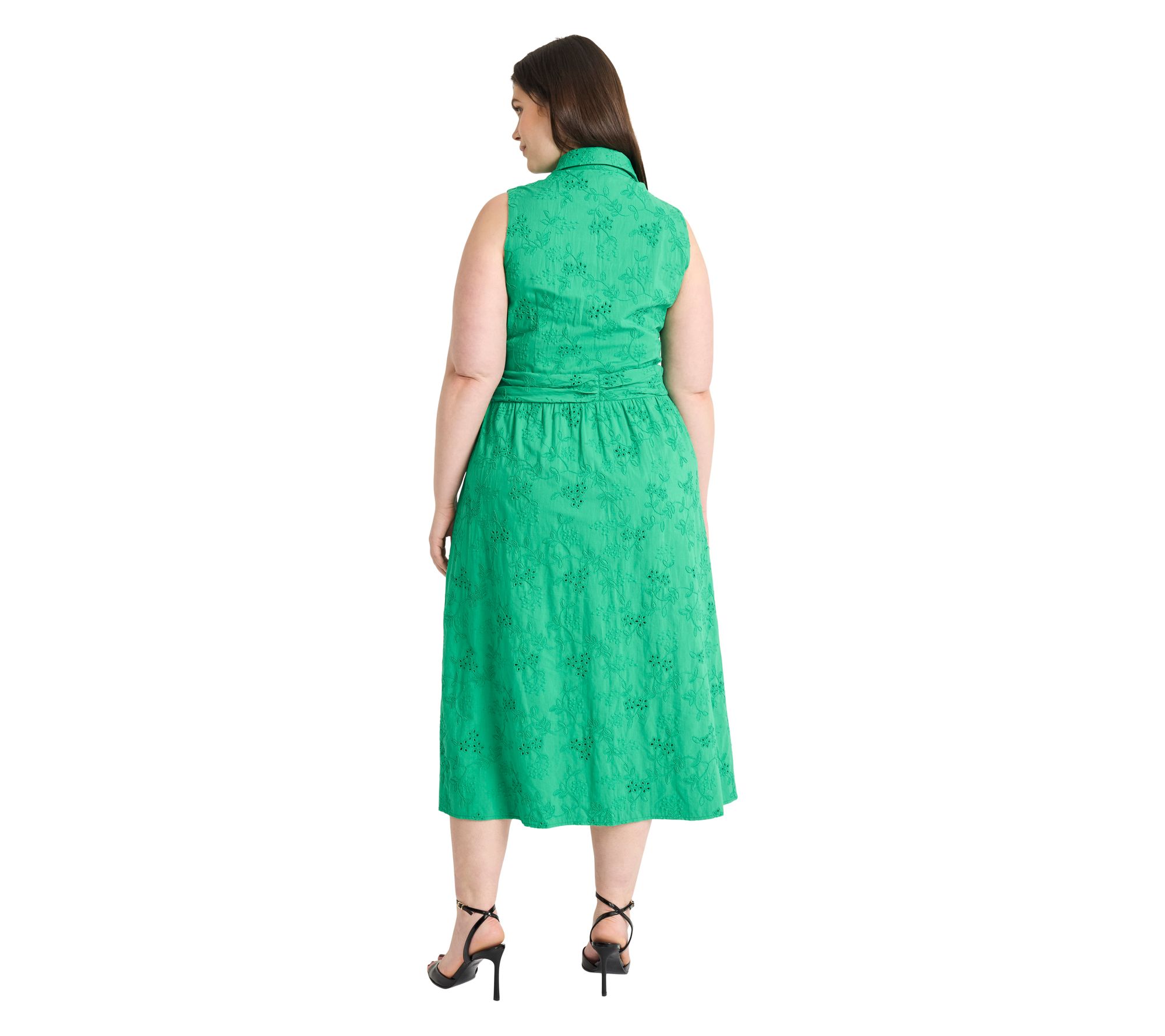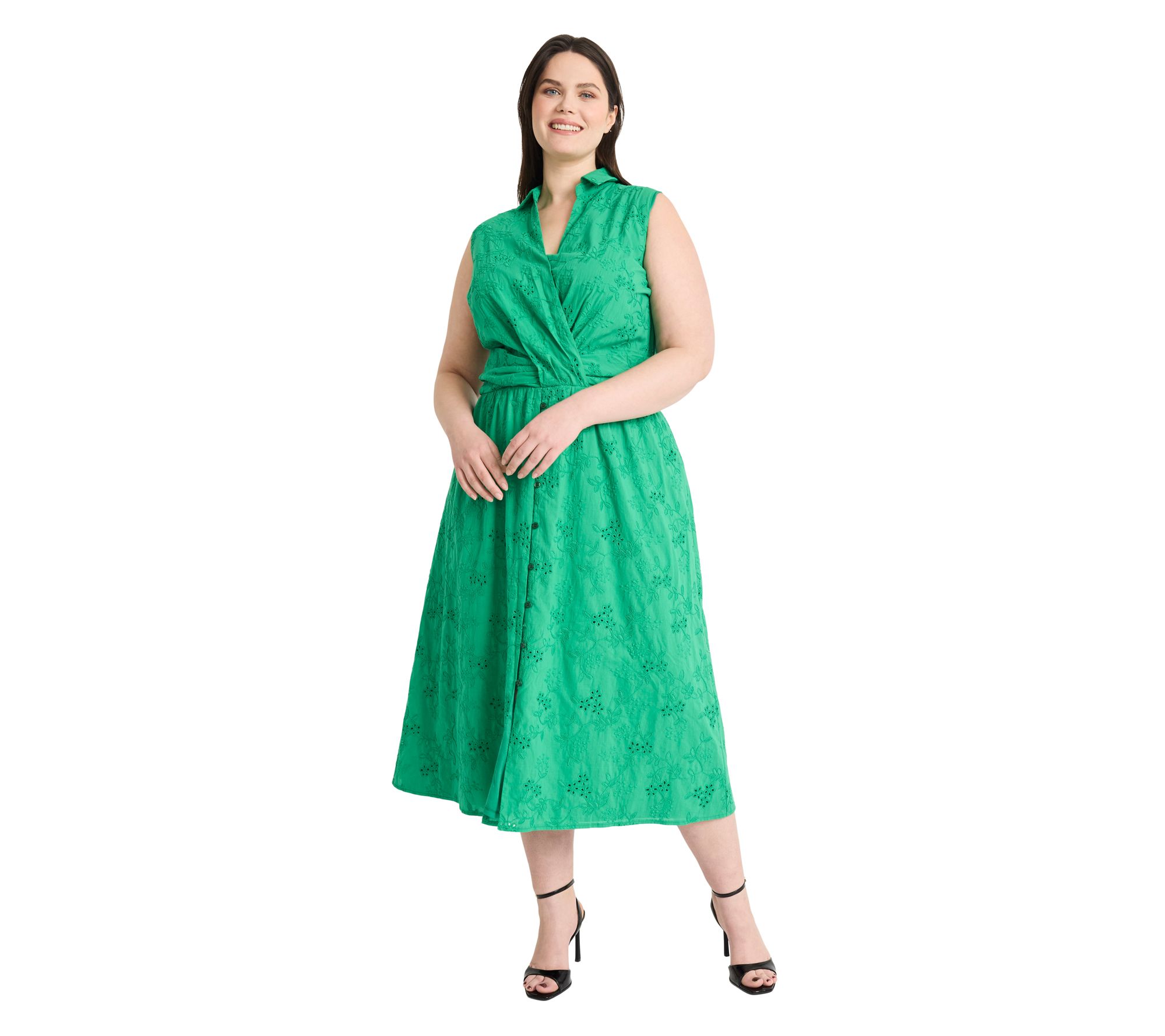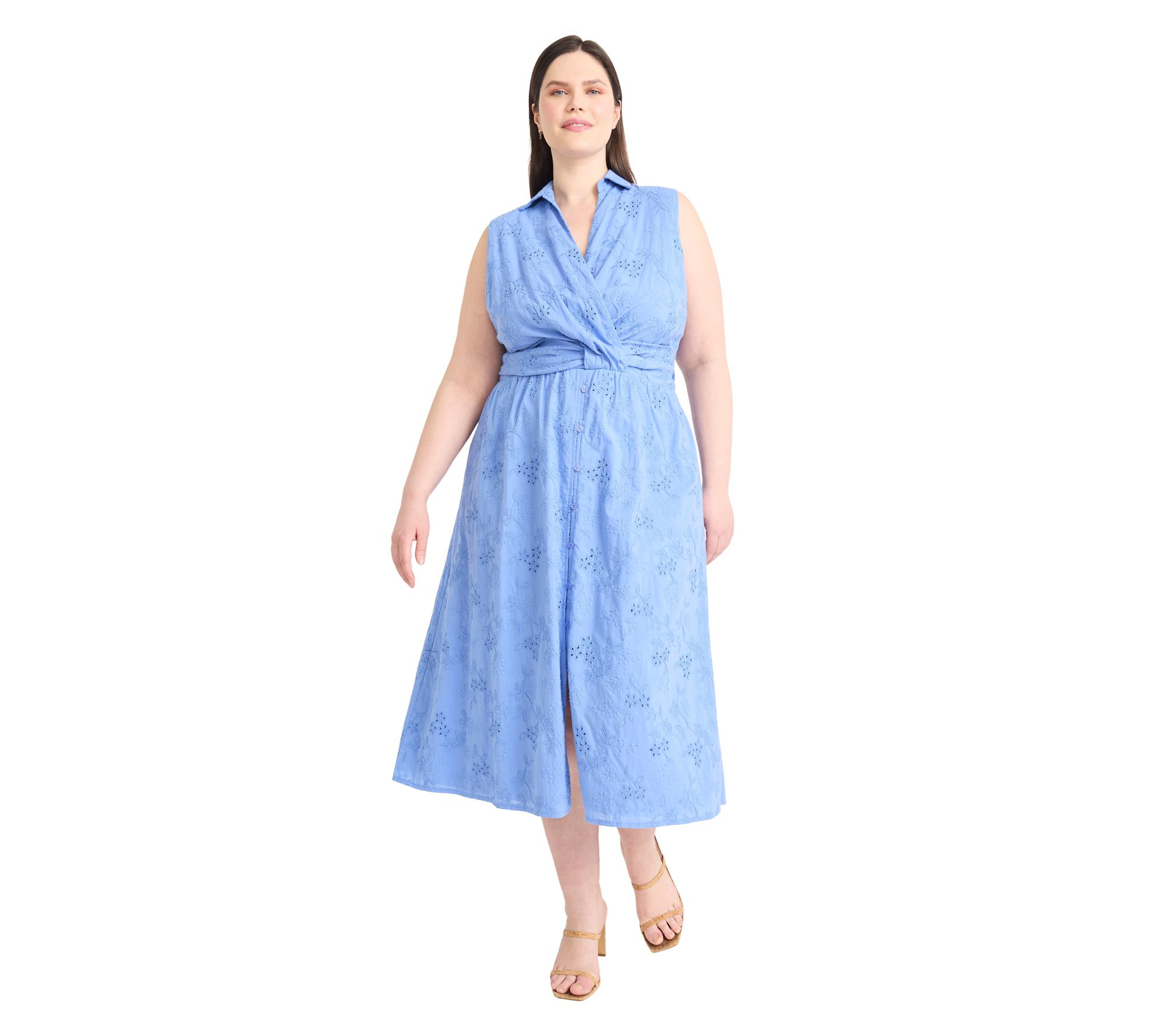 Celebrate springtime occasions with a midi dress that brings a romantic touch to garden parties and brunches alike. Intricate eyelet lace catches the light beautifully, giving a fresh update to classic style while offering comfort and grace throughout your day. From Maggy London.