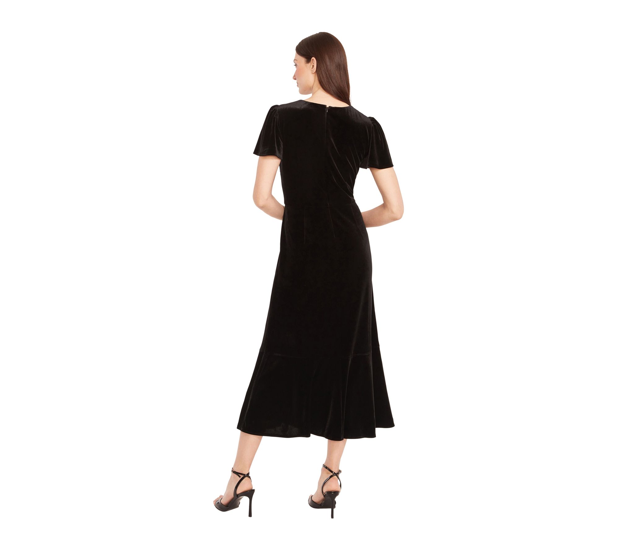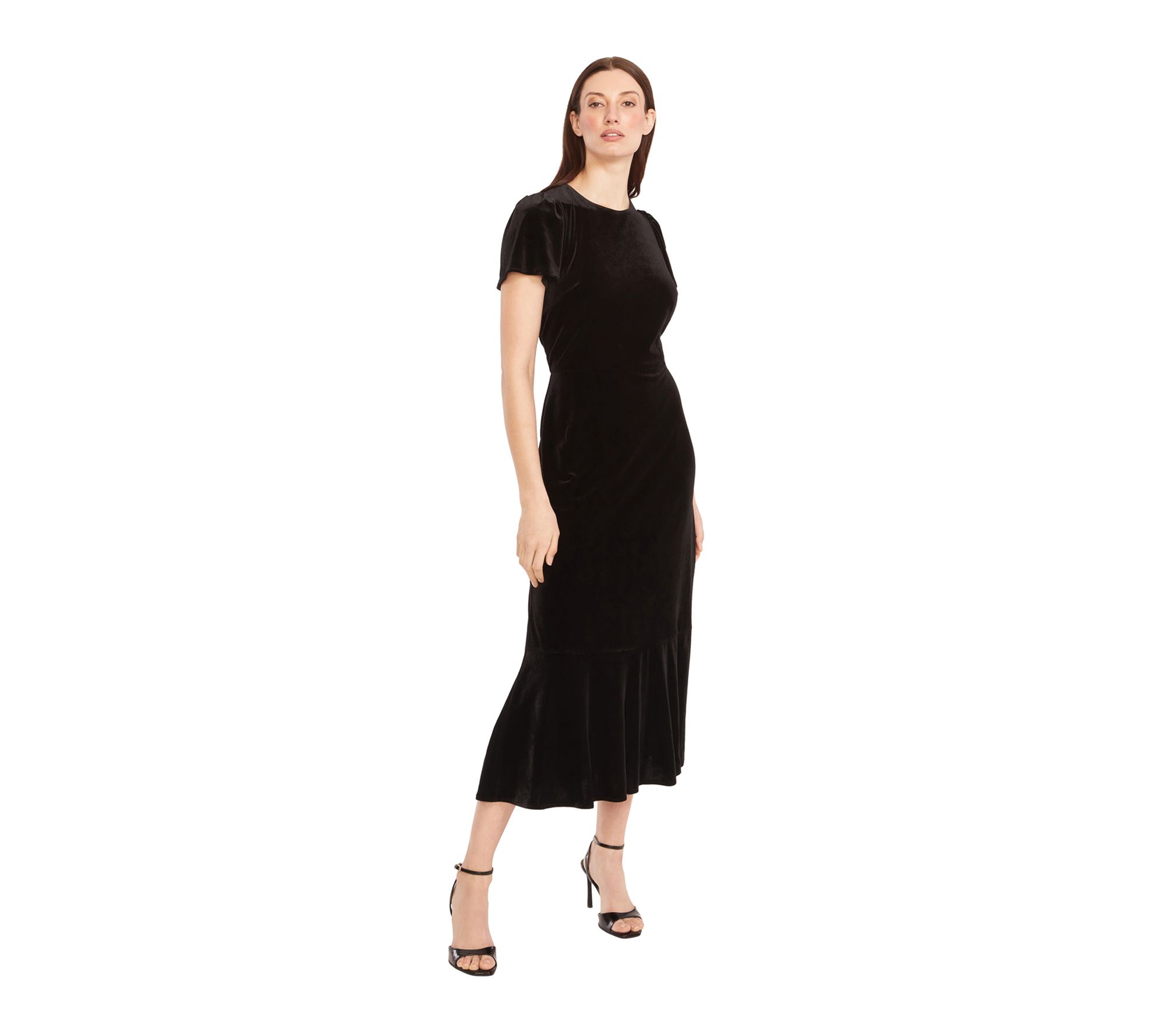 Smooth velvet glides over your silhouette for a look that feels as stunning at a wedding or an evening soiree as it does during a holiday celebration. Gentle short sleeves and a streamlined shape create a dress that's poised for cherished moments and memorable entrances. From Maggy London.