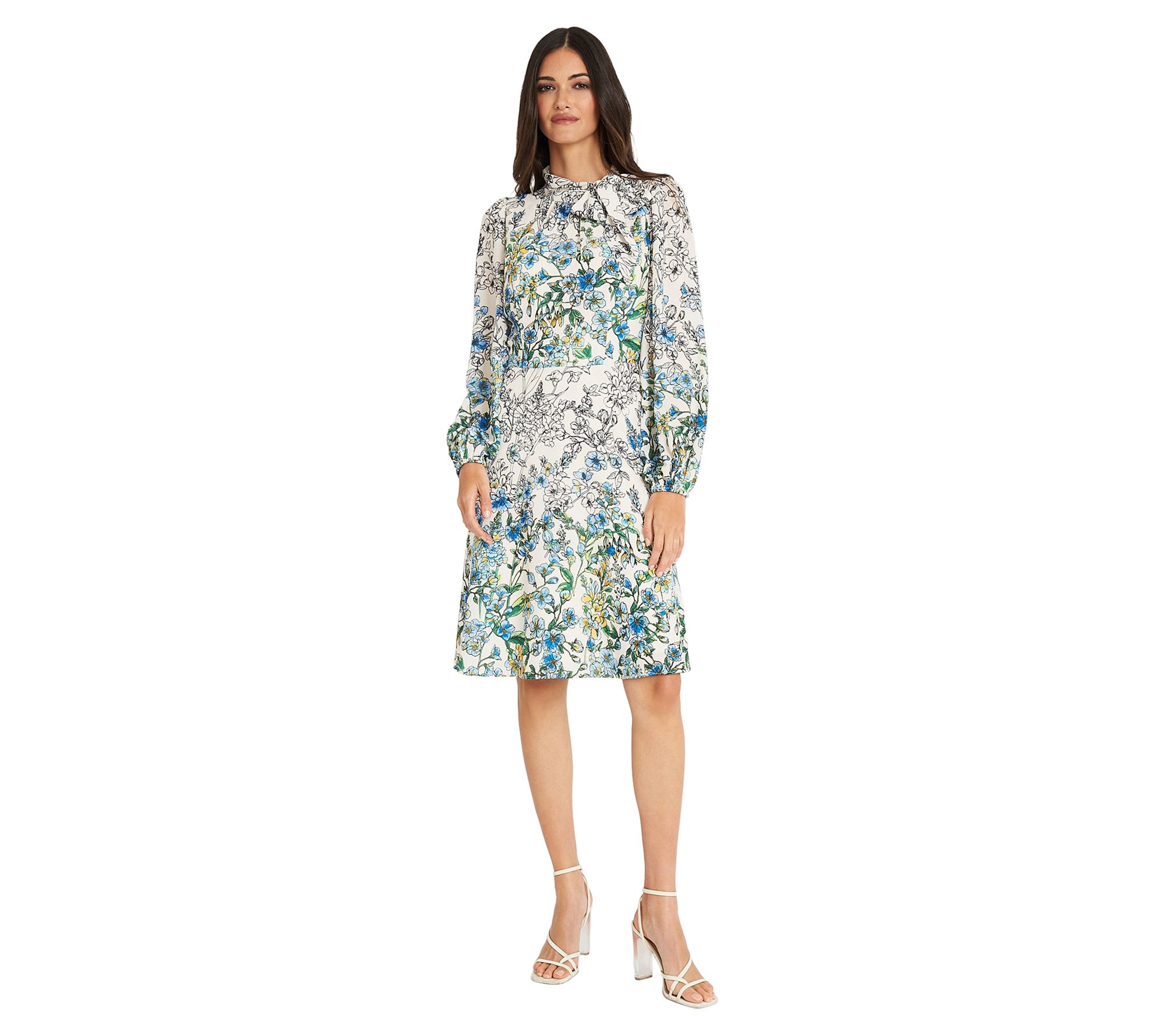 Exude carefree charm on your next outing in this flirty dress featuring a lively print and a curve-accentuating silhouette. From Maggy London.