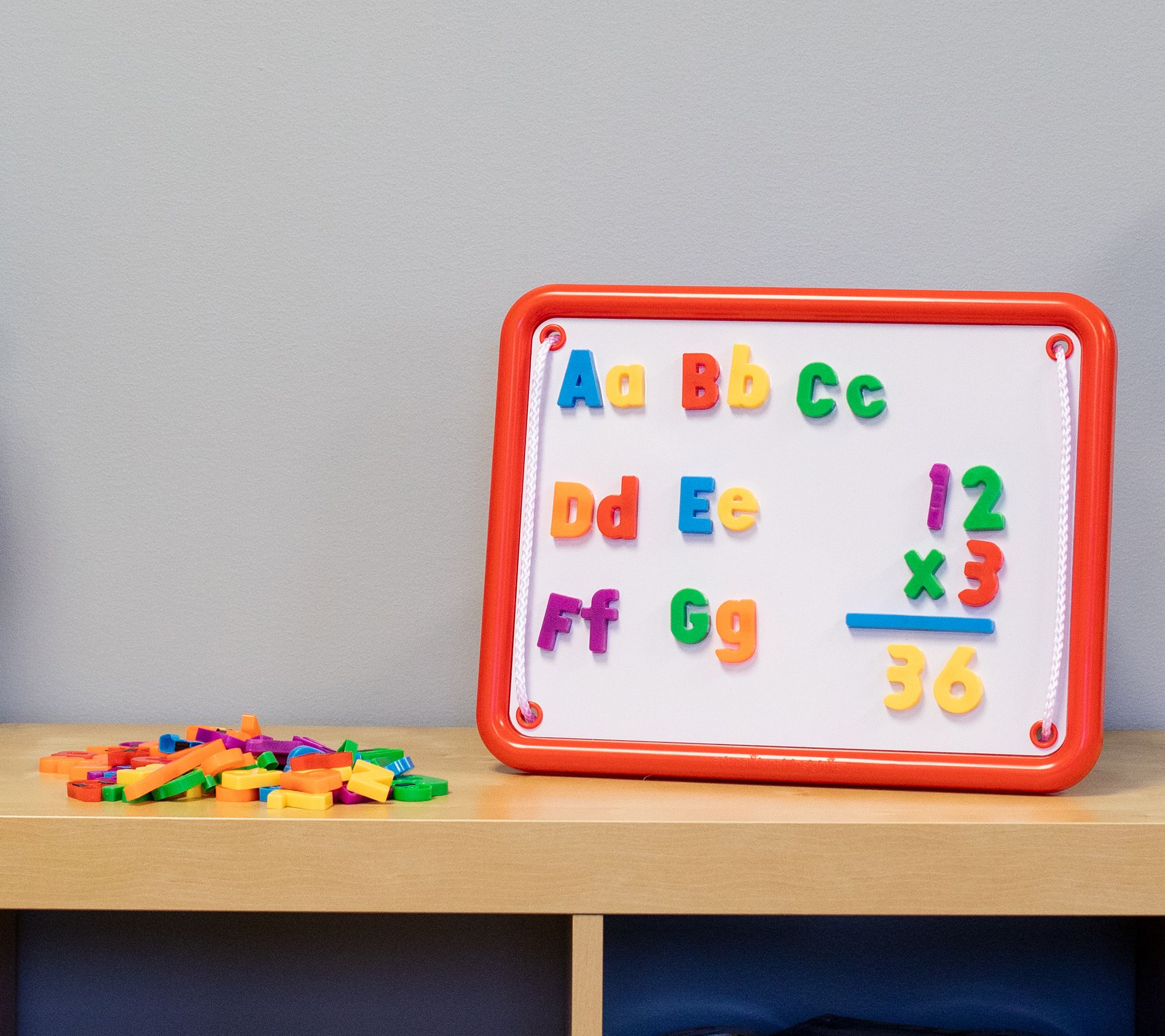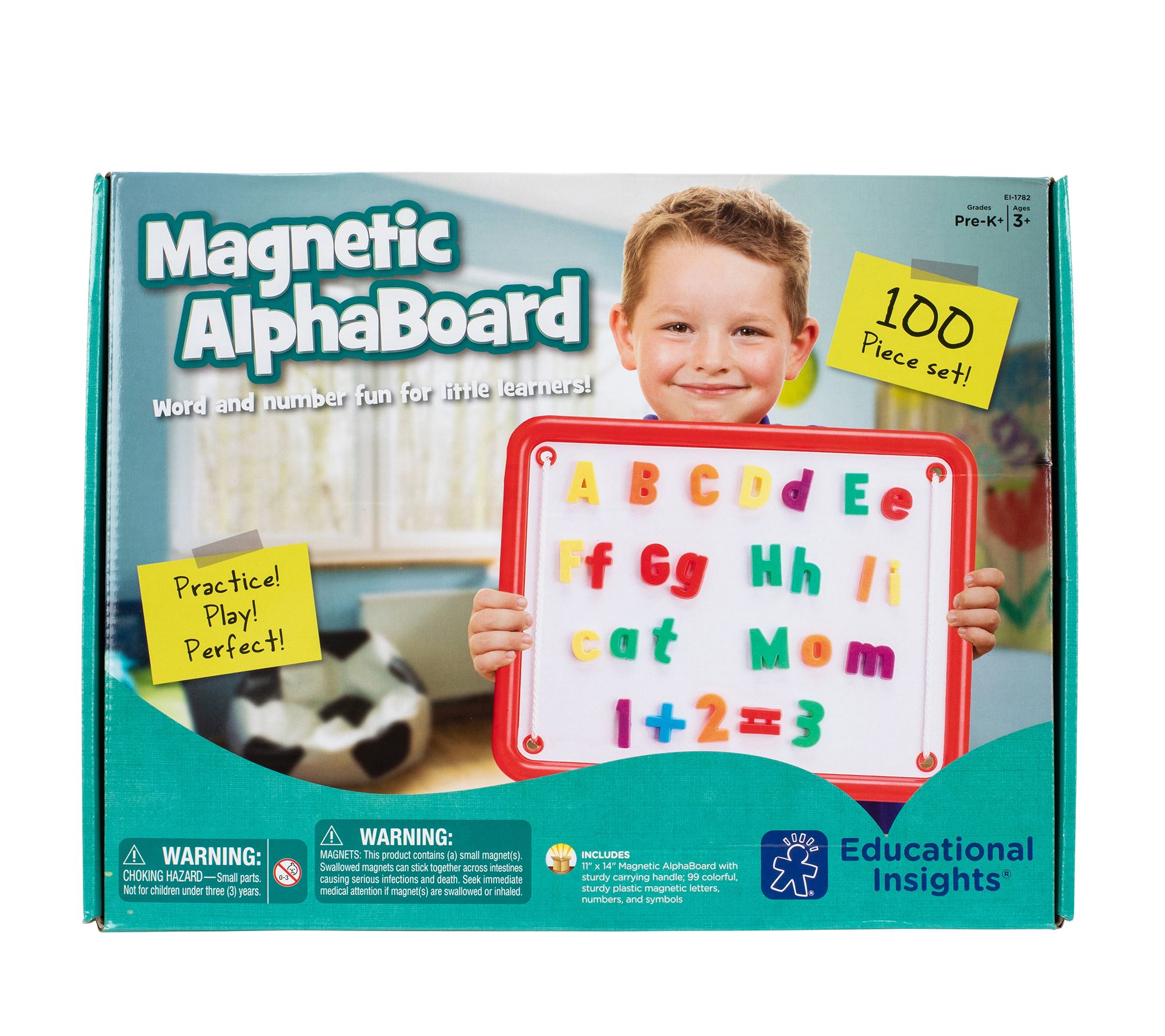 Use this desk-sized magnetic board to make designs, match upper- and lowercase letters, form words, build short sentences, and even create simple equations. From Educational Insights.