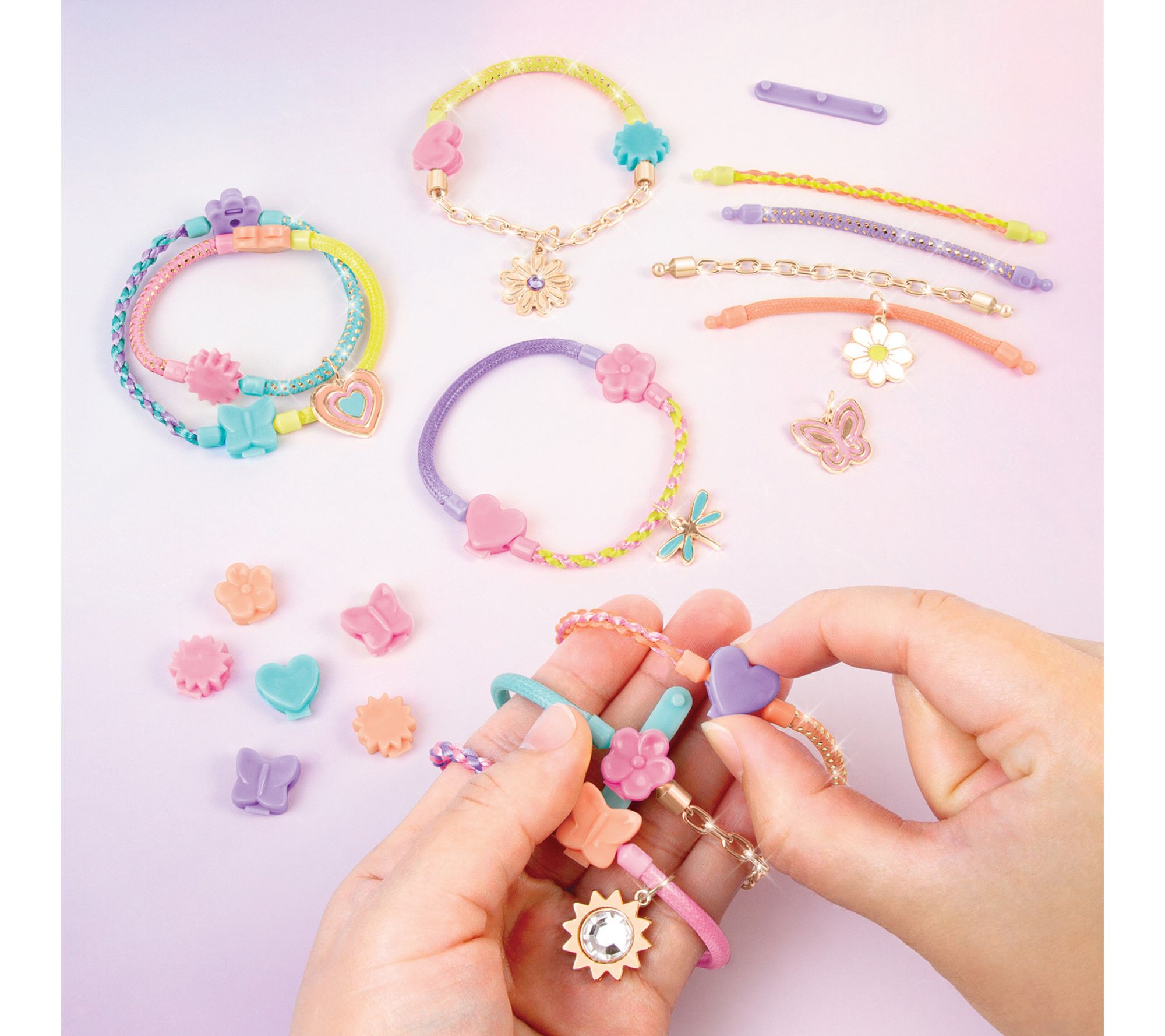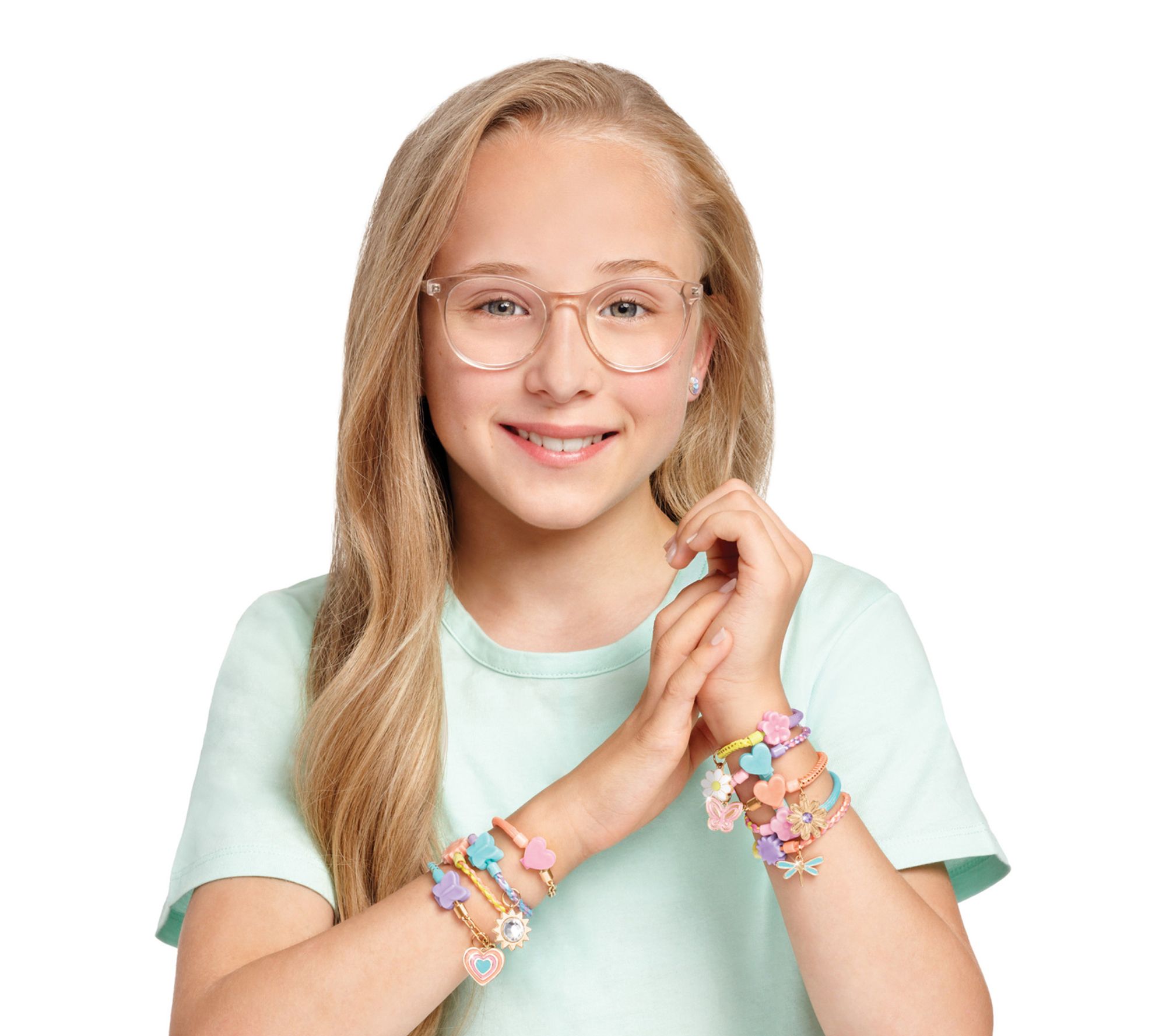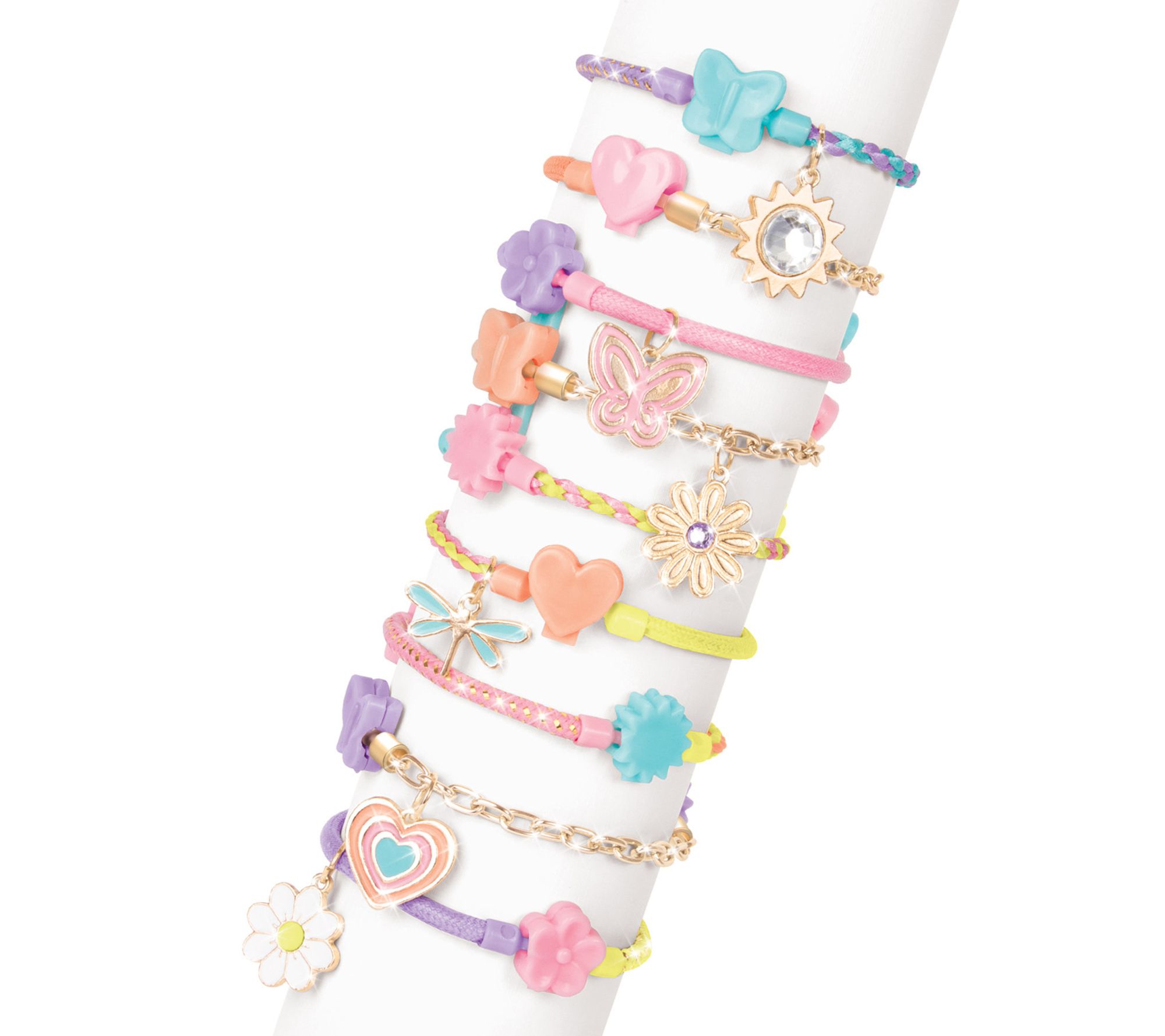 Crafting stylish jewelry at home becomes a fun experience with this arts and crafts kit. Soft pastel cords, chains, and decorative links let you design single or layered bracelets, wrap styles, or even necklaces with a trendy twist. Six adorable charms add a personal touch, so you can swap and style your creations for any occasion. From Make It Real.