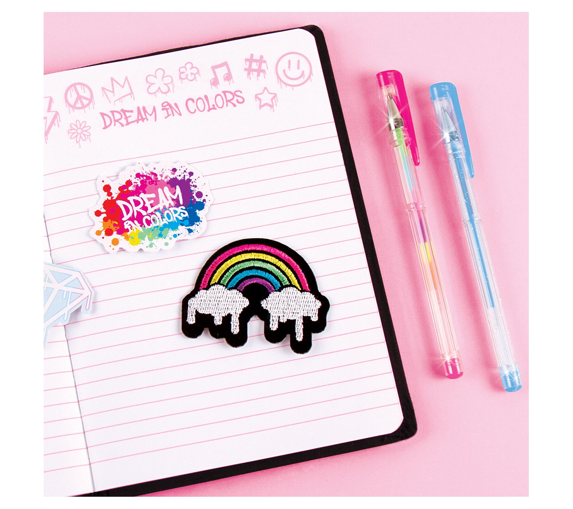• Includes journal, two embroidery adhesive patches, two vinyl stickers, and two gel pens