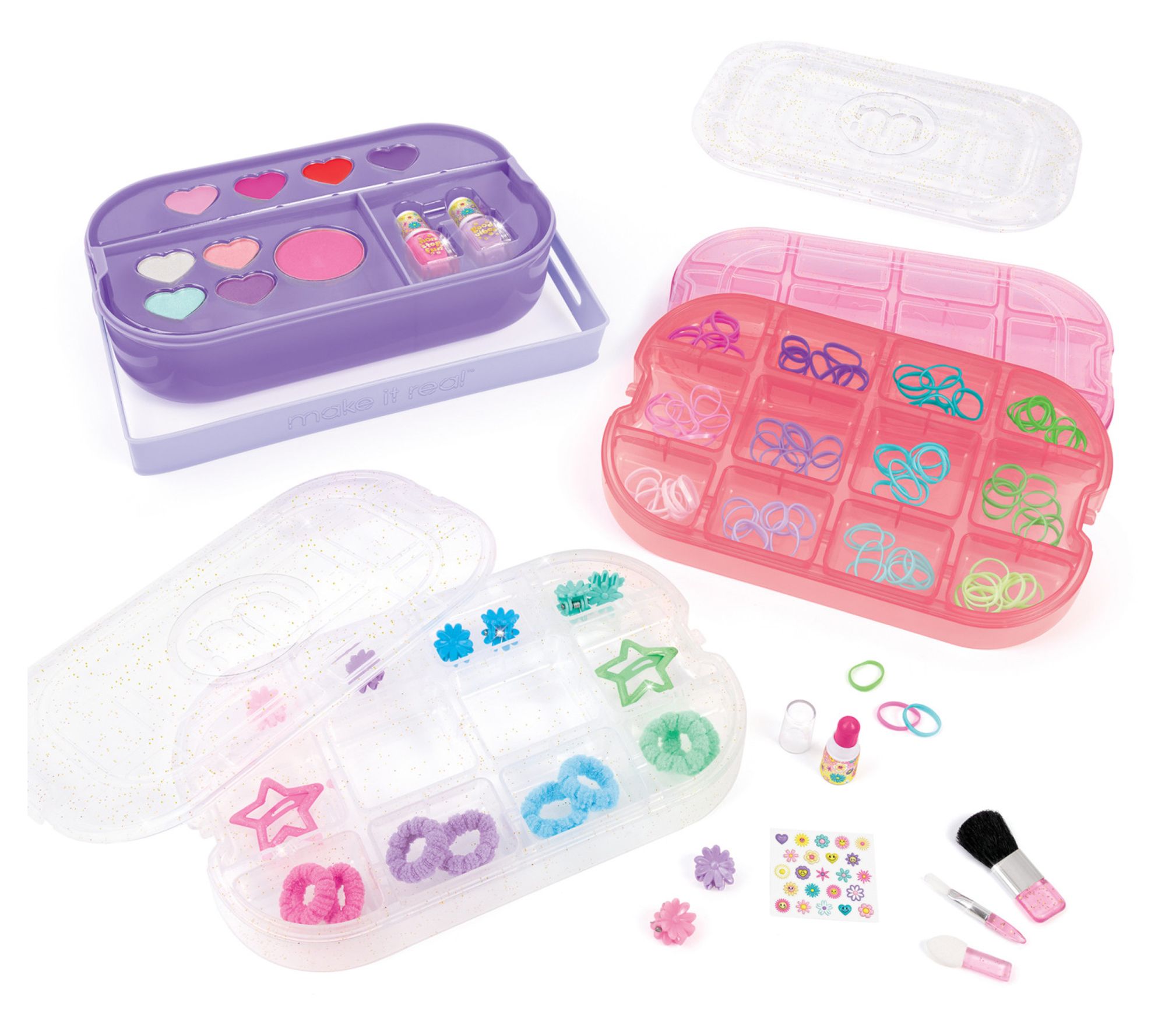 Create, Dream, Share... Repeat! The Make It Real Beauty 2-Go set is the perfect starter kit for young, creative fashionistas wanting to explore their beauty and styling skills. The kit provides glam makeup and accessories for eyes, hair, and nails. With four levels of beauty and styling fun, it's packed with all the essentials for creating stunning looks. There's even extra room for young designers to store their own favorite pieces, making it suited to on-the-go fashionistas. Whether they're getting ready at home or taking it with them for sleepovers or playdates, this set is ideal for exploring creativity and personal style. A great gift for tweens who love fashion and beauty, whether it's for a holiday, a birthday, or just because. From Make It Real.