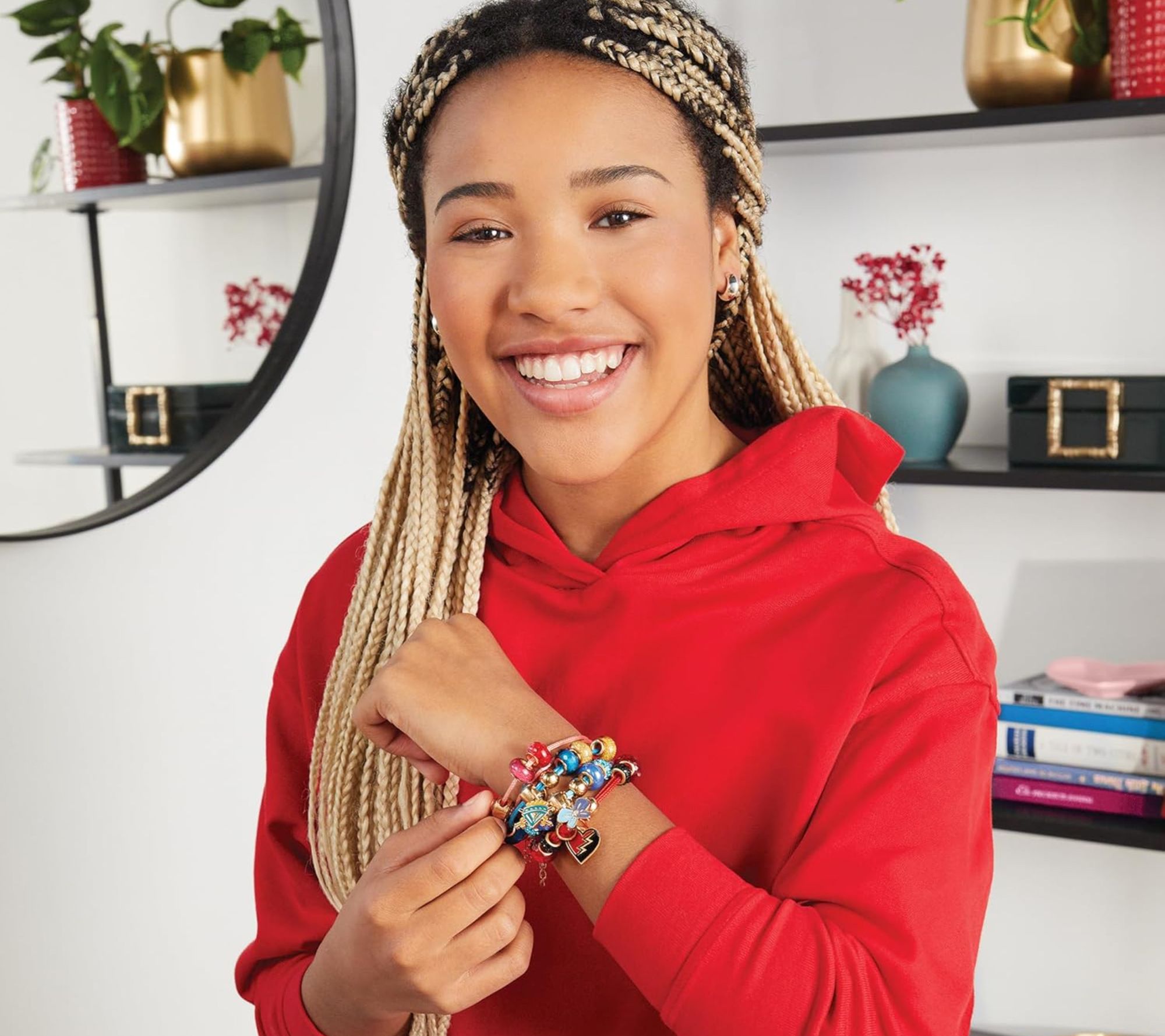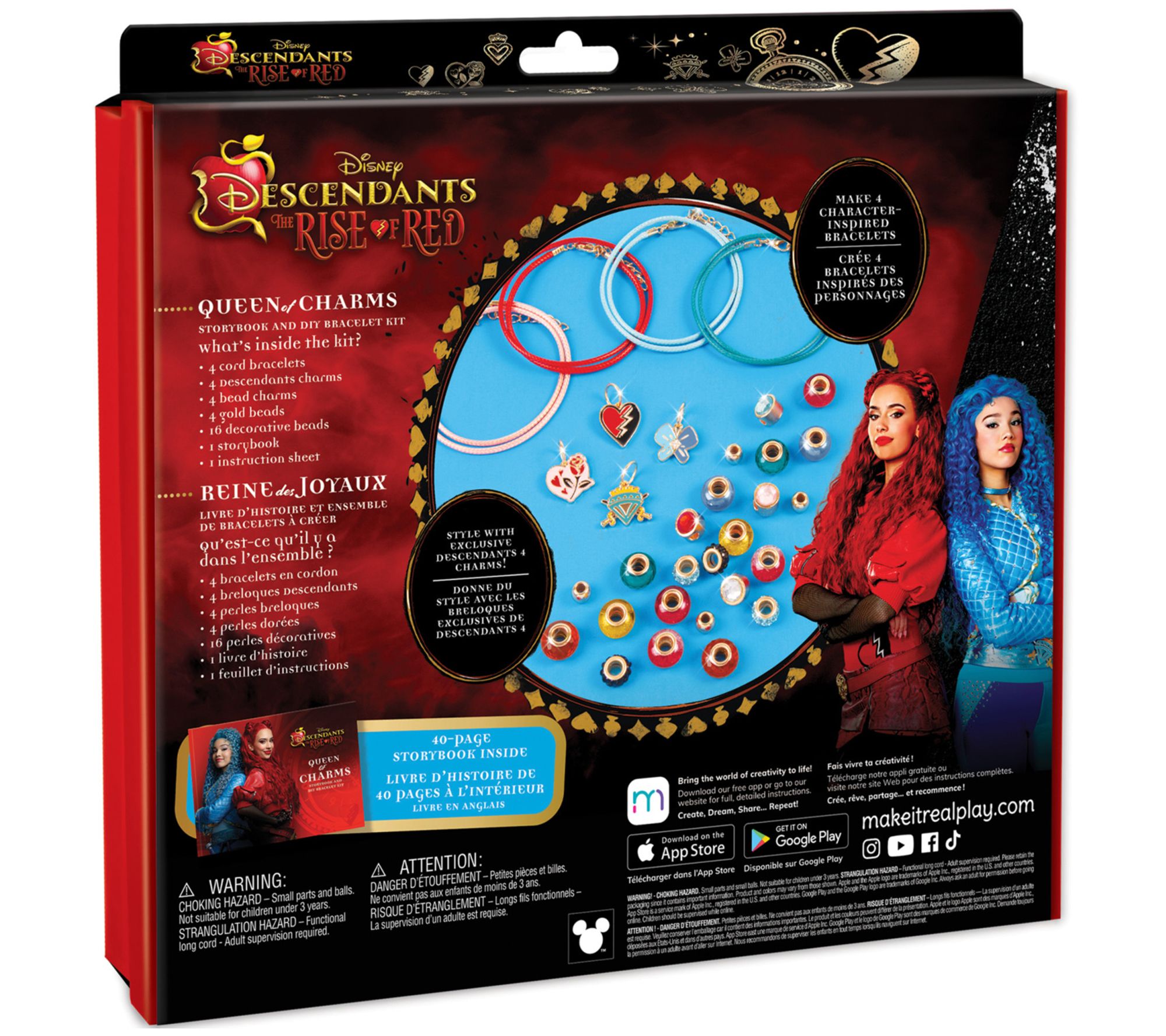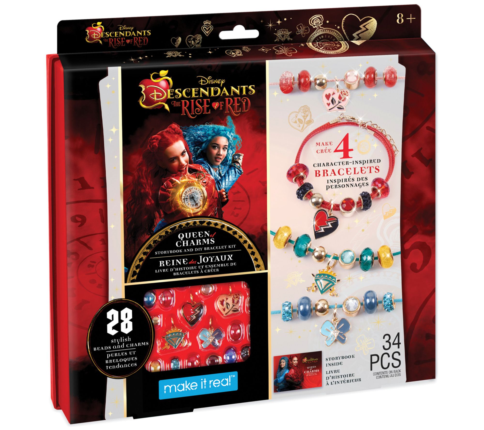Tweens can create four stylish bracelets inspired by Disney's Descendants 4: The Rise of Red with the Make It Real Queen of Charms set. This kit includes everything they need to craft unique accessories that reflect each character's personality. A 40-page storybook adds an extra layer of fun, making this a perfect gift for any occasion. From Make It Real.