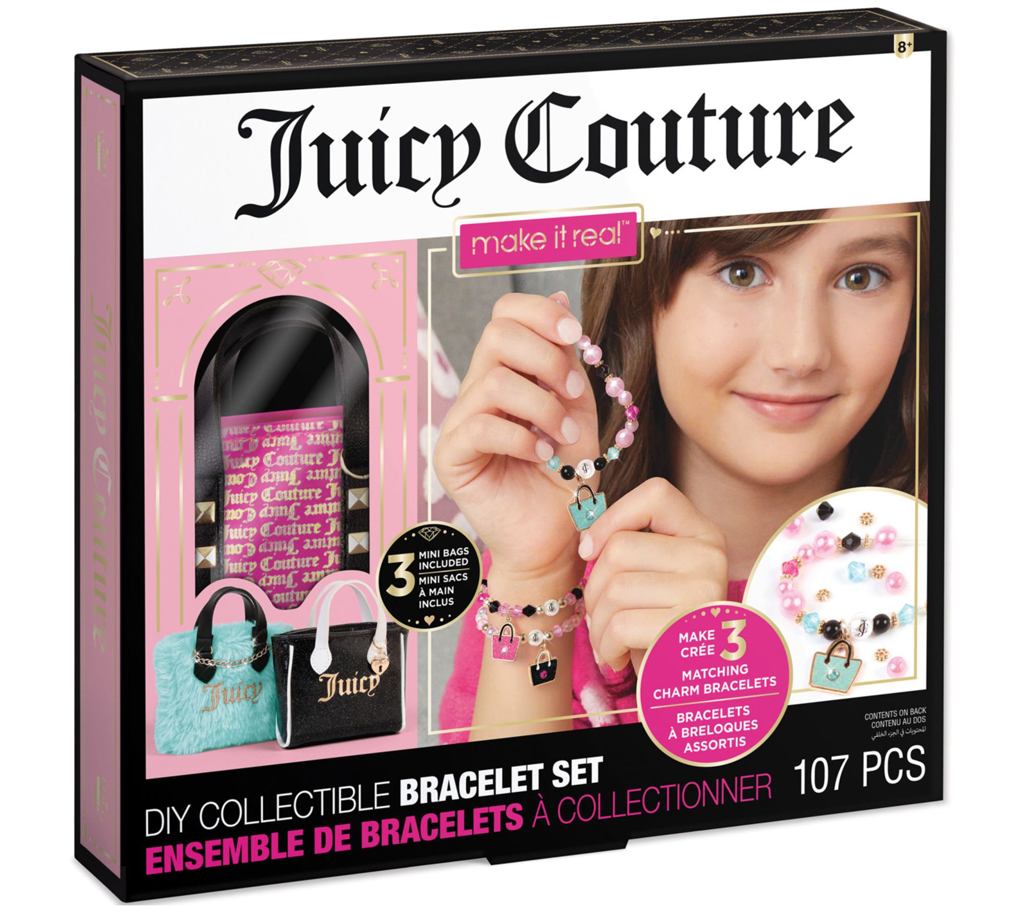 Young fashionistas and their friends can create stylish charm bracelets and accessorize with matching mini bags using the Make It Real Juicy Couture mini handbag bracelet wardrobe. This set includes everything needed for tweens to design and flaunt their unique Juicy Couture style. From Make It Real.