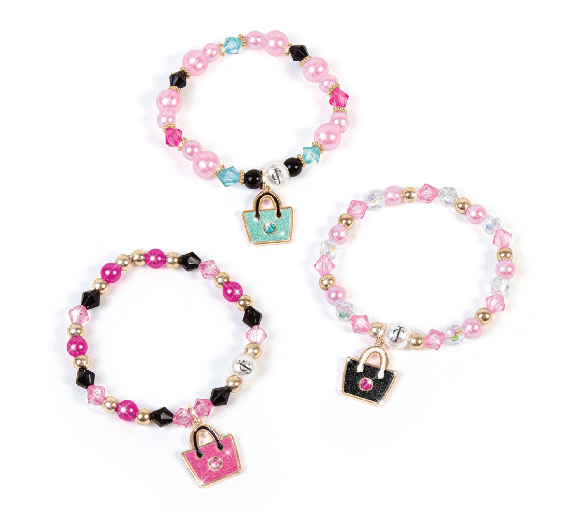• Includes three mini tote bags, 97 beads, three matching bag charms, three elastic 11"L cords, and instruction sheet