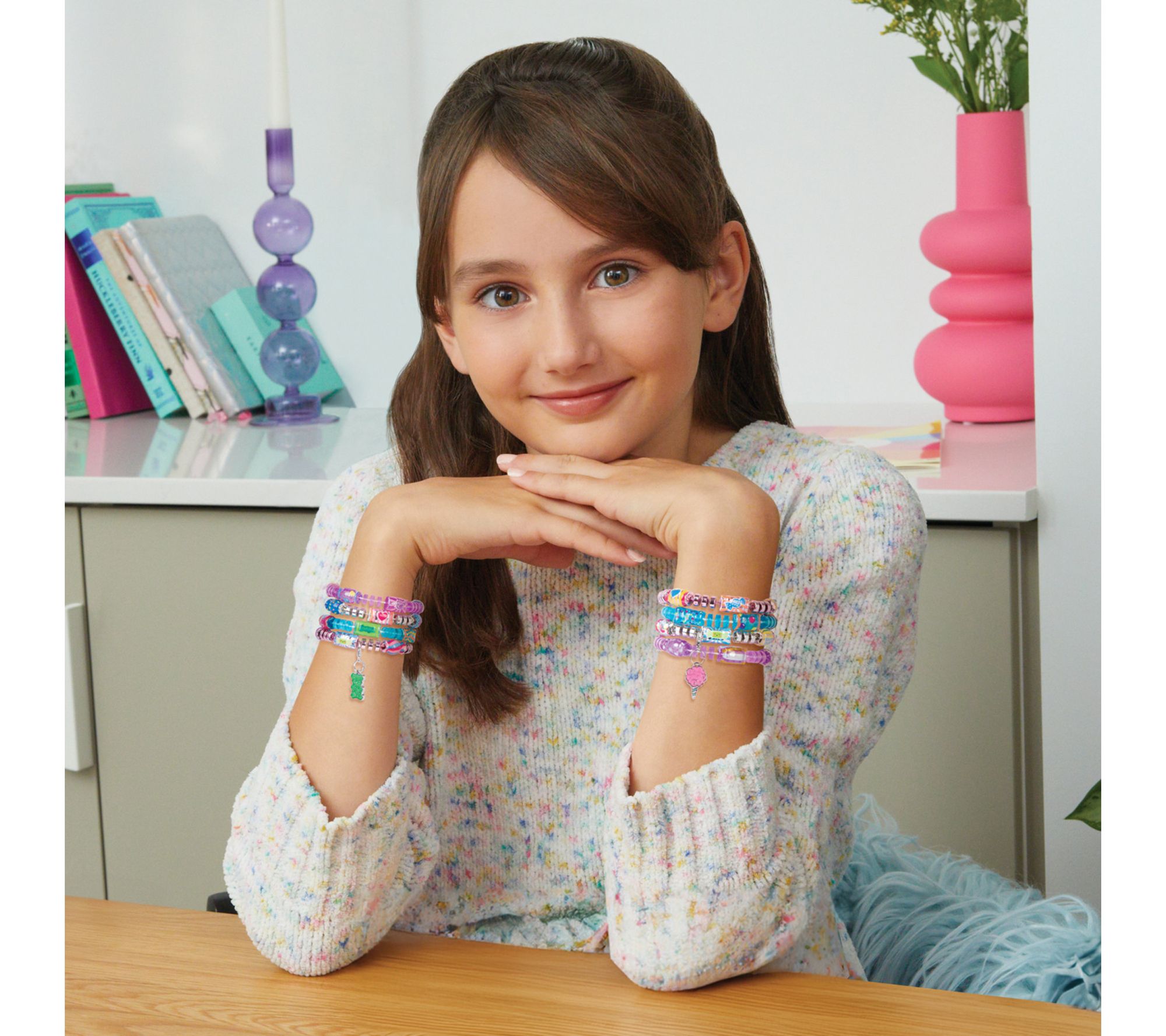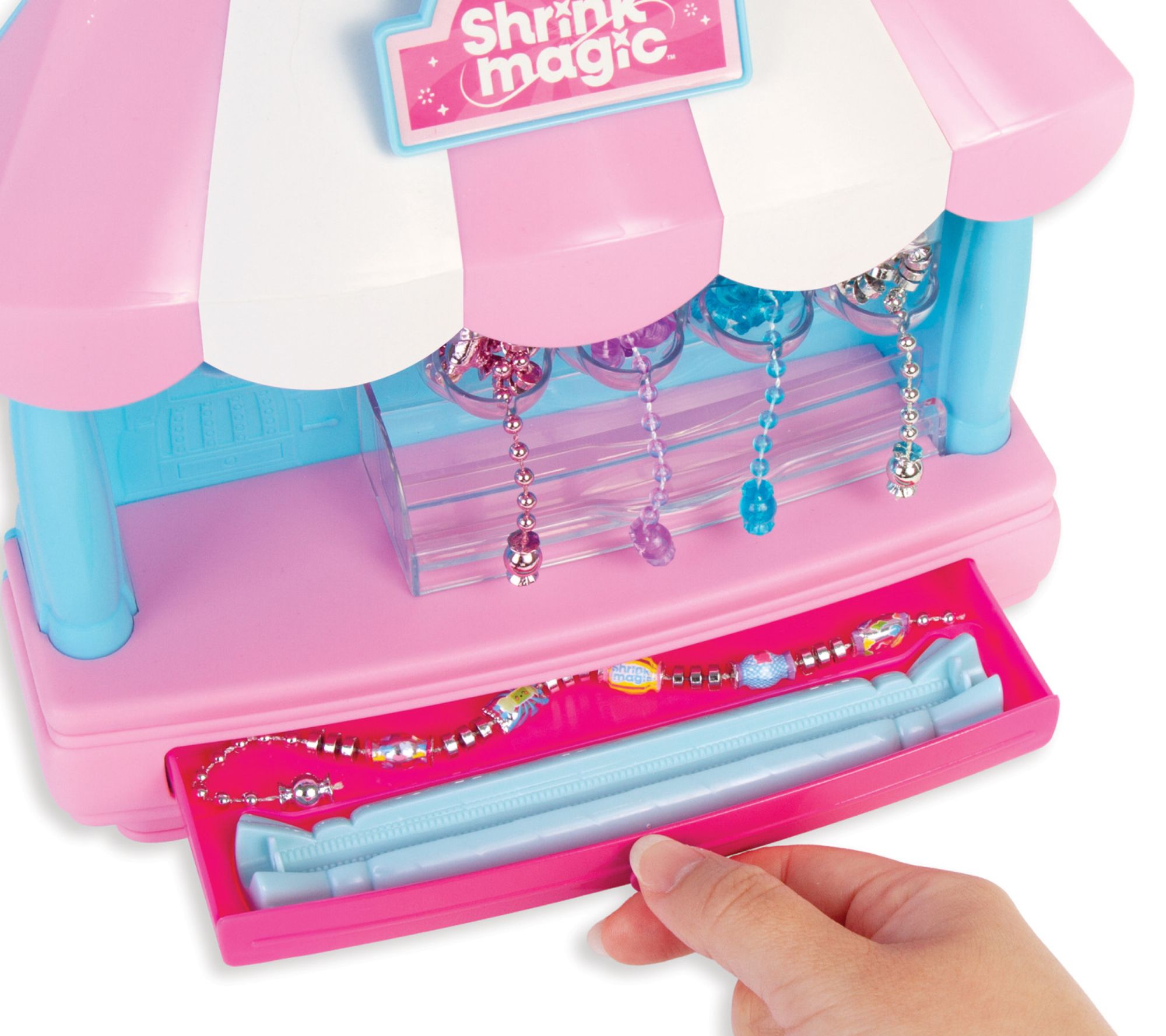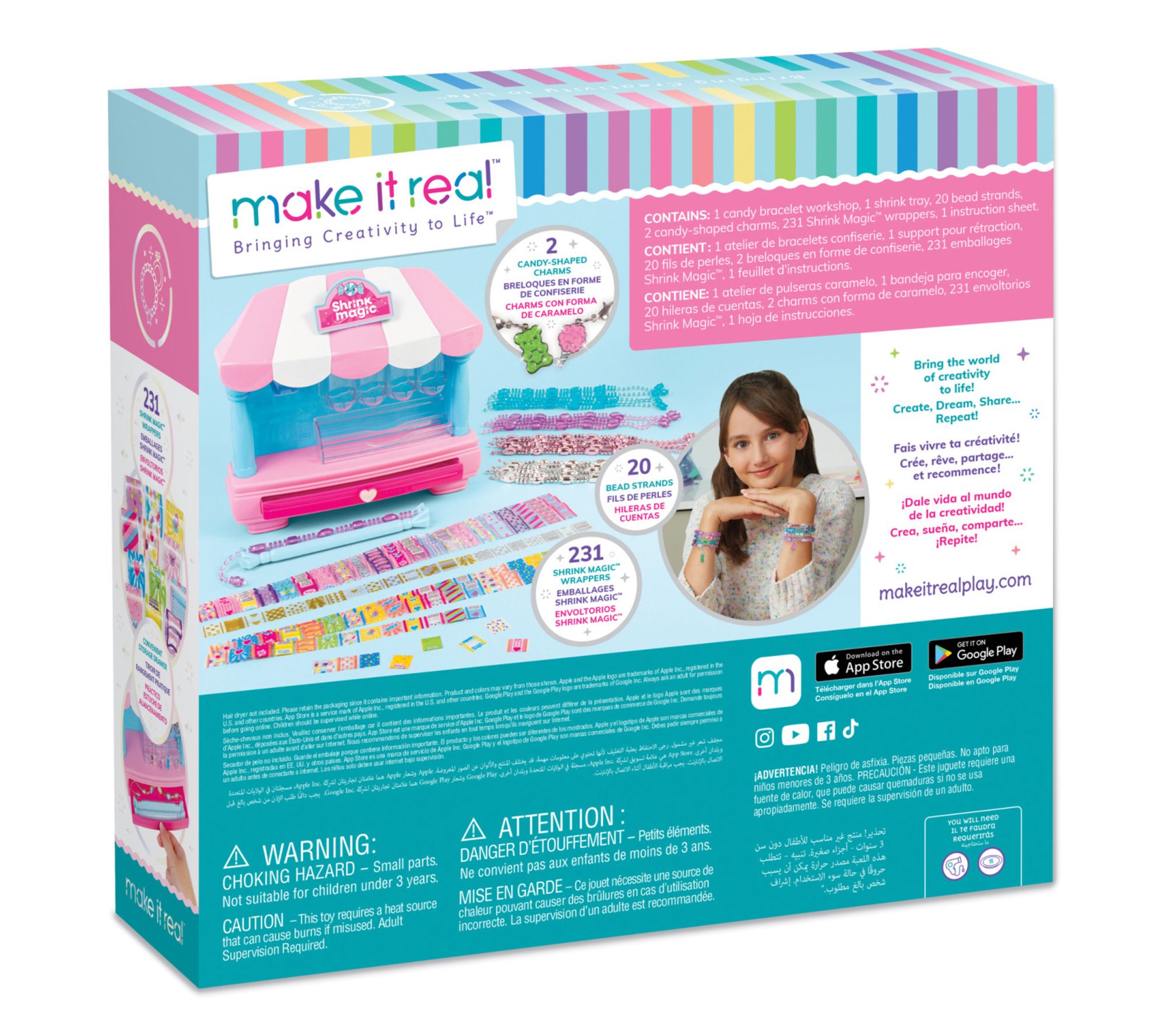 • Includes candy bracelet workshop, shrink tool, 20 bead strands, two candy-shaped charms, 231 shrink magic wrappers, and instruction sheet