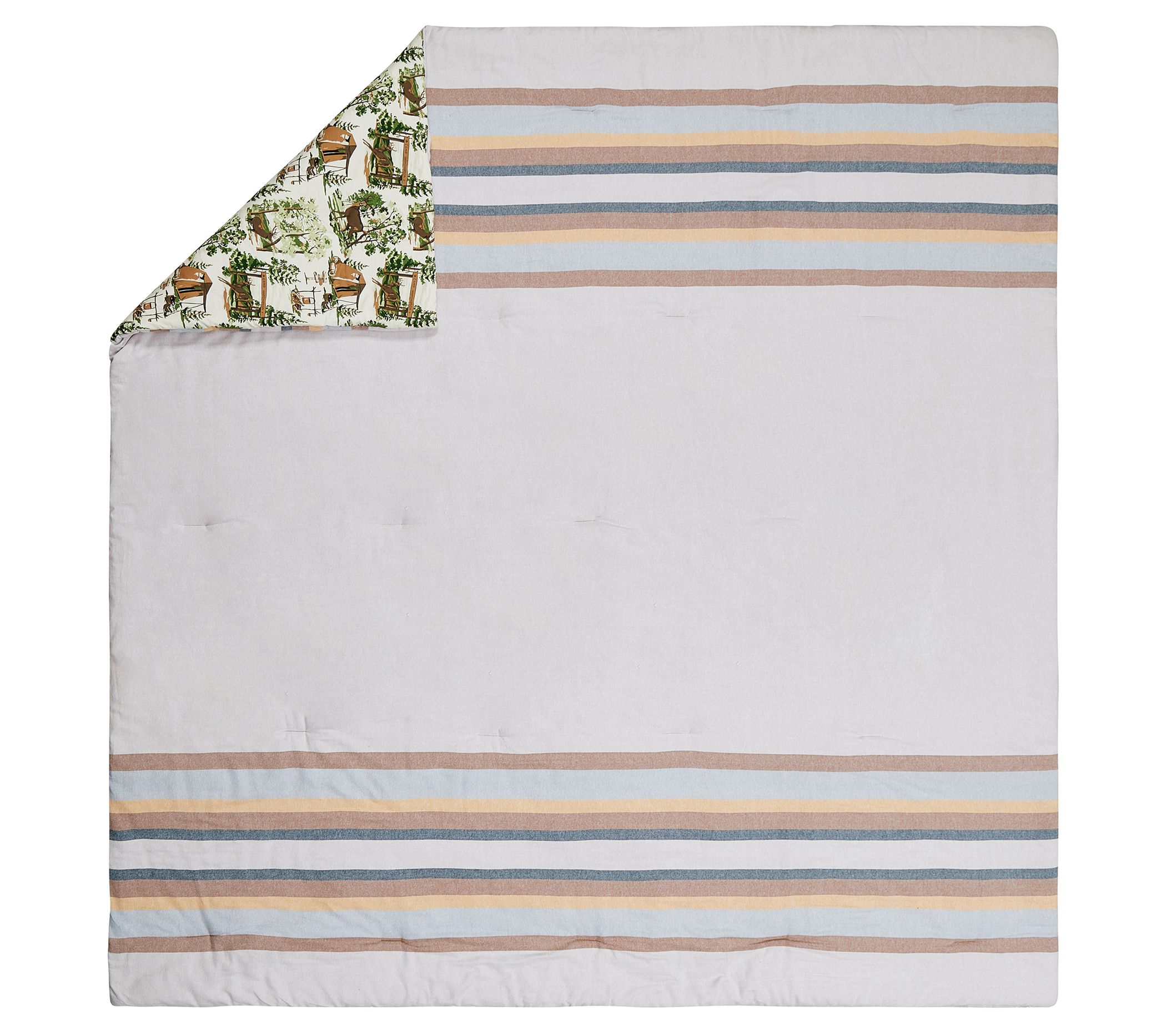 Bring the nostalgic charm of the '60s and '70s into your bedroom decor with the Makers Collective Camp Wandawega stripe twin comforter set. This cozy set features a soft cotton flannel face with multi-colored stripes and a reverse side showcasing Camp Wandawega outdoor scenes. From Makers Collective.