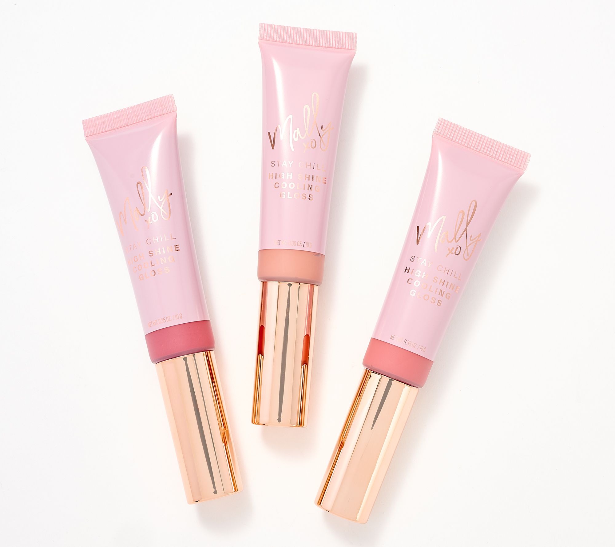 • Three 0.35-oz High Shine Cooling Lip Glosses in Brr! Blossom, Snowstorm Sugar, and Minty Mauve