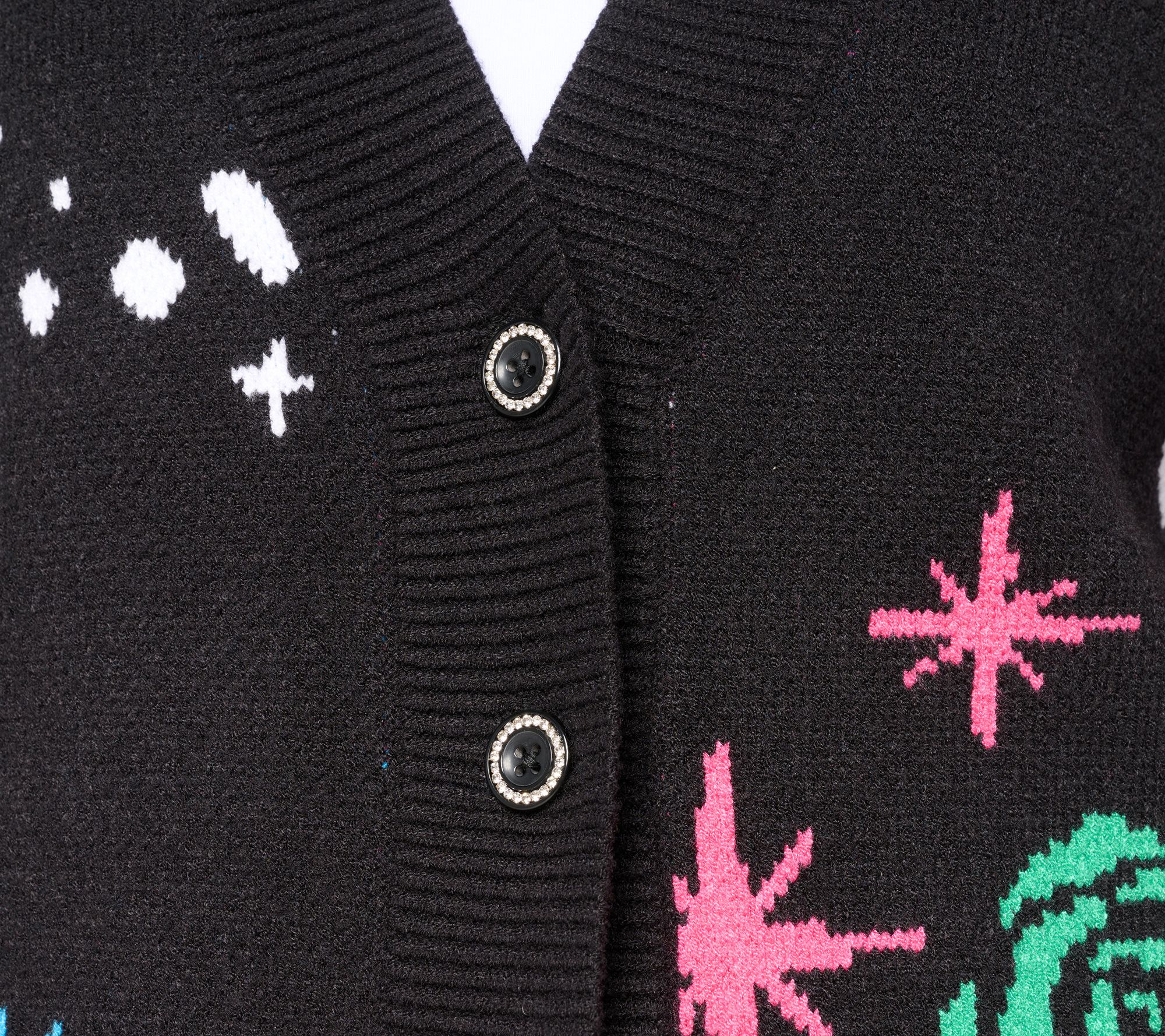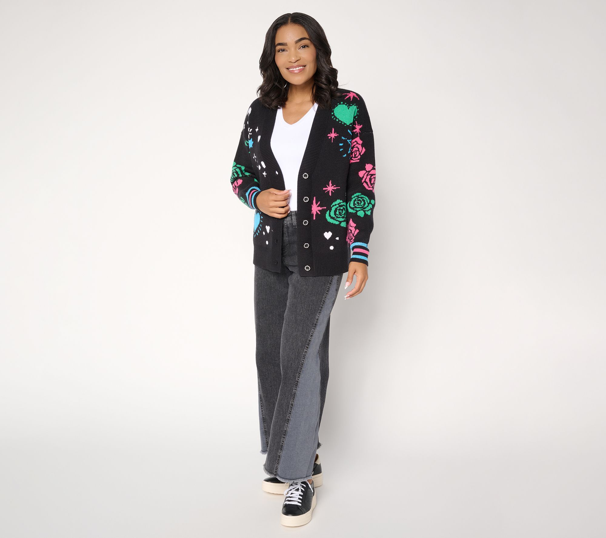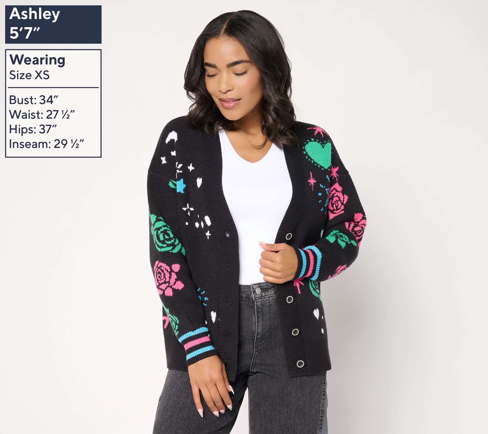 Slip into this jacquard cardigan sweater when you want a little extra coziness (and attention!). The soft jersey knit body, ribbed trim, and relaxed silhouette deliver unmatched comfort, while the jacquard print just makes you feel happy. From Mally Roncal.