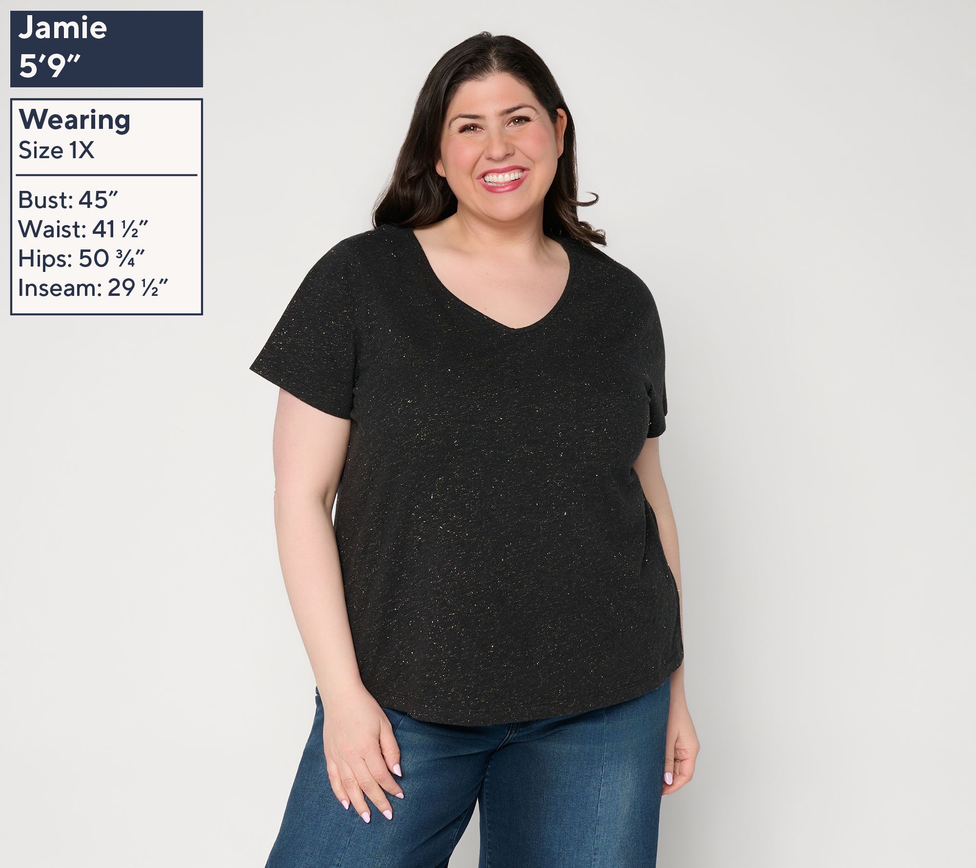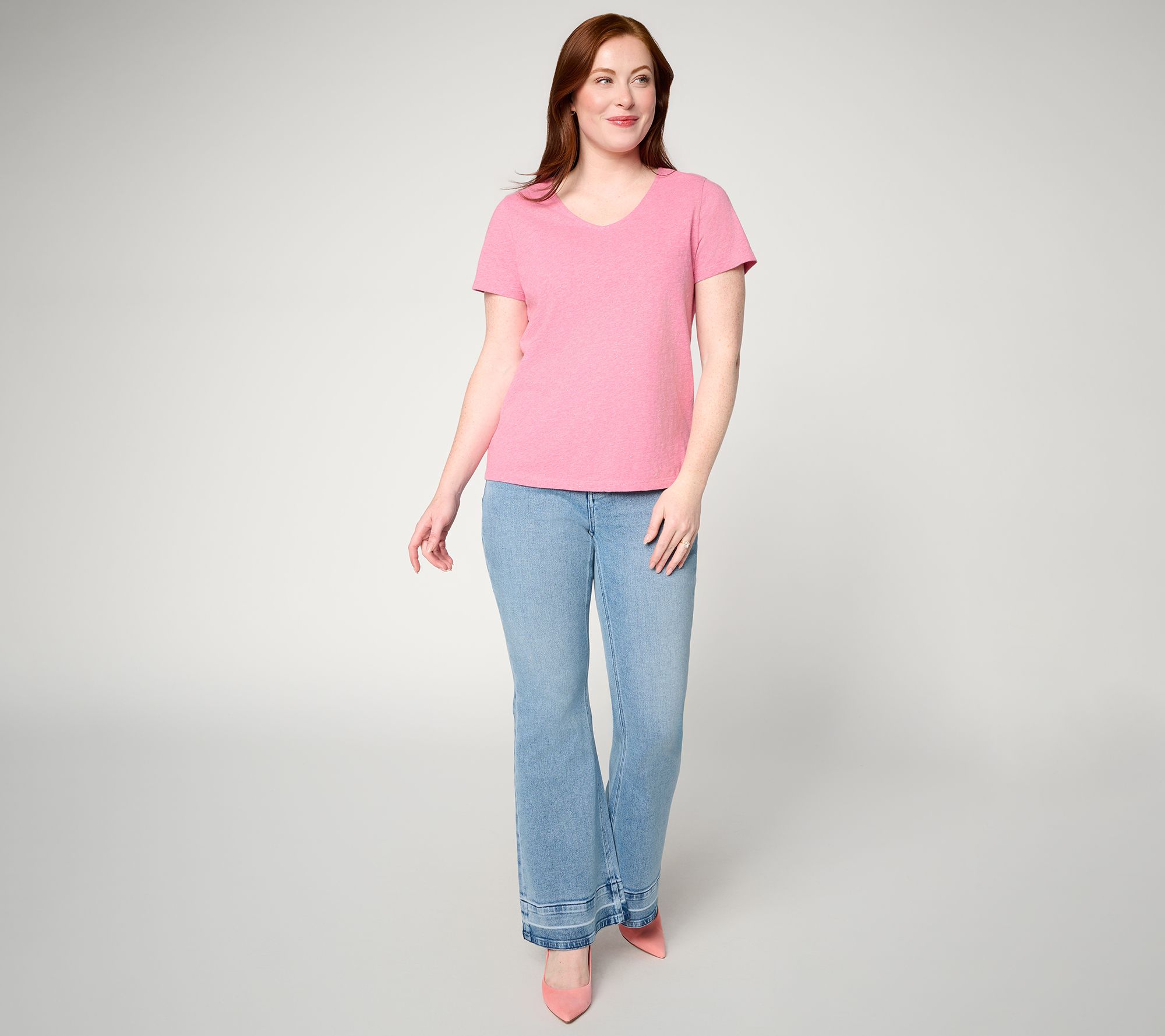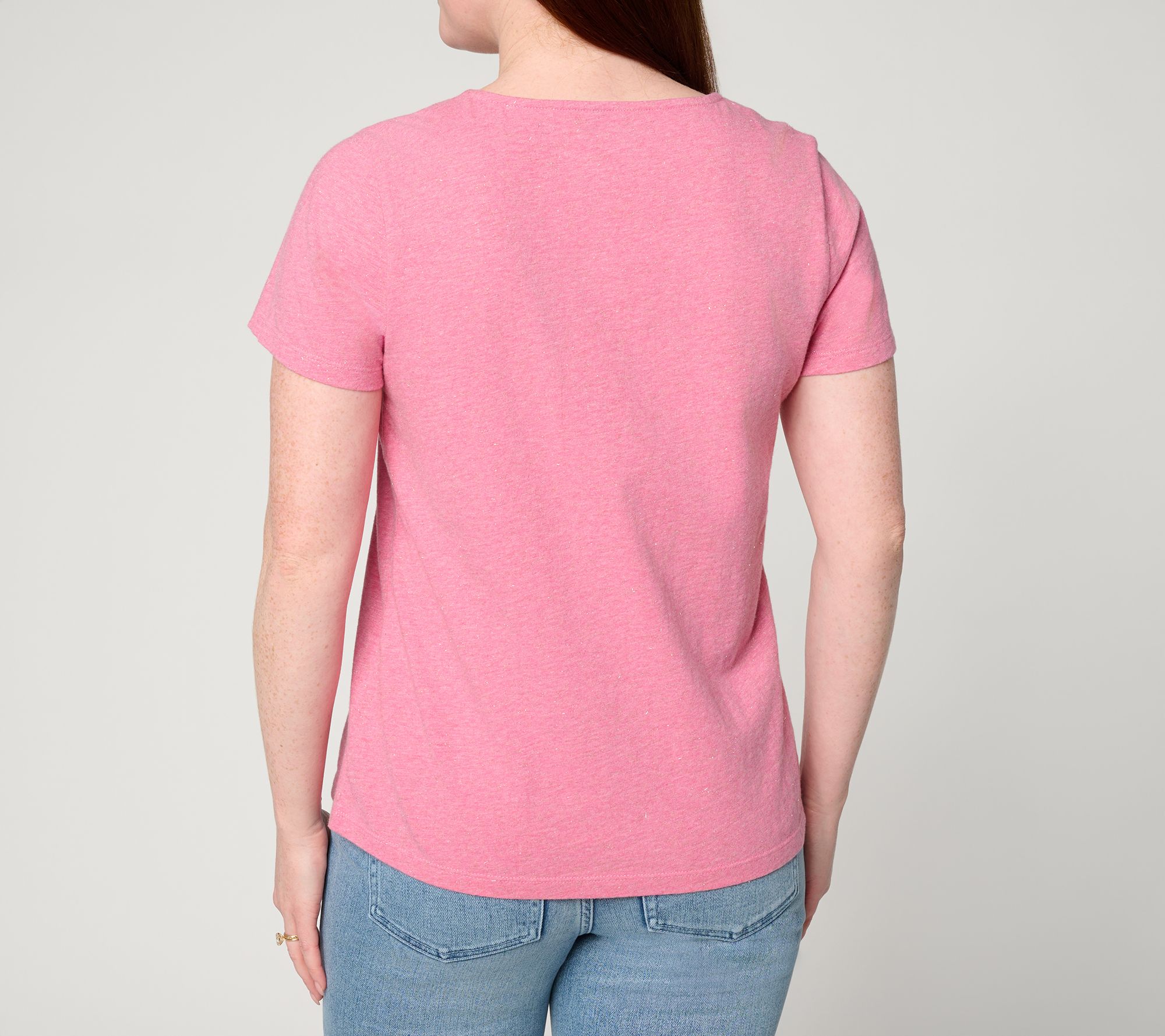 A simple tee can carry you from coffee runs to cozy evenings in, and this short-sleeve V-neckline top rises to any occasion. The airy cotton blend boasts a hint of glimmer making it the perfect piece for a night out with the addition a statement necklace. During the day, make it a layered look with your favorite cardigan or a tailored blazer. From Mally Roncal.