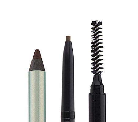 Next, take the Universal Precision Brow Wand and define your brows. Start by using the spoolie to brush your brows upward, and then start filling in your brows. For light hair use lighter pressure, and for darker hair use more pressure. After that, take your Evercolor Starlight Waterproof Eyeliner and line your eyes. Depending on how much definition you want, line you upper lashline, lower lashline, and/or inner rim.