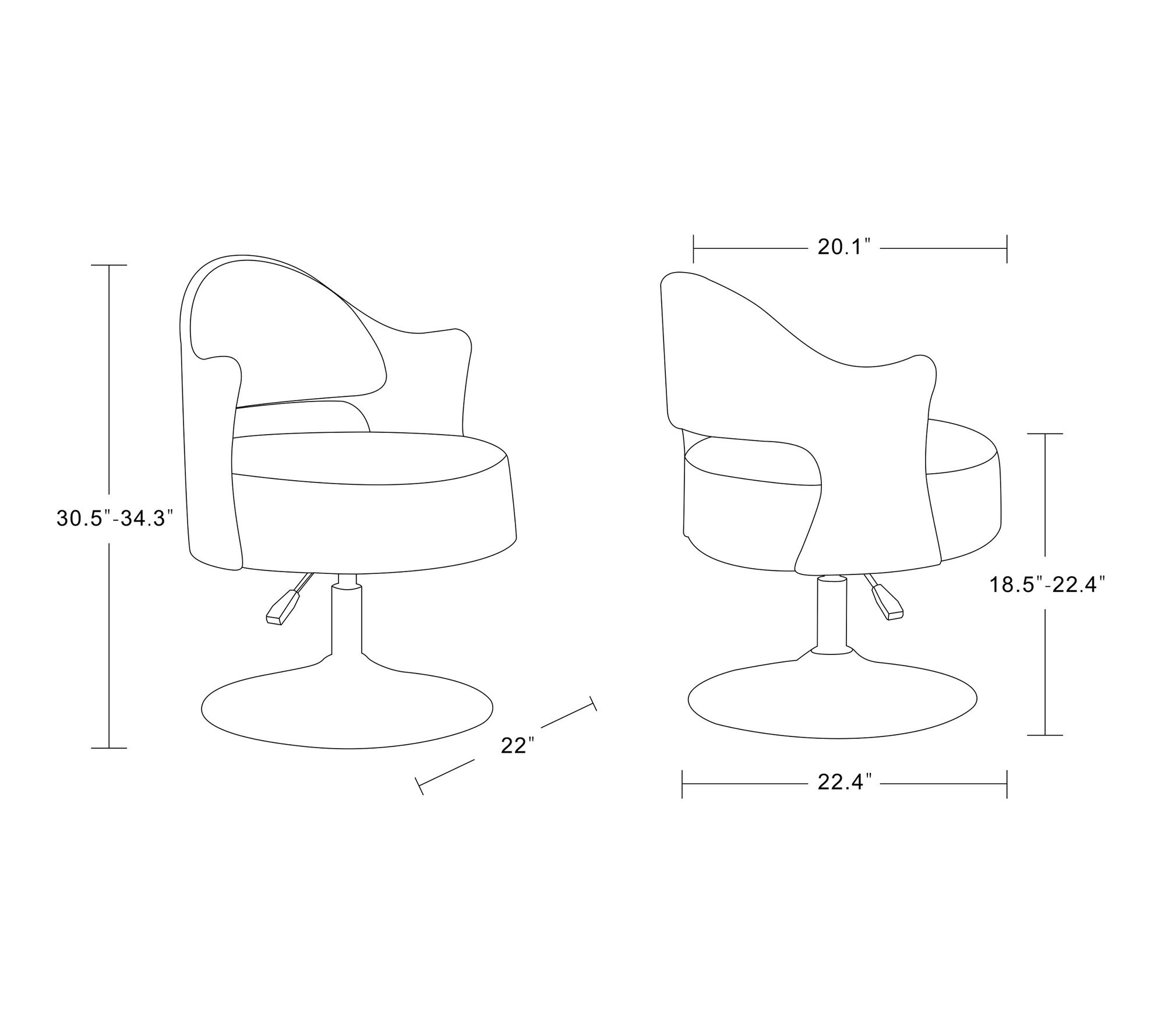 • Measures 22"L x 22.4"D x 30.5"H; adjustable seat height 18.5"–22.4"; supports up to 300 lbs