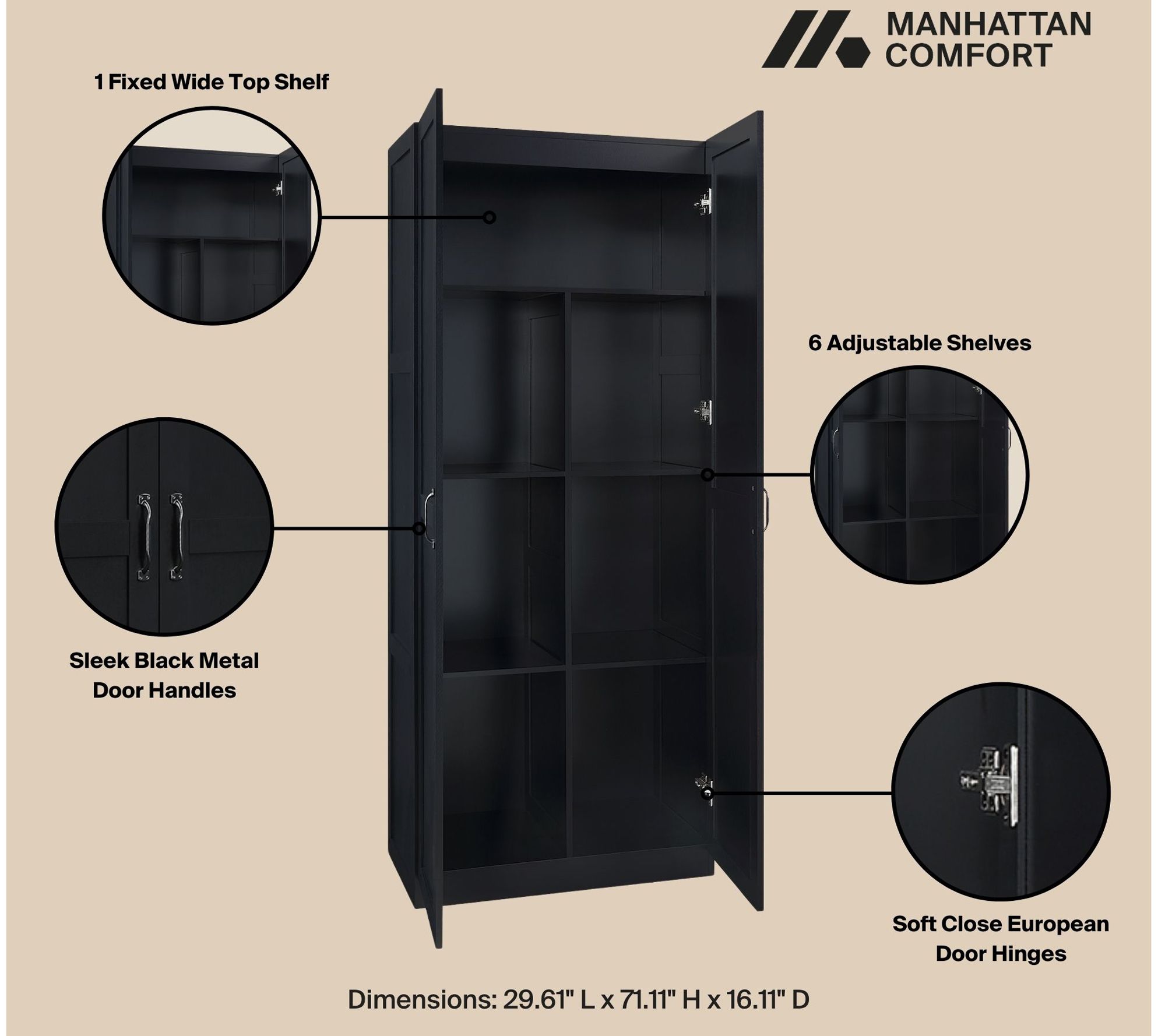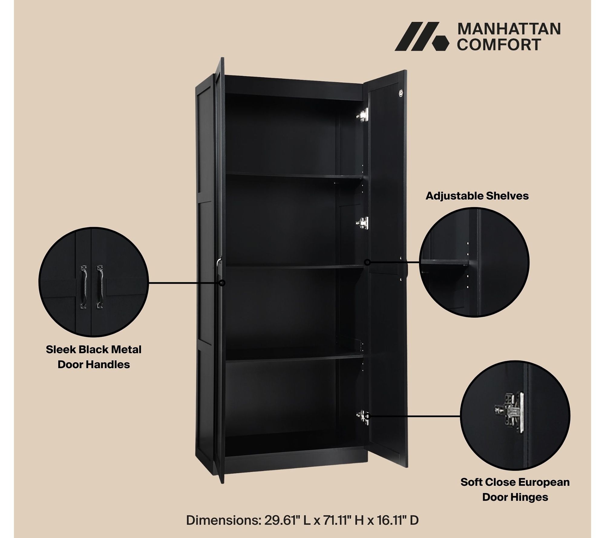 Tucking laundry essentials or seasonal decor neatly out of sight is effortless with the Cornelia Storage Closet, designed to help organize any corner of your home. Sleek lines and ample shelving keep everything tidy, whether you're streamlining your bedroom or sprucing up an entryway. From Manhattan Comfort.