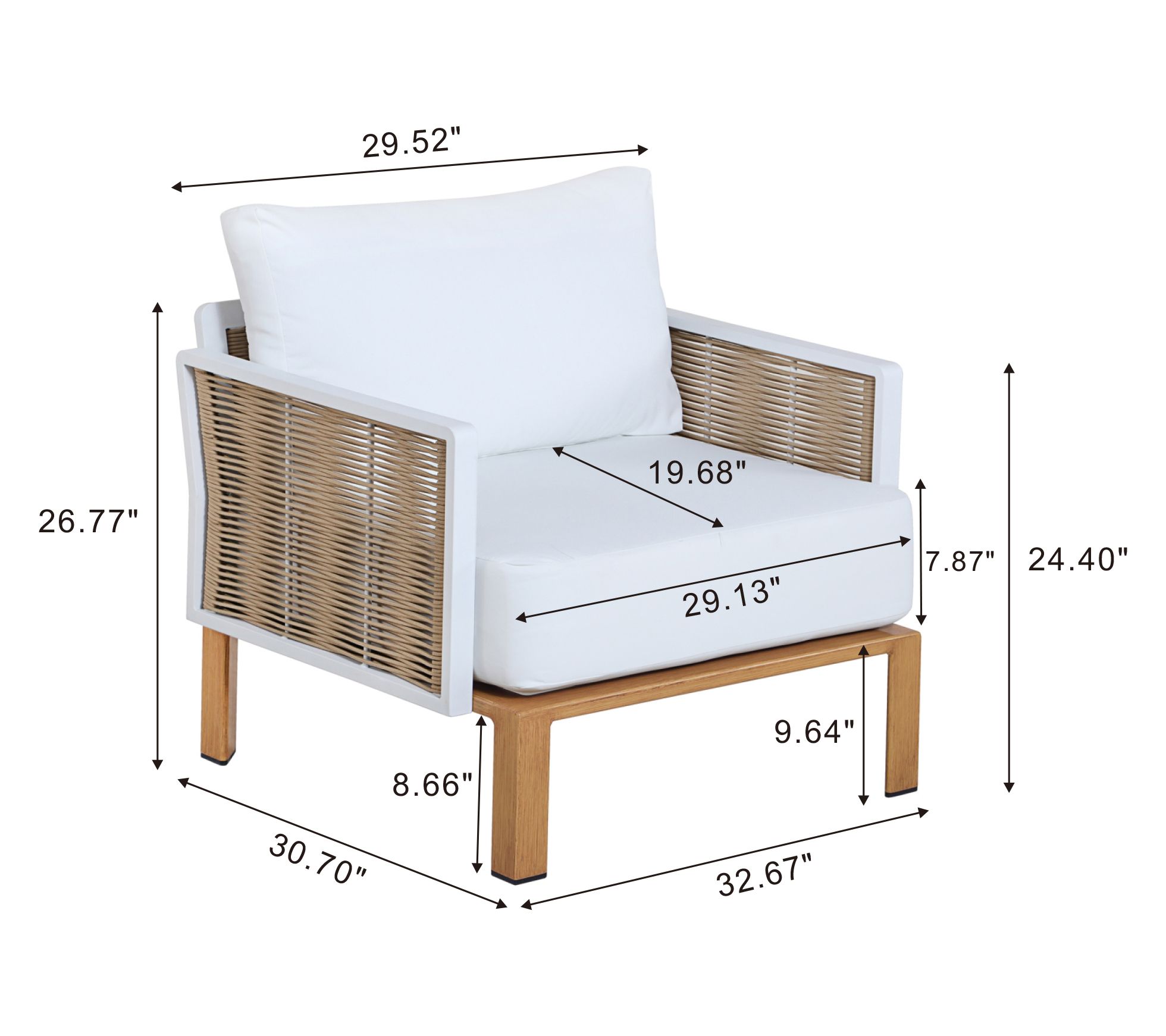 • Approximate measurements: Chair 30.7" x 26.77" x 30.7"; Love seat 32.67" x 26.77" x 30.7"; Table 47.24" x 15.74" x 23.62"
