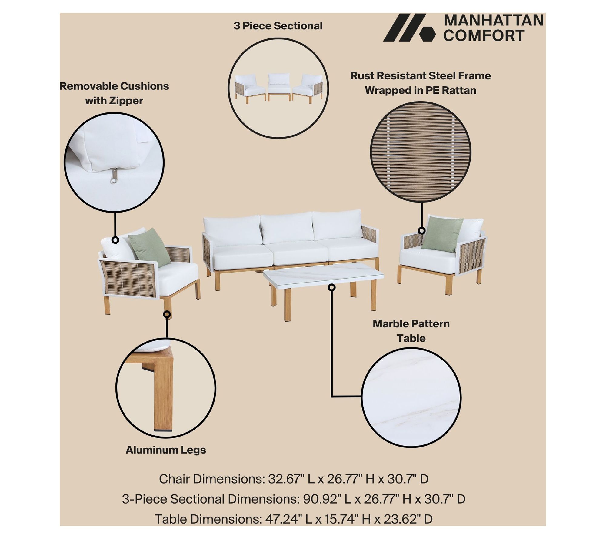 Manhattan Comfort 4-Piece Vine Patio Conversation Set