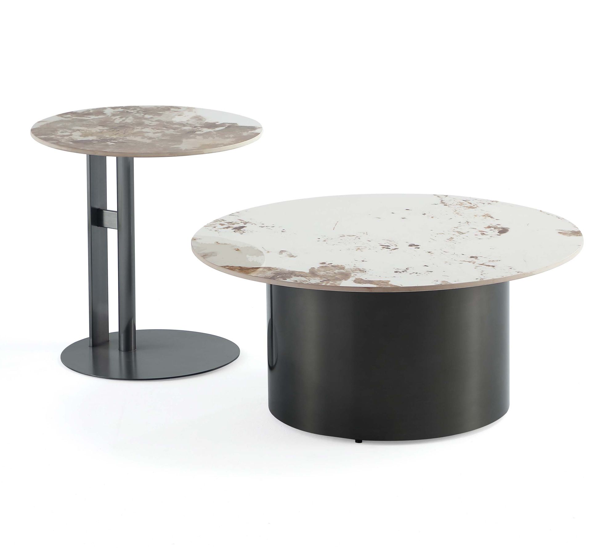 • Sintered stone table tops with modern black stainless steel bases