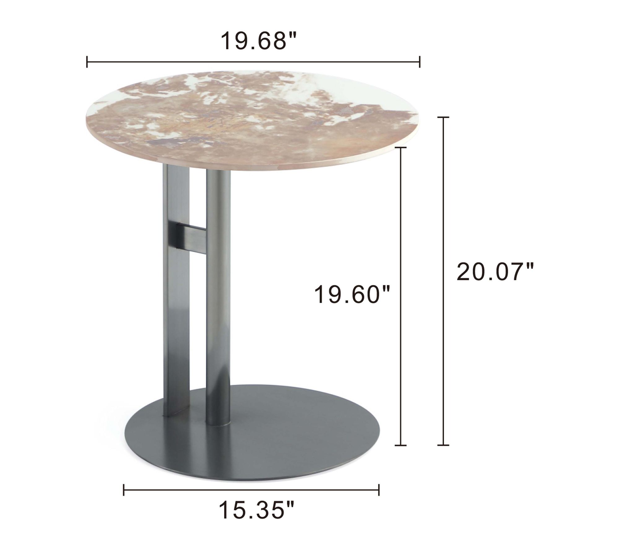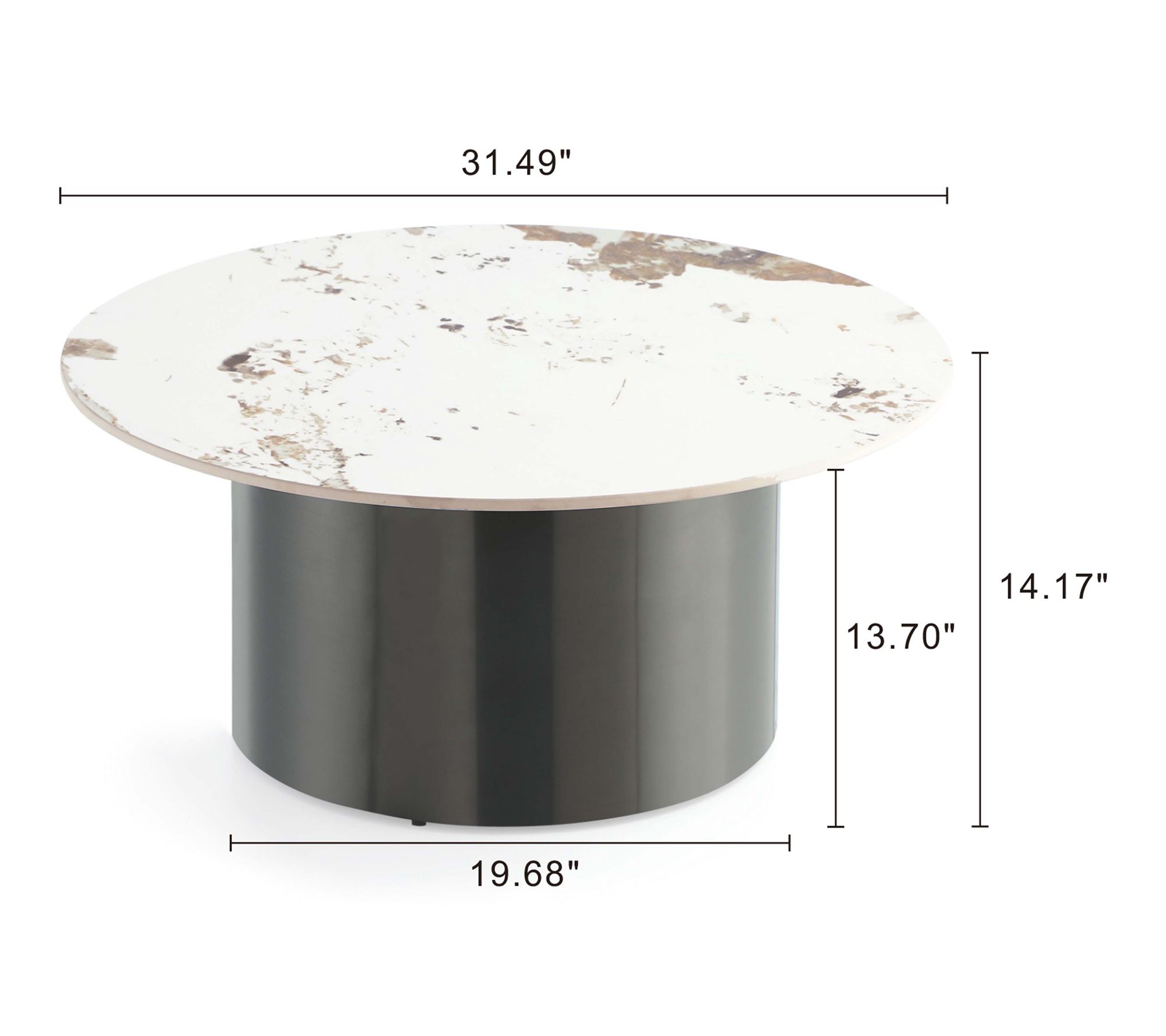 • Coffee table measures 31.49"L x 14.17"H x 31.49"D; End table measures 19.68"L x 20.07"H x 19.68"D