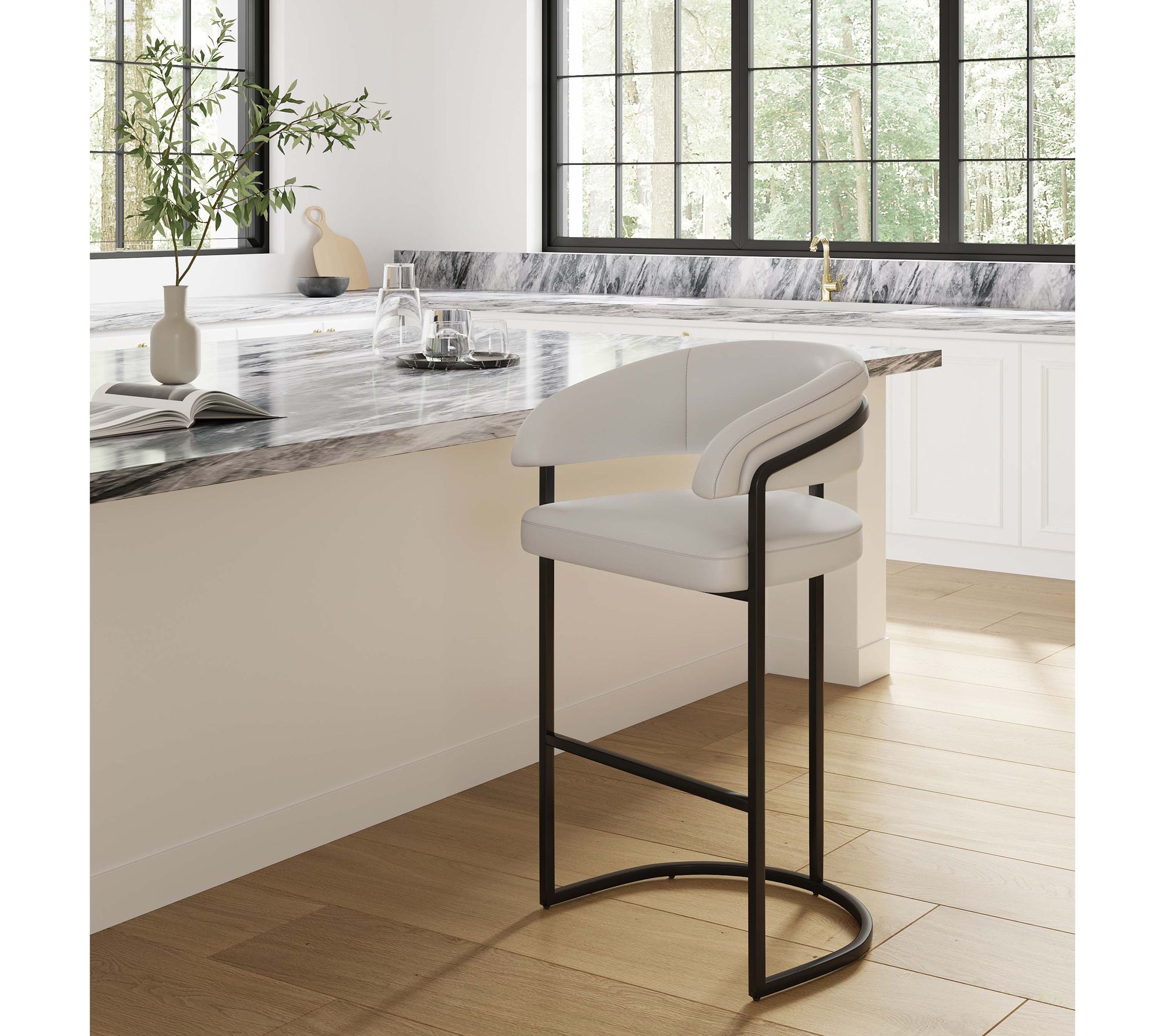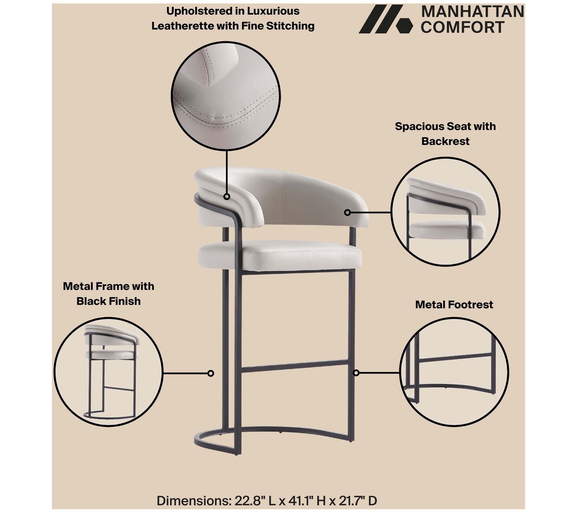 Transform your kitchen or bar space with the sophisticated style and comfort of this barstool. Perfect for both casual breakfasts and evening cocktails, this stool features a chic leatherette upholstery with high-density foam padding, ensuring you'll always have a plush seat. The geometric modern base and sturdy metal frame, with a sleek matte black finish, offer a contemporary touch. From Manhattan Comfort.