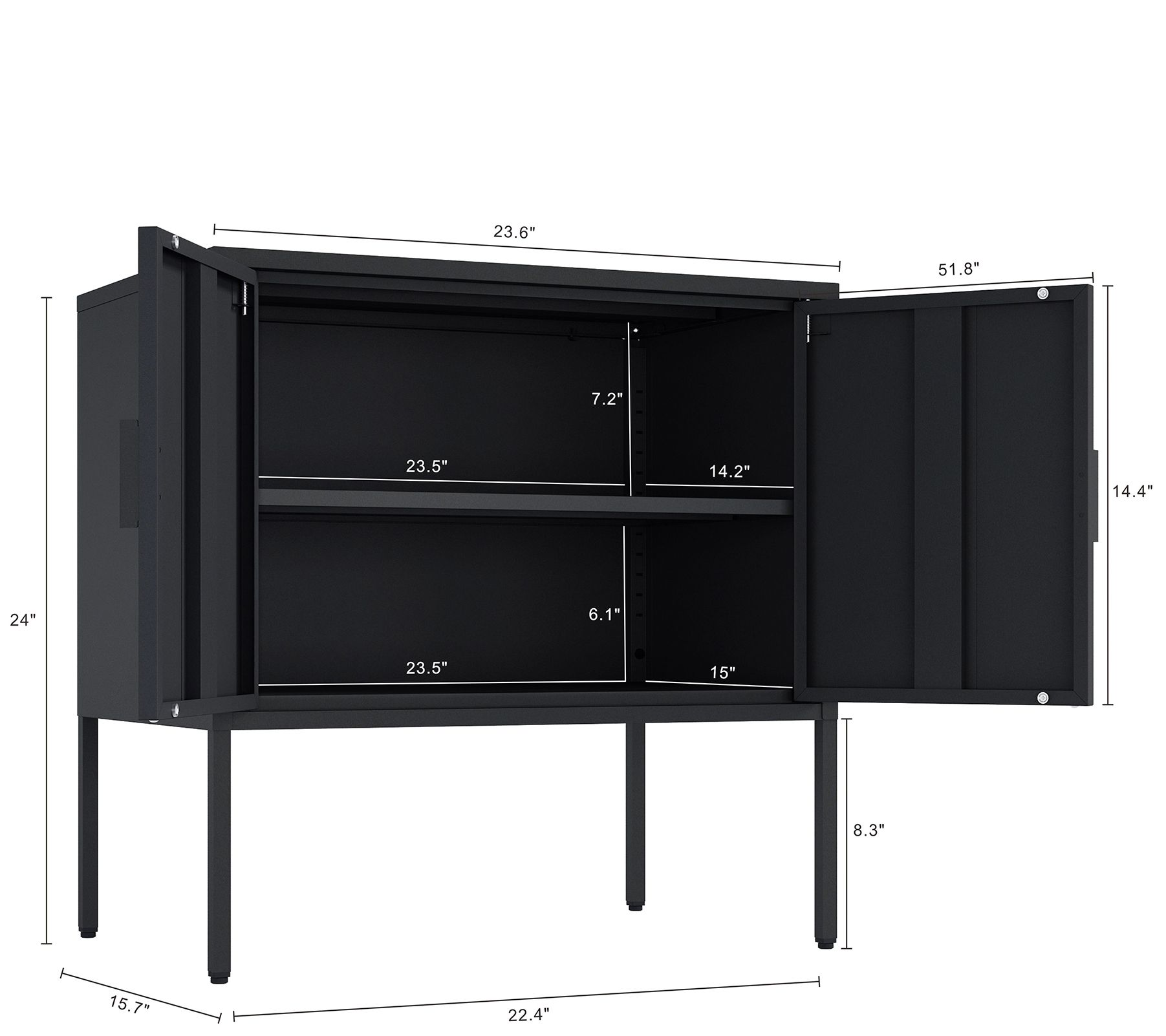 • Two standard doors with vertical metal handles