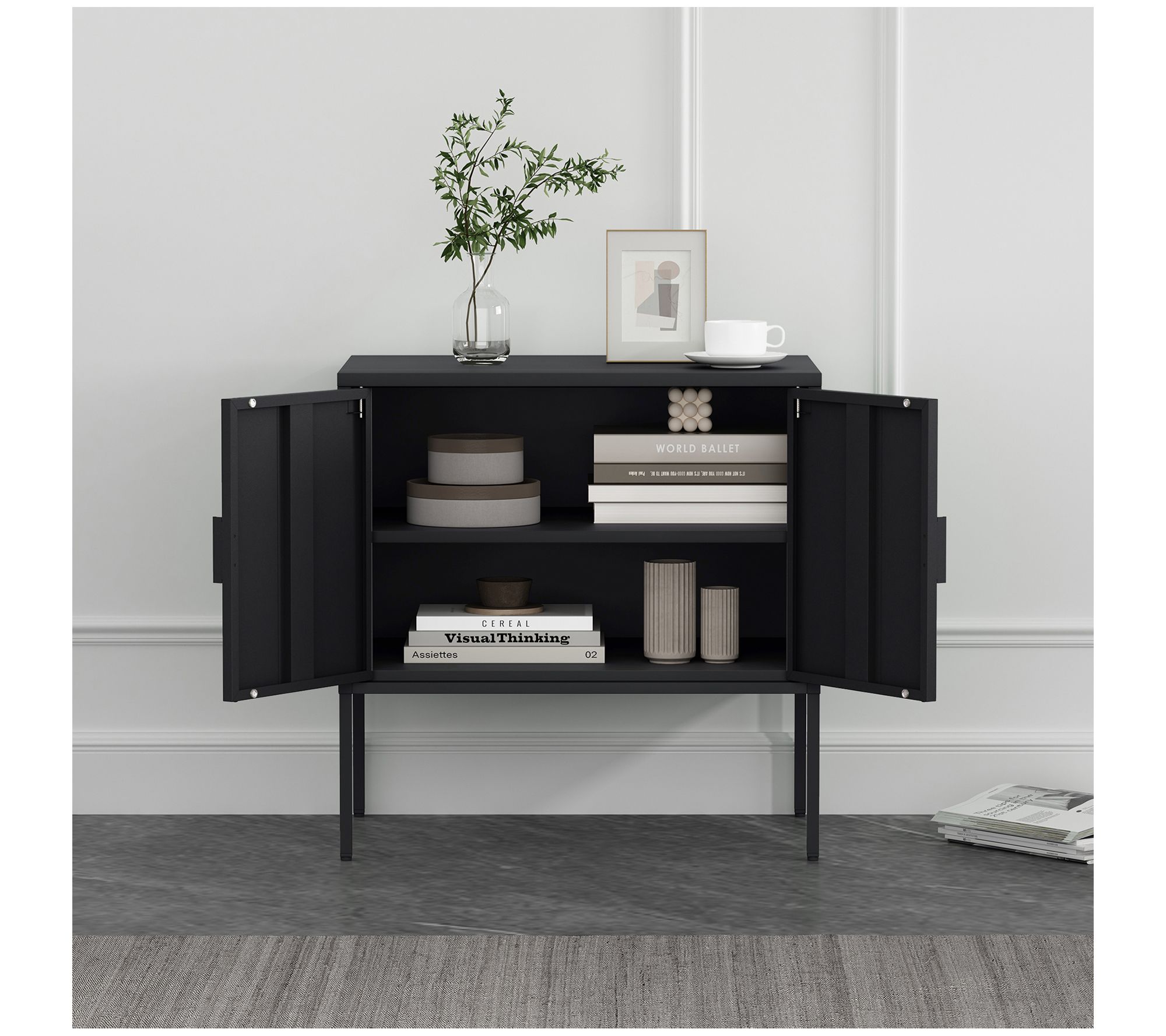 Picture this sleek metal accent cabinet in your living room, serving as both a functional and stylish focal point. Whether you’re storing linens, books, or decor, its clean lines and matte finish add a modern touch to any space. With adjustable shelves and sturdy construction, this piece is as practical as it is elegant. From Manhattan Comfort.