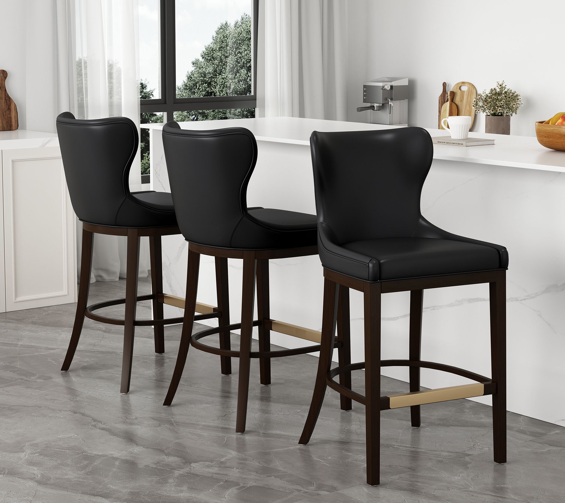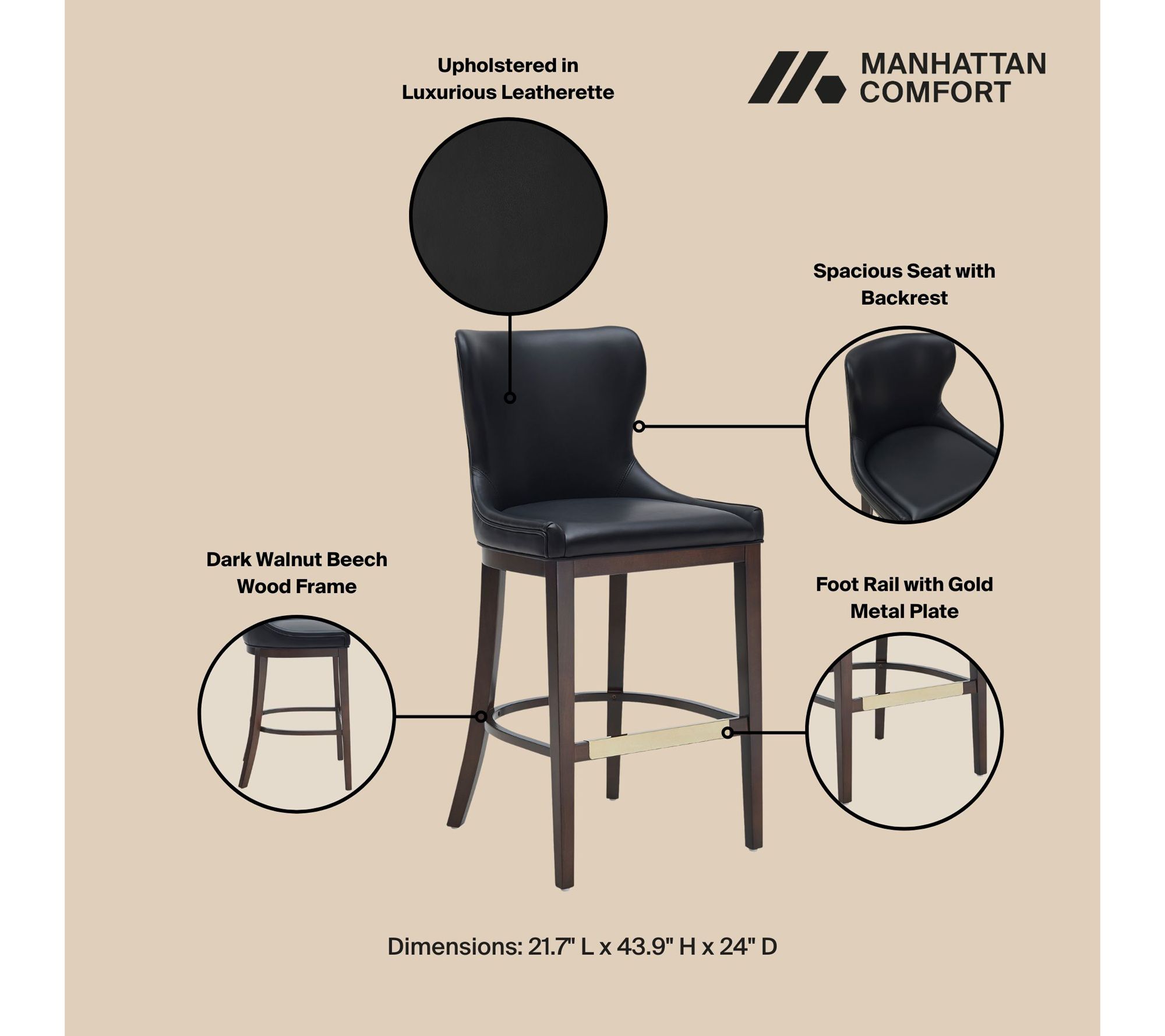 Welcome guests in style with this set of three Blair barstools, designed to add a contemporary touch and extra seating to your kitchen island or home bar. Comfortable contours and stable construction make them a smart choice for everything from casual breakfasts to lively evening gatherings. From Manhattan Comfort.