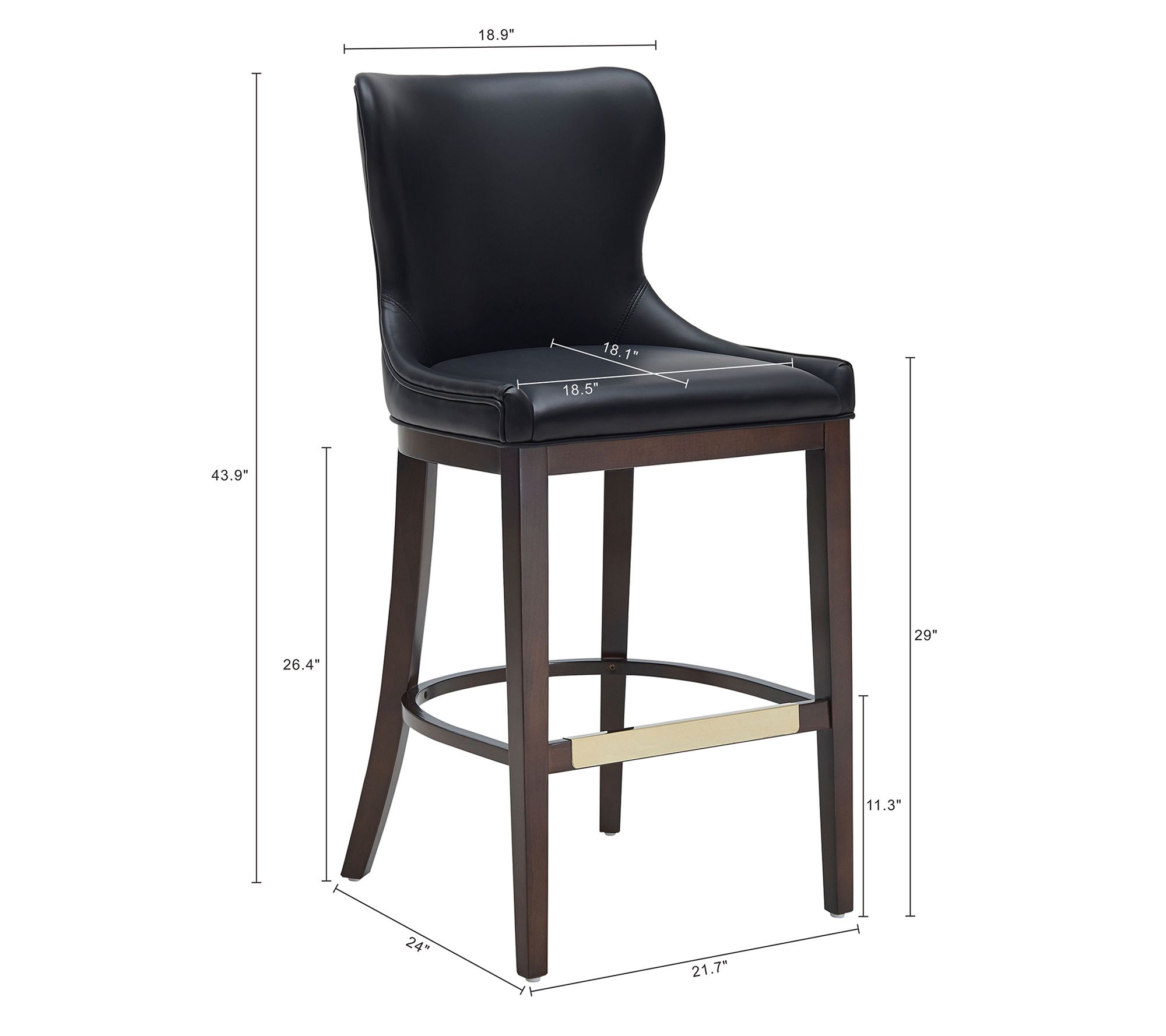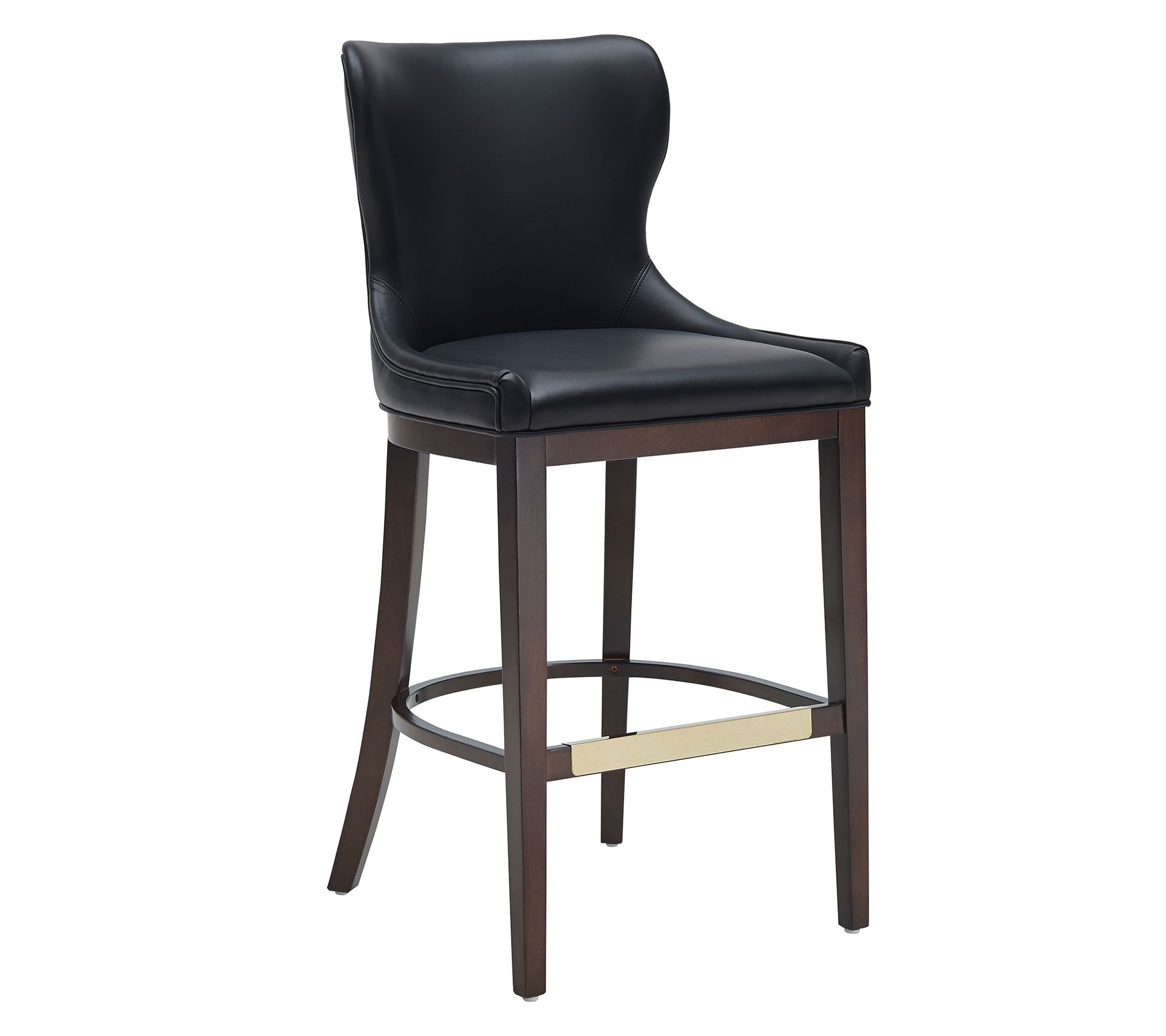 • Gently curved backrest; plush padded seat; armless design; goldtone metal footrest