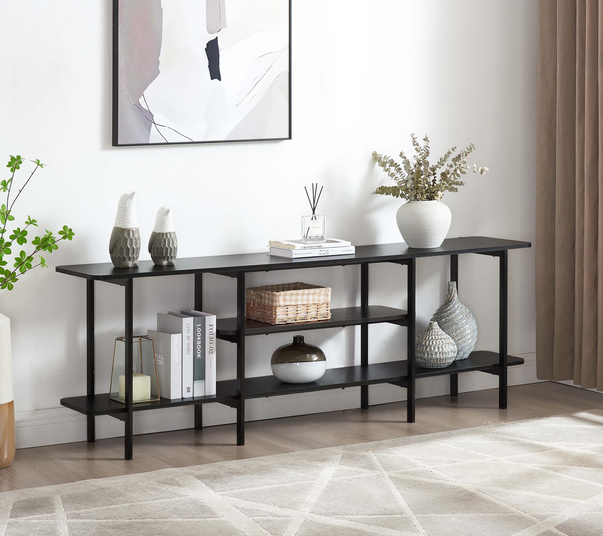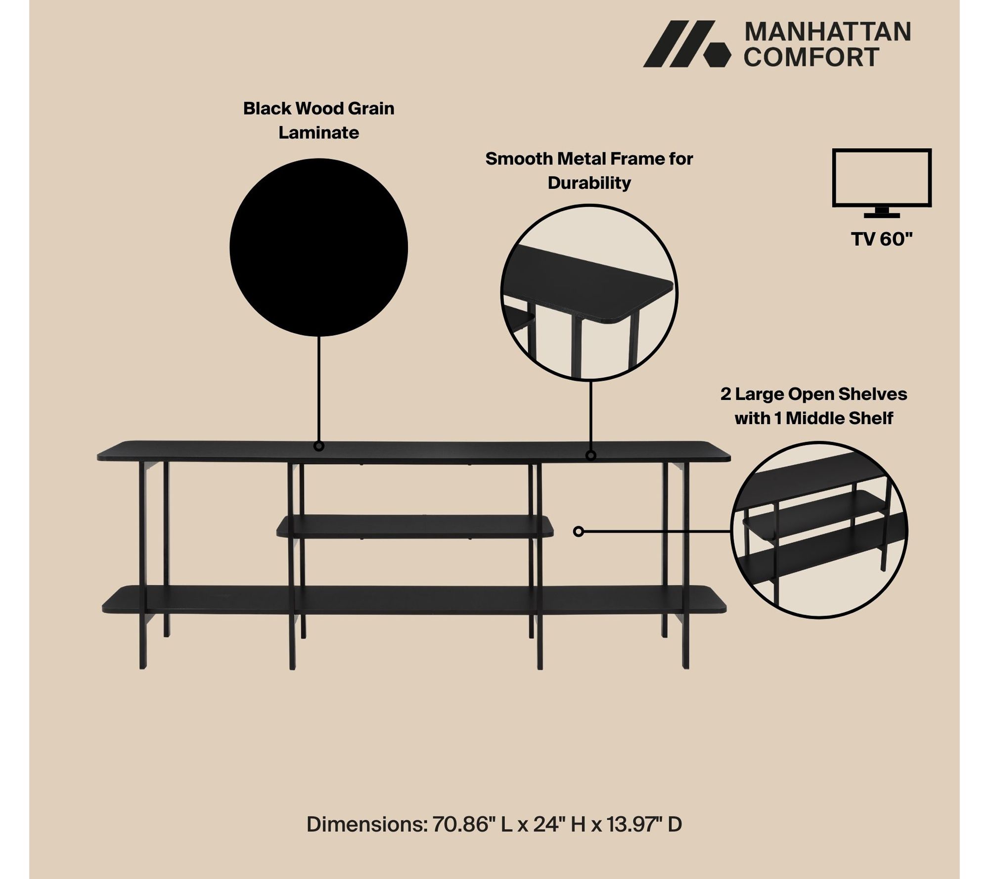 Morning sunbeams find the perfect landing spot on this table, inviting you to settle in with coffee and a good book. Three fixed shelves give you room to showcase treasured trinkets or keep your everyday essentials within reach. Looks right at home beside your favorite reading chair or tucked neatly in an entryway. From Manhattan Comfort.