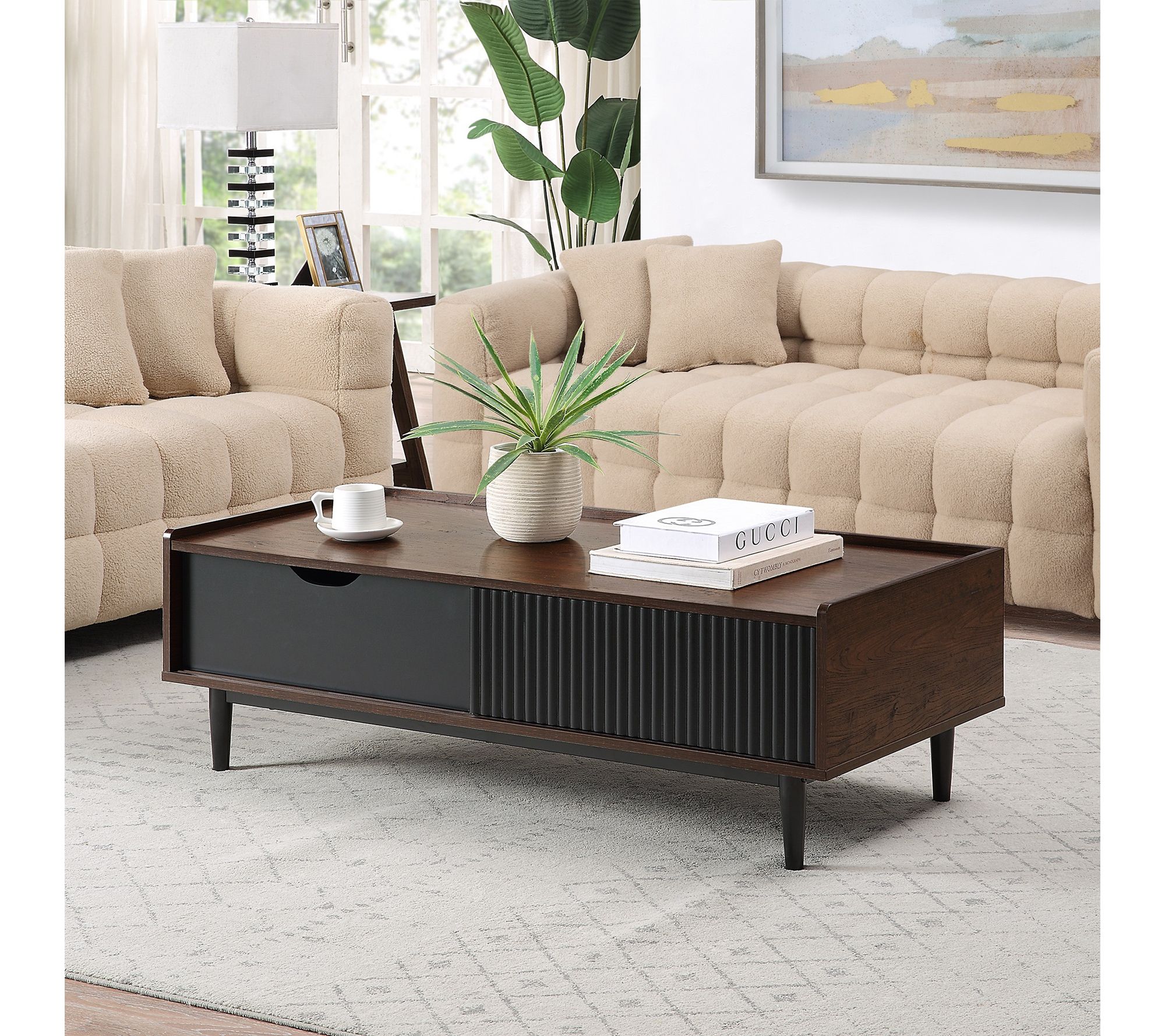 Create a welcoming spot for cozy coffee mornings or evening chats with this versatile table set. The Manhattan Comfort Duane 2-piece coffee table and end table set enhances your living space with coordinated style, offering functional surfaces for everything from drinks and snacks to your favorite decor accents. From Manhattan Comfort.