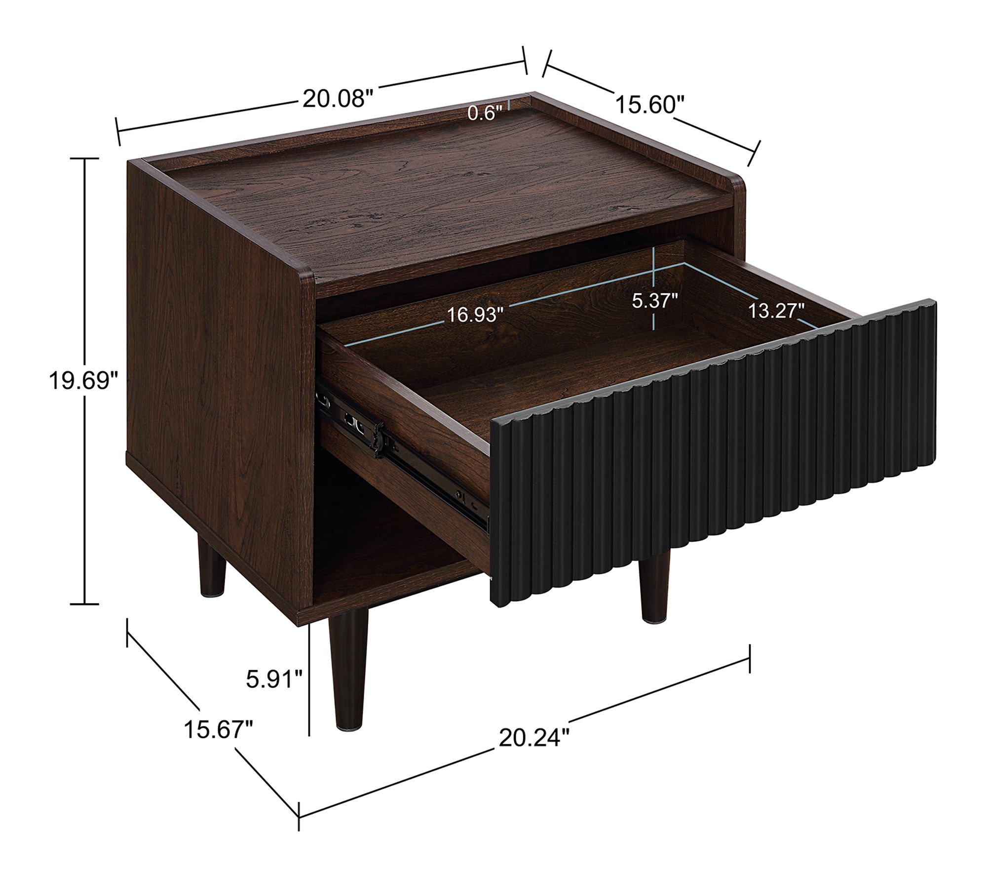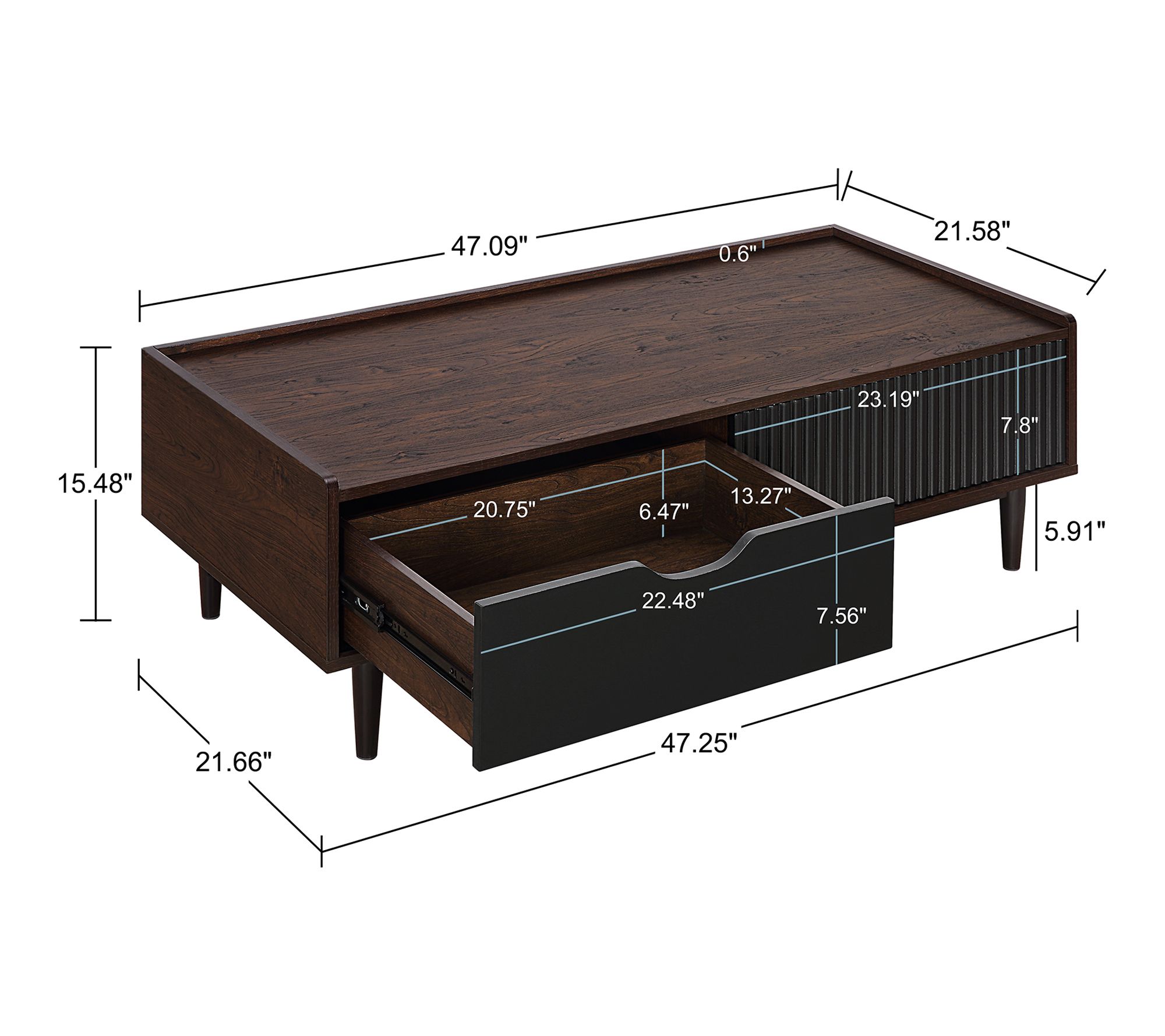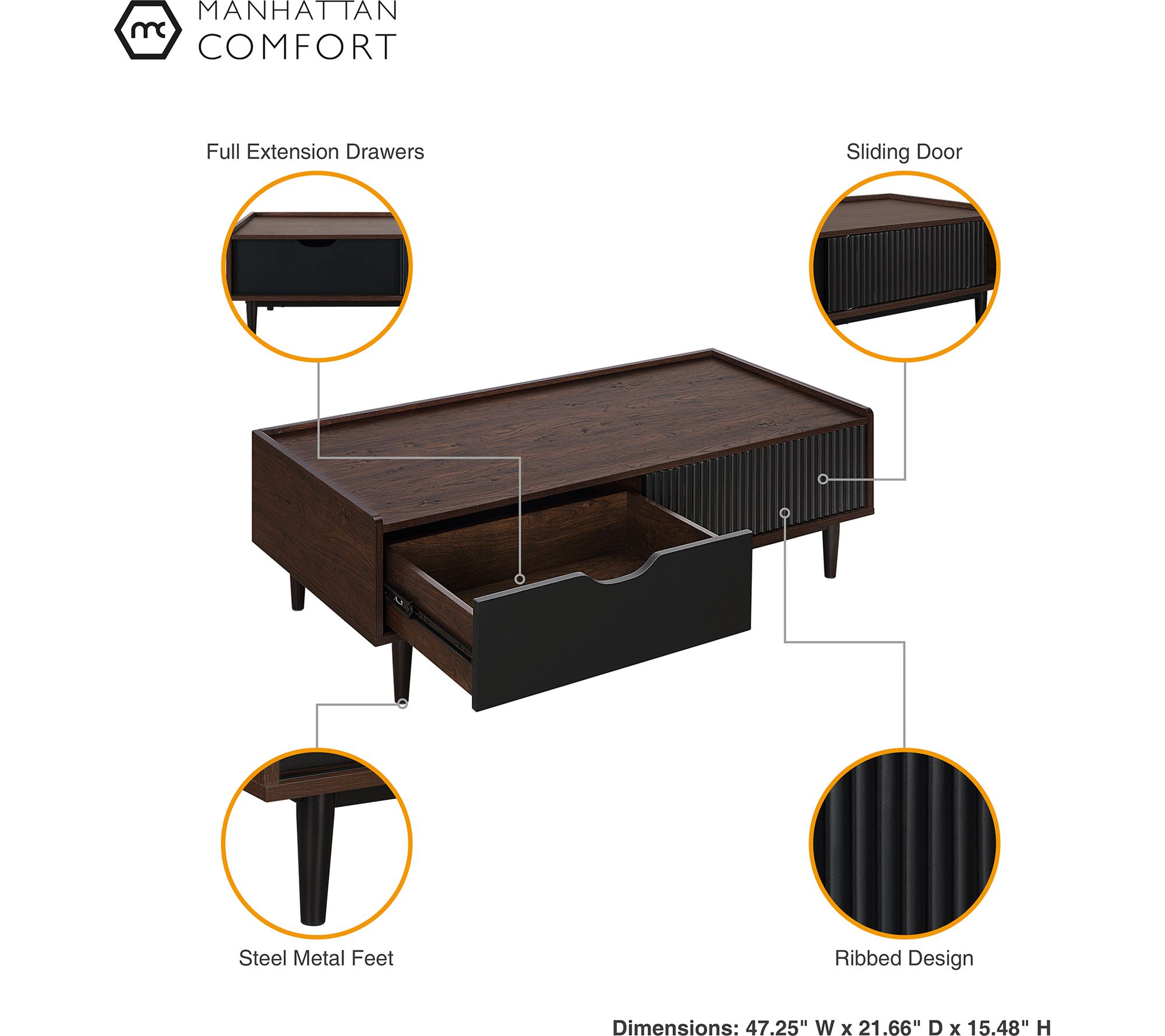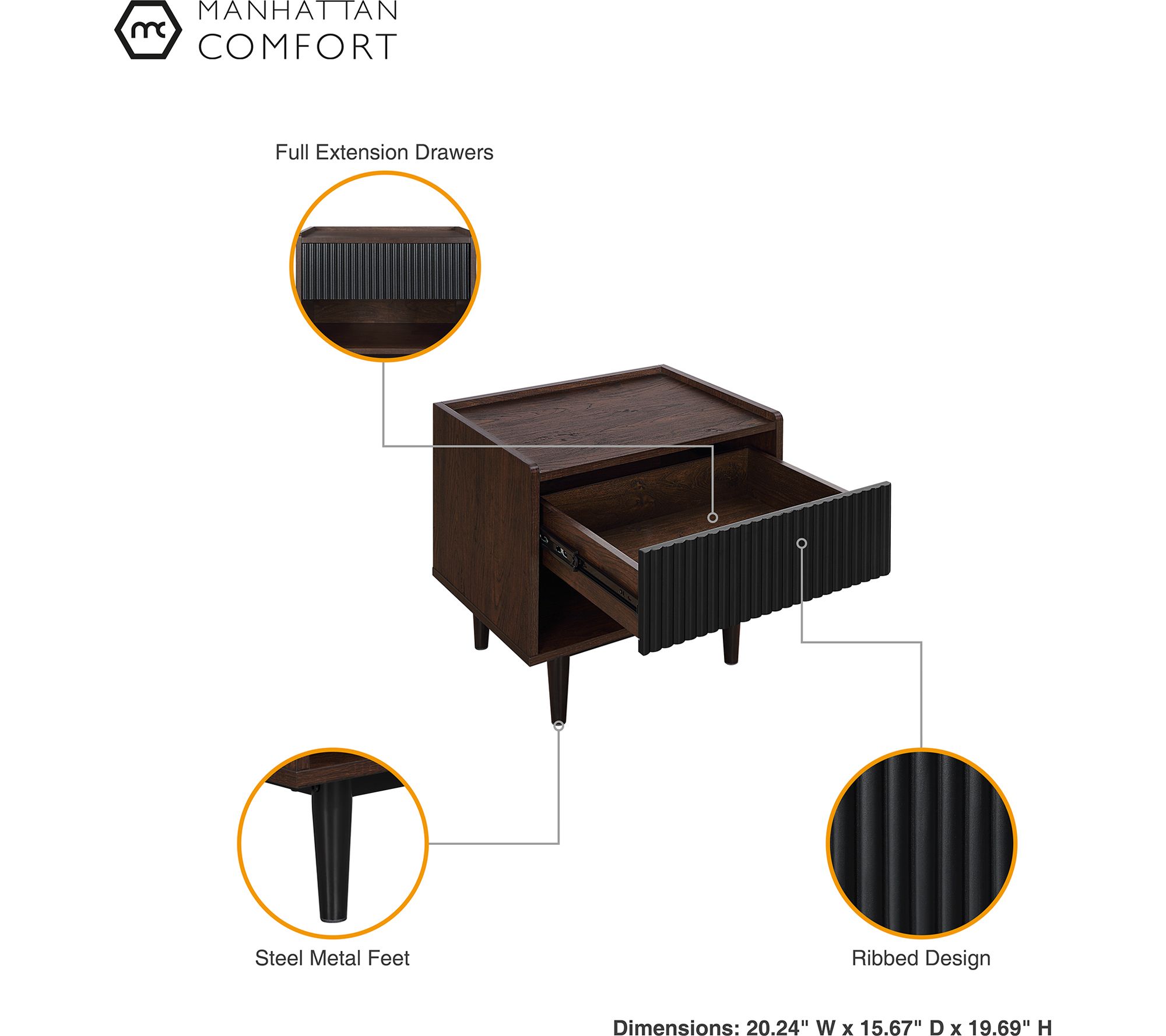 • Measurements: Table 47.24"L x 15.47"H x 21.65"D; Nightstand 20.23"L x 19.68"H x 15.66"D