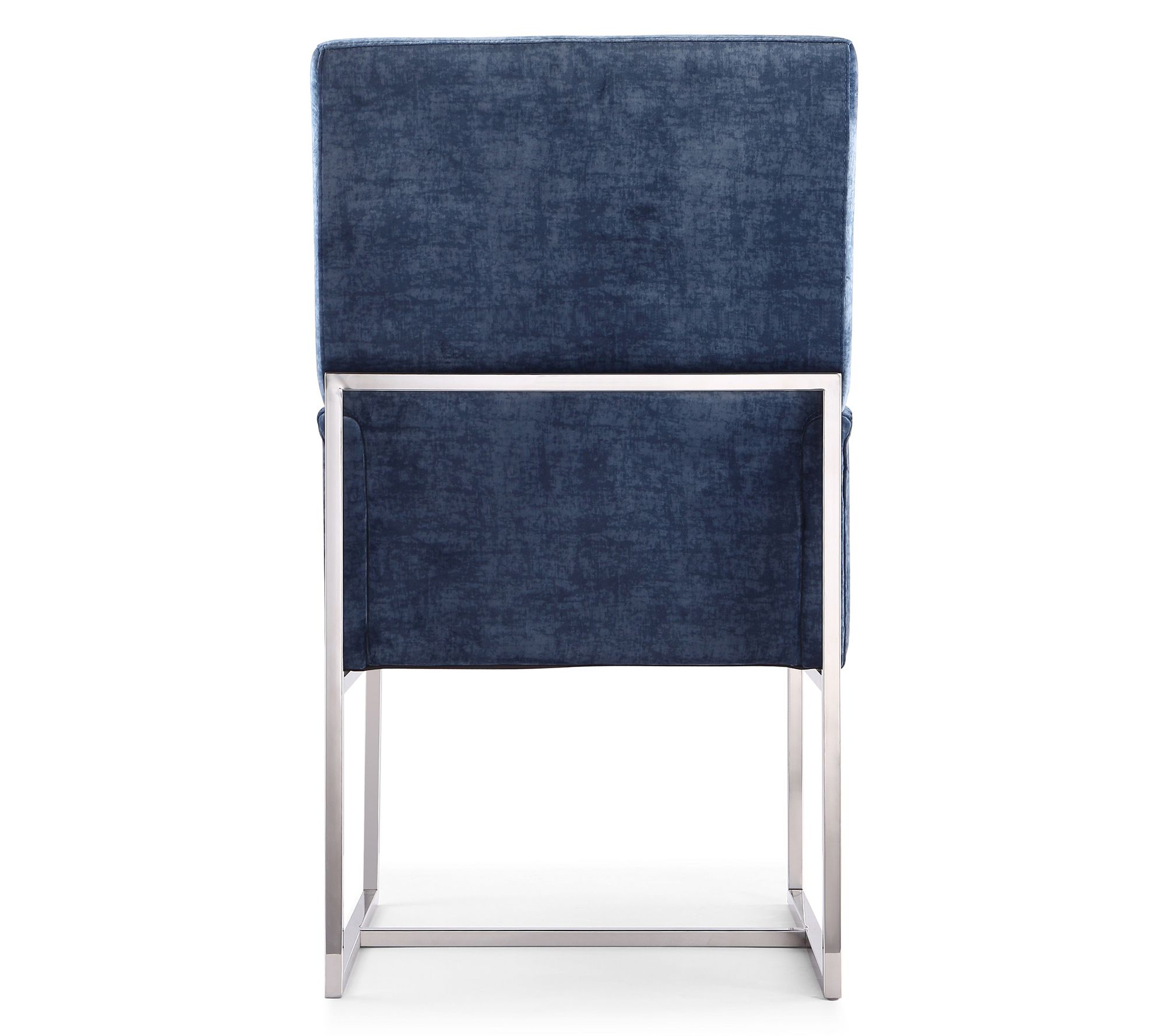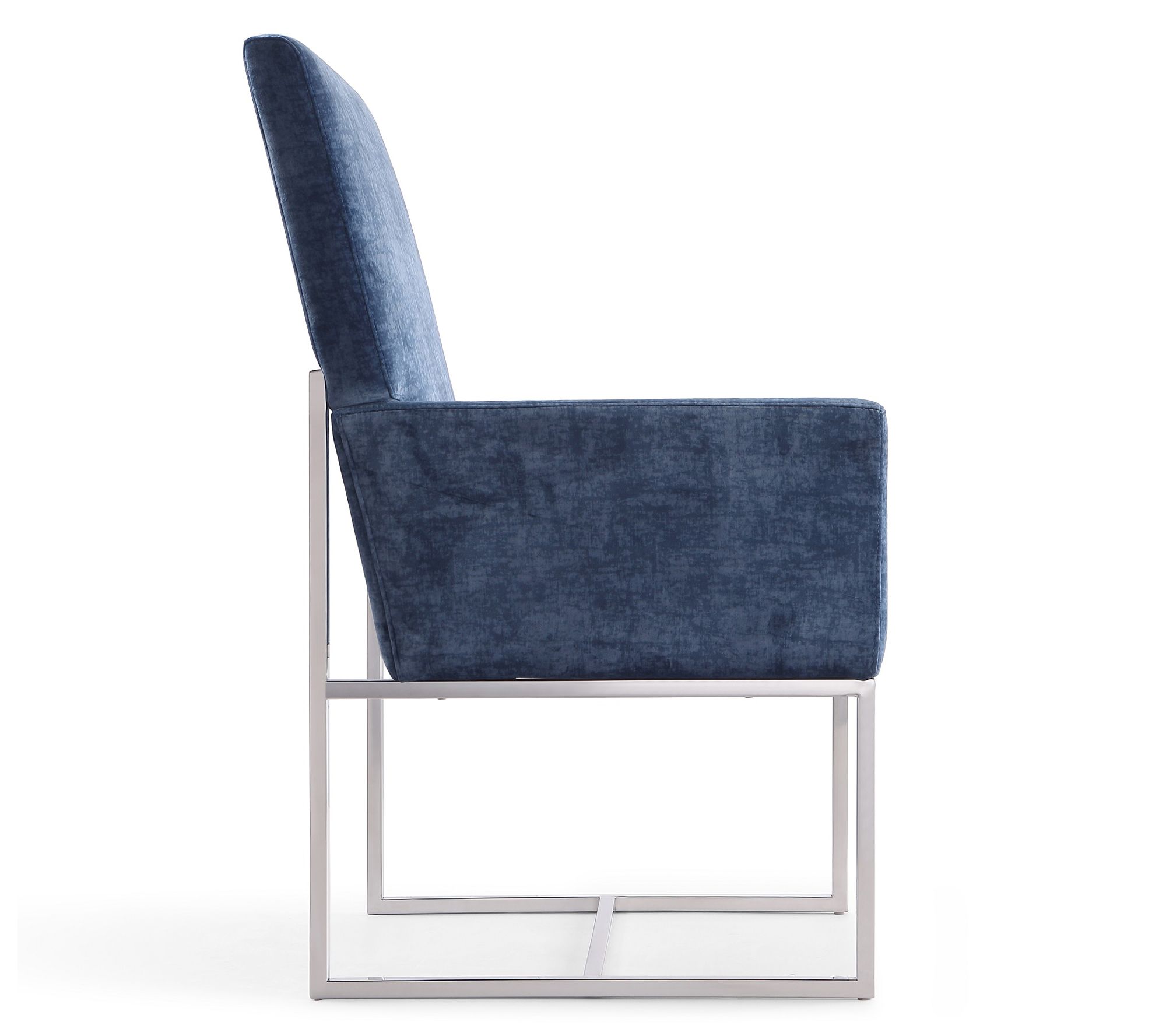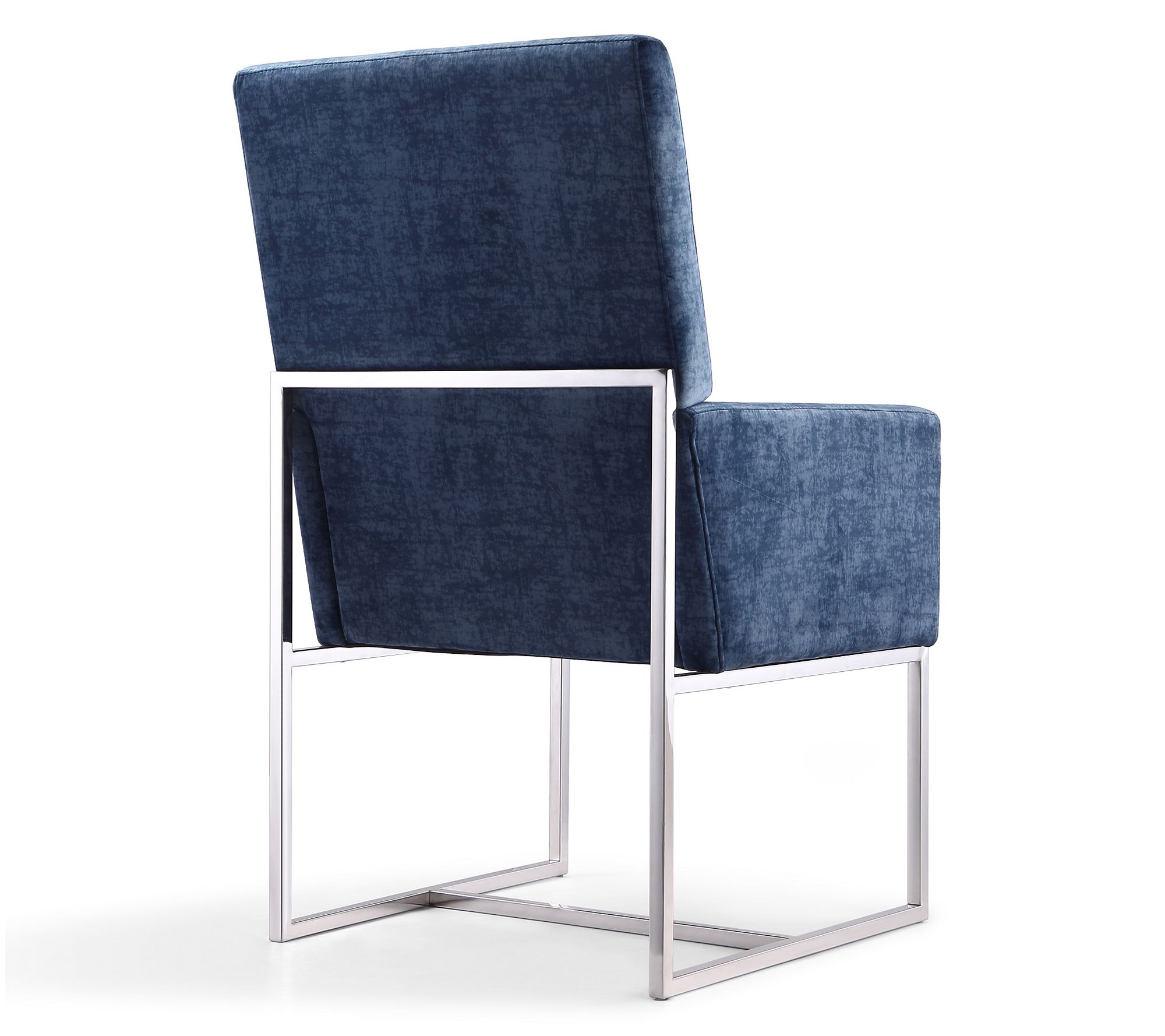 Gatherings become a stylish affair when you settle into this high-back dining armchair. Its slender silhouette and polished chrome frame bring a vibrant, contemporary look to the table, while cushioned velvet upholstery invites guests to linger just a little longer. Pair it with your dining set or let it accent your living space -- it always finds a way to shine. From Manhattan Comfort.