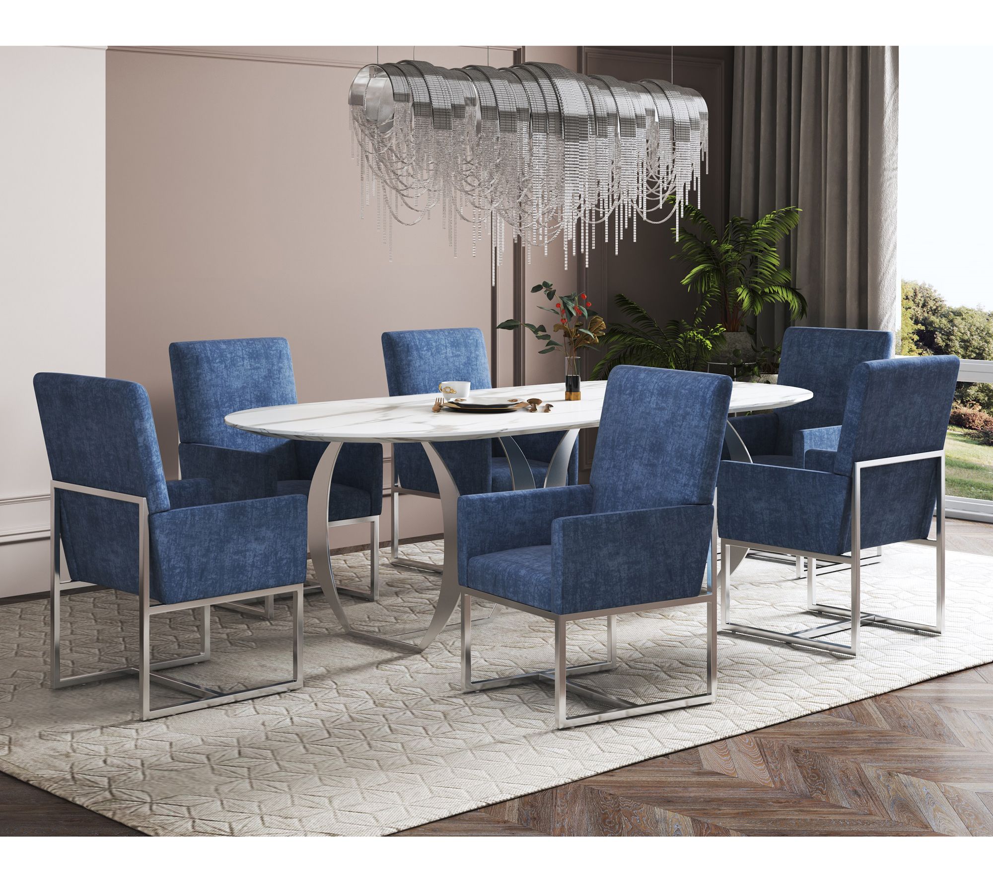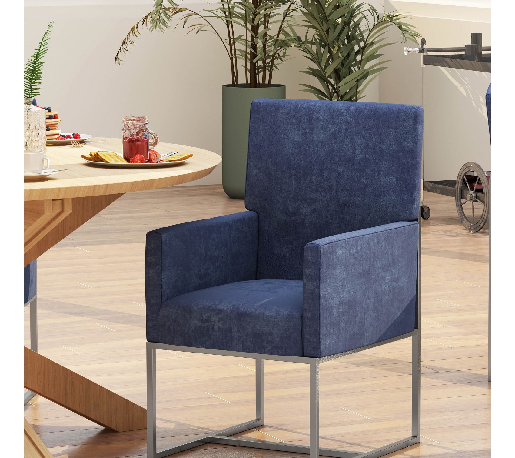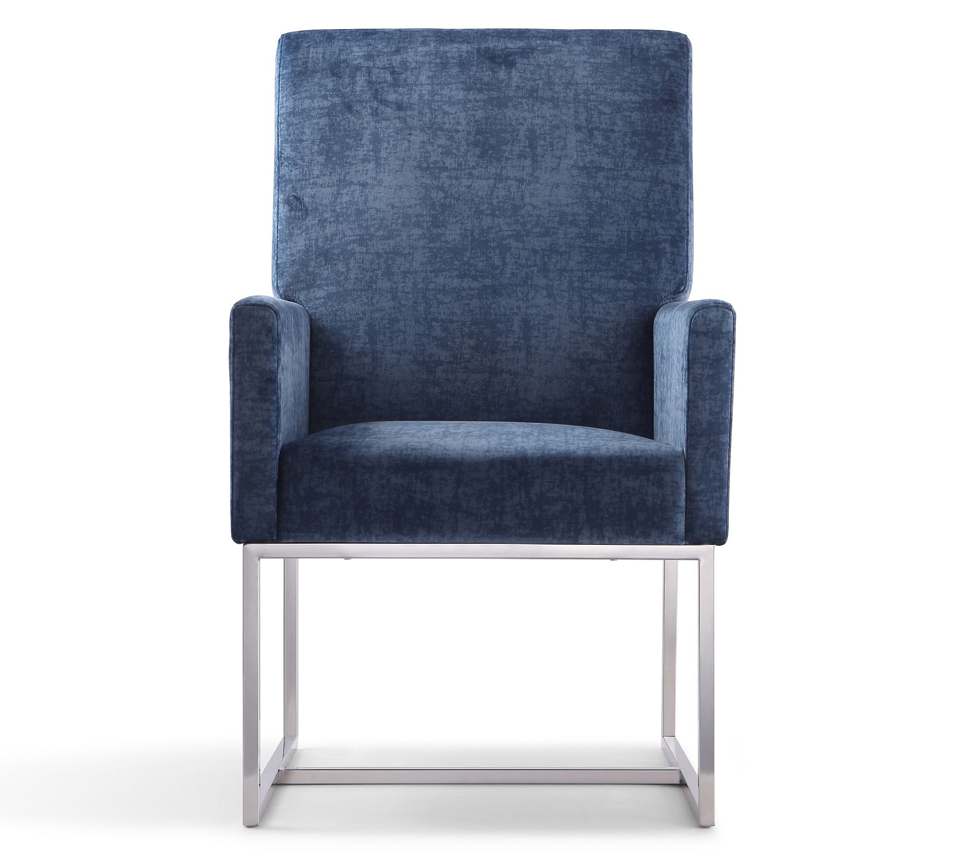 Gatherings become a stylish affair when you settle into this high-back dining armchair. Its slender silhouette and polished chrome frame bring a vibrant, contemporary look to the table, while cushioned velvet upholstery invites guests to linger just a little longer. Pair it with your dining set or let it accent your living space -- it always finds a way to shine. From Manhattan Comfort.