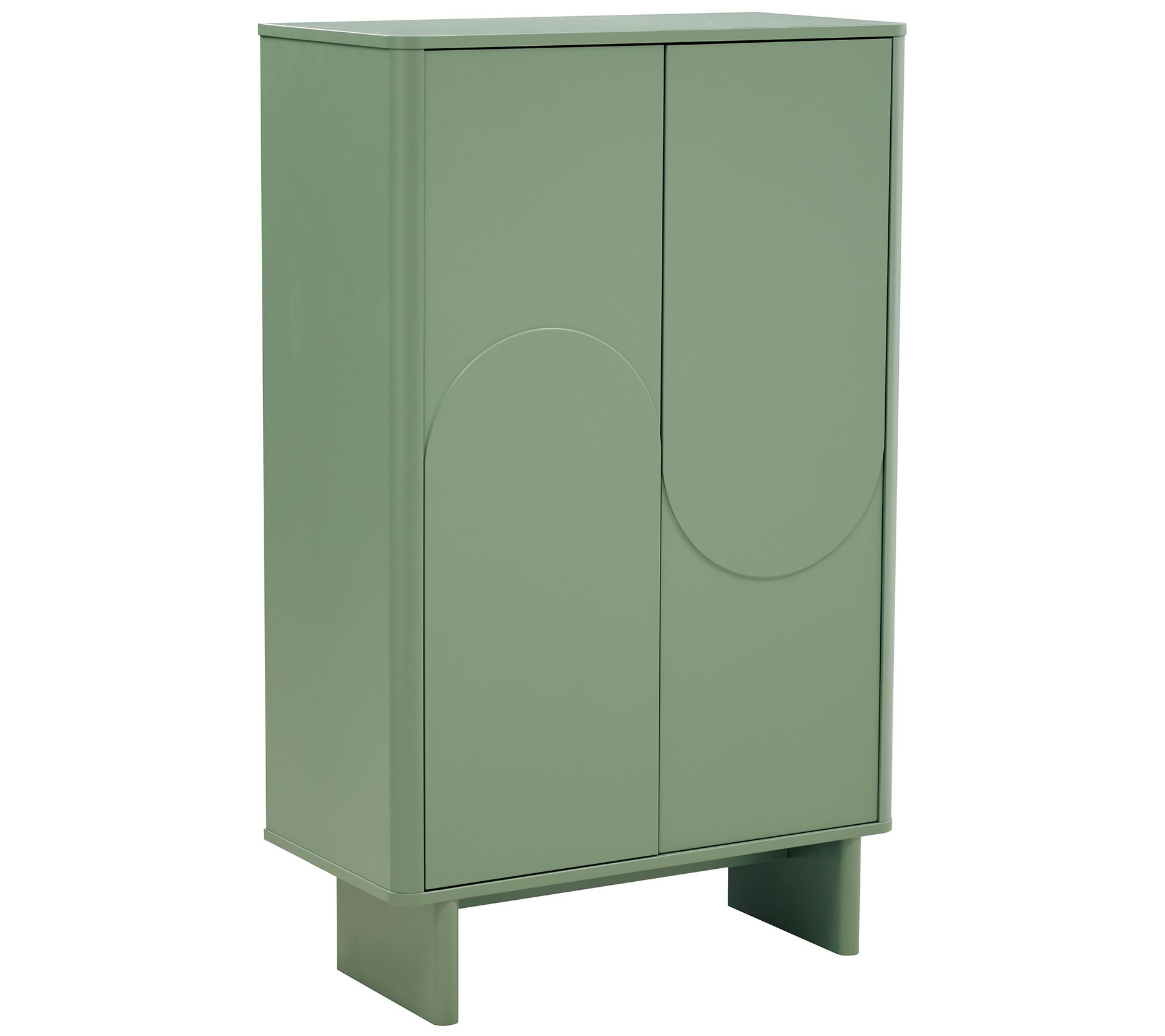 Transform any room into a modern masterpiece with the sleek Ella accent cabinet. Ideal for your dining room, living room, or bedroom, this cabinet offers functional storage with a stylish twist. Featuring two soft-close doors, adjustable shelves, and three cubby spaces, it's designed to keep your essentials organized. The smooth, handle-free doors and thick rectangular sled legs provide a clean, contemporary look. From Manhattan Comfort.