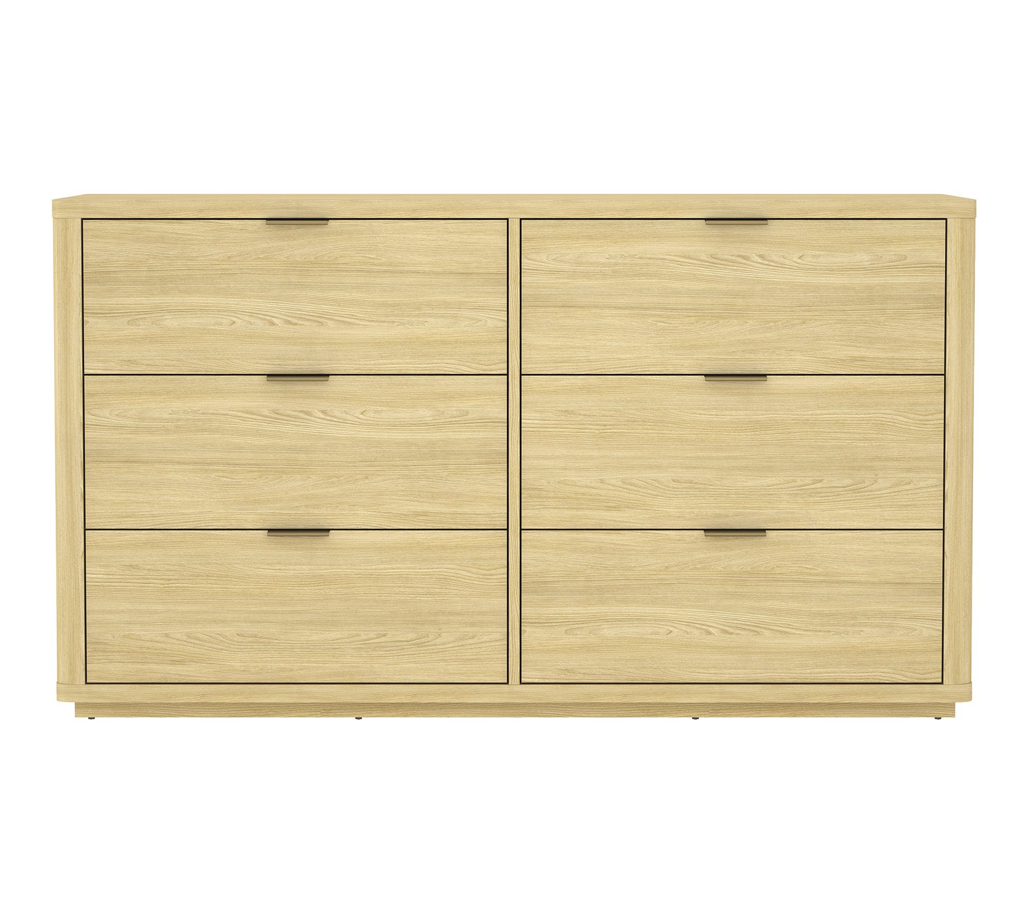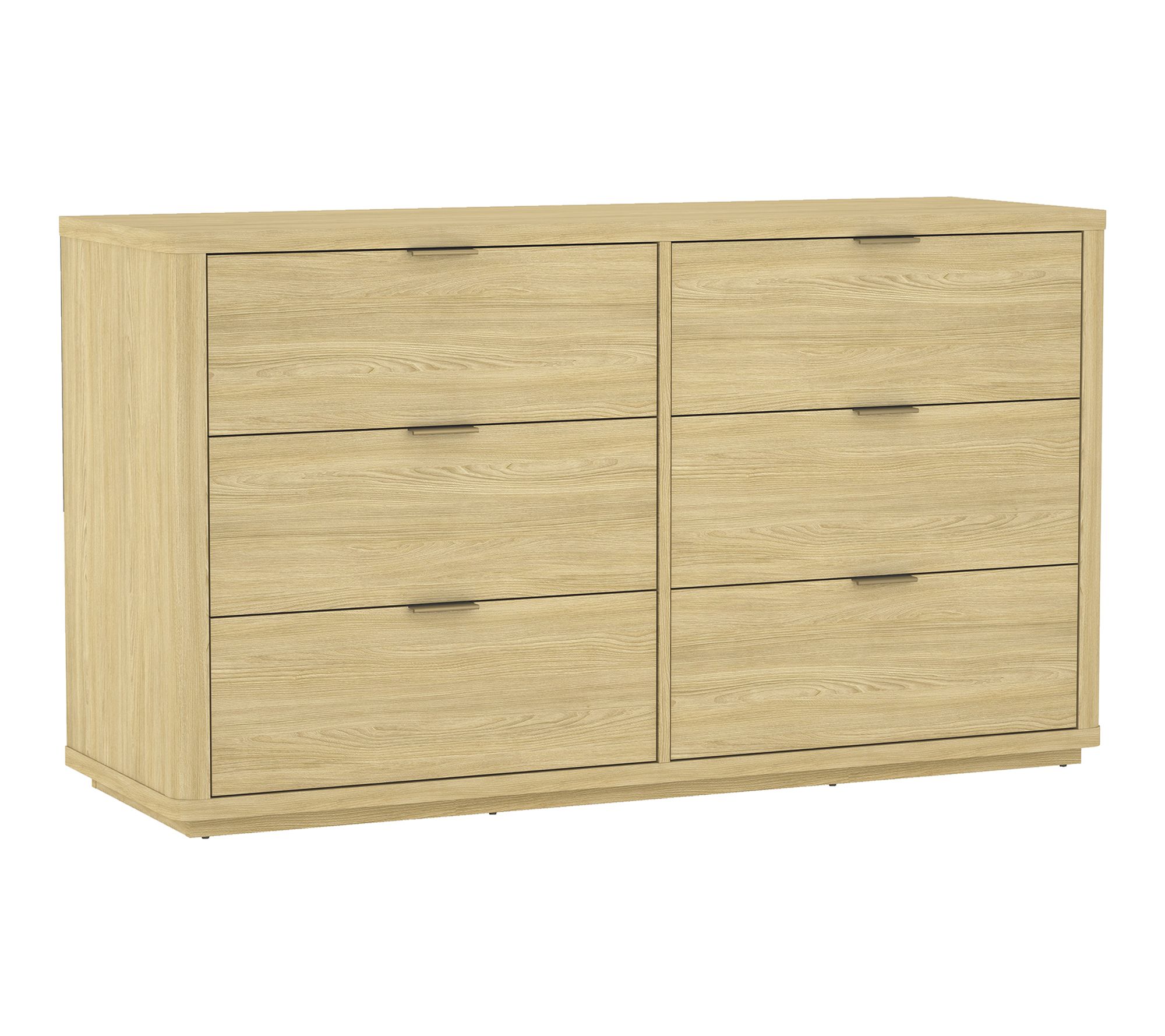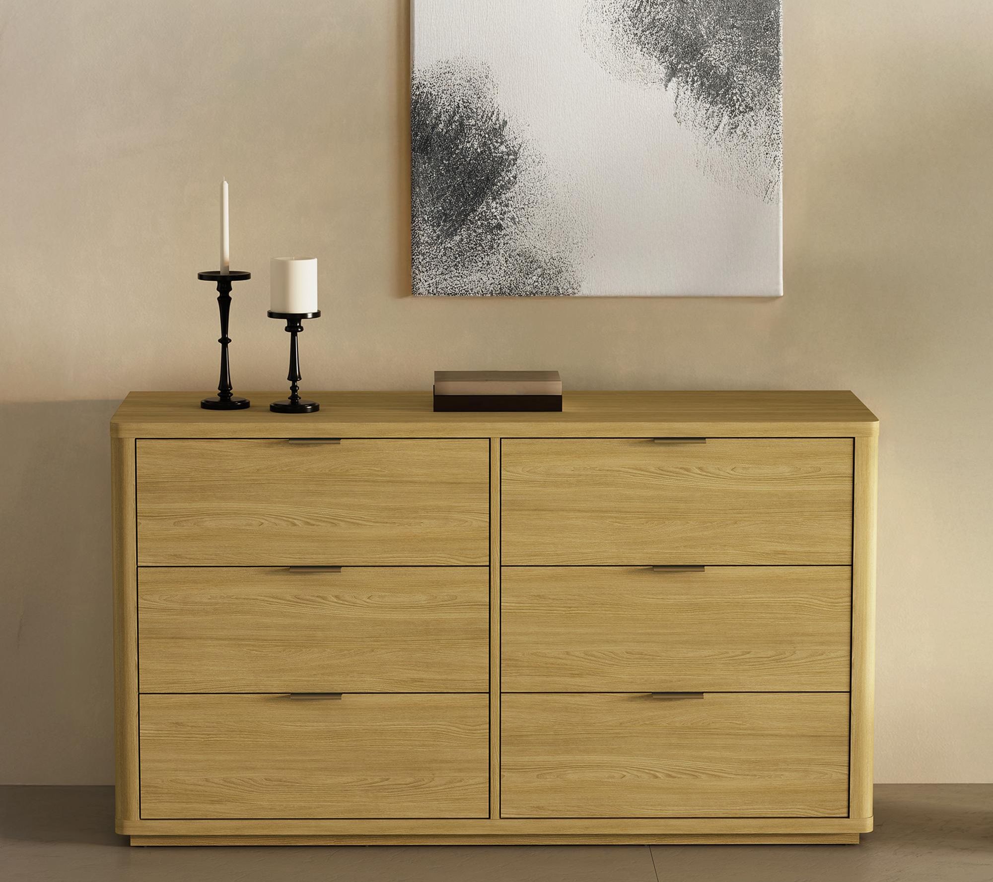 Softly rounded edges and sleek symmetry bring a sense of quiet luxury to any bedroom with this six-drawer dresser. Thoughtfully designed for functionality, its smooth-glide drawers keep your essentials organized, while brushed goldtone hardware adds a graceful touch of style. From Manhattan Comfort.