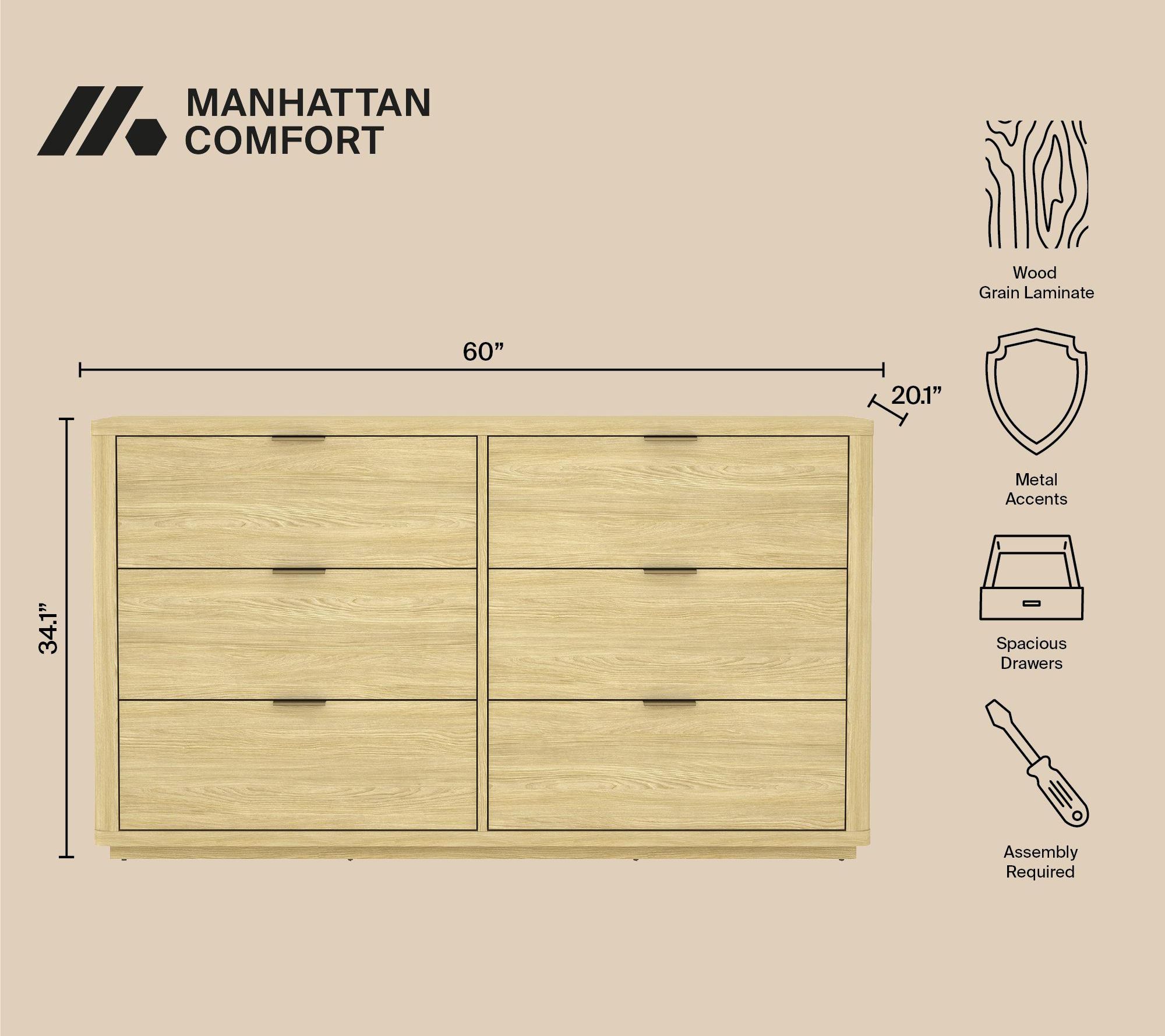 Manhattan Comfort Evalyn 60" Dresser (6-Drawer)