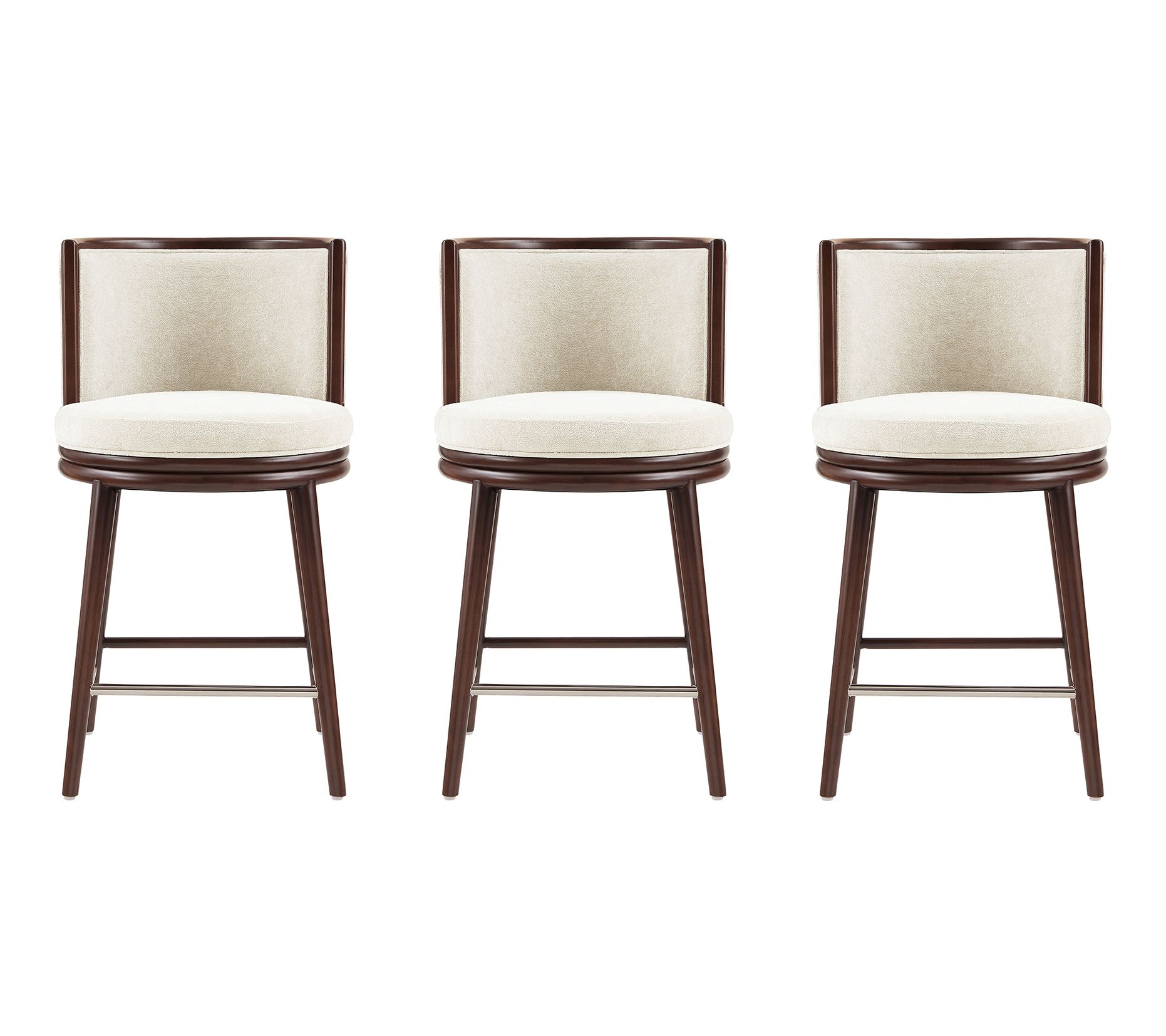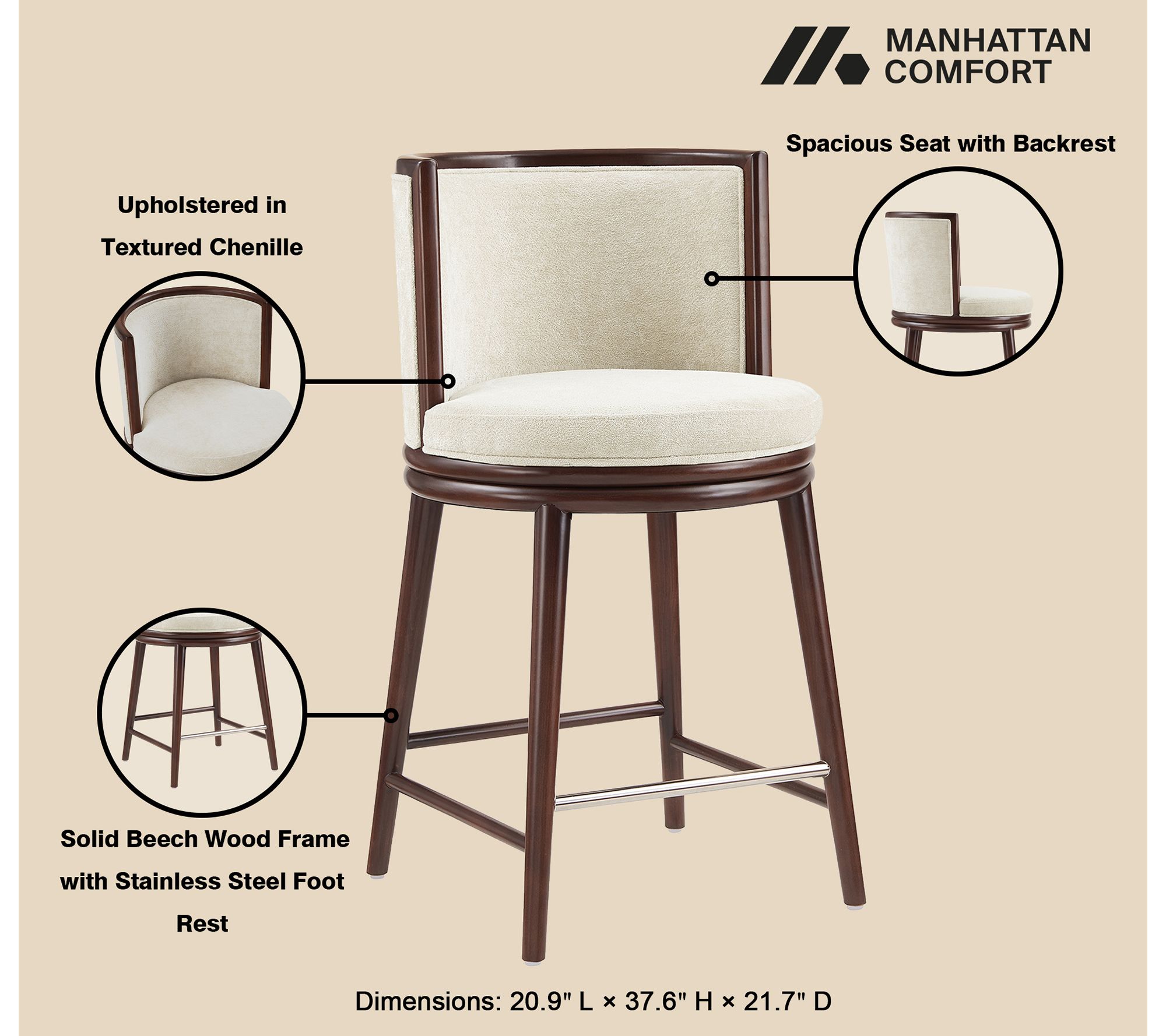 Gather friends and family around your kitchen island or home bar on these Evalyn counter stools that balance classic comfort and style. With plush upholstery atop a sturdy beech wood frame and a sleek metal footrest, you'll enjoy lingering over long meals or lively conversation. From Manhattan Comfort.