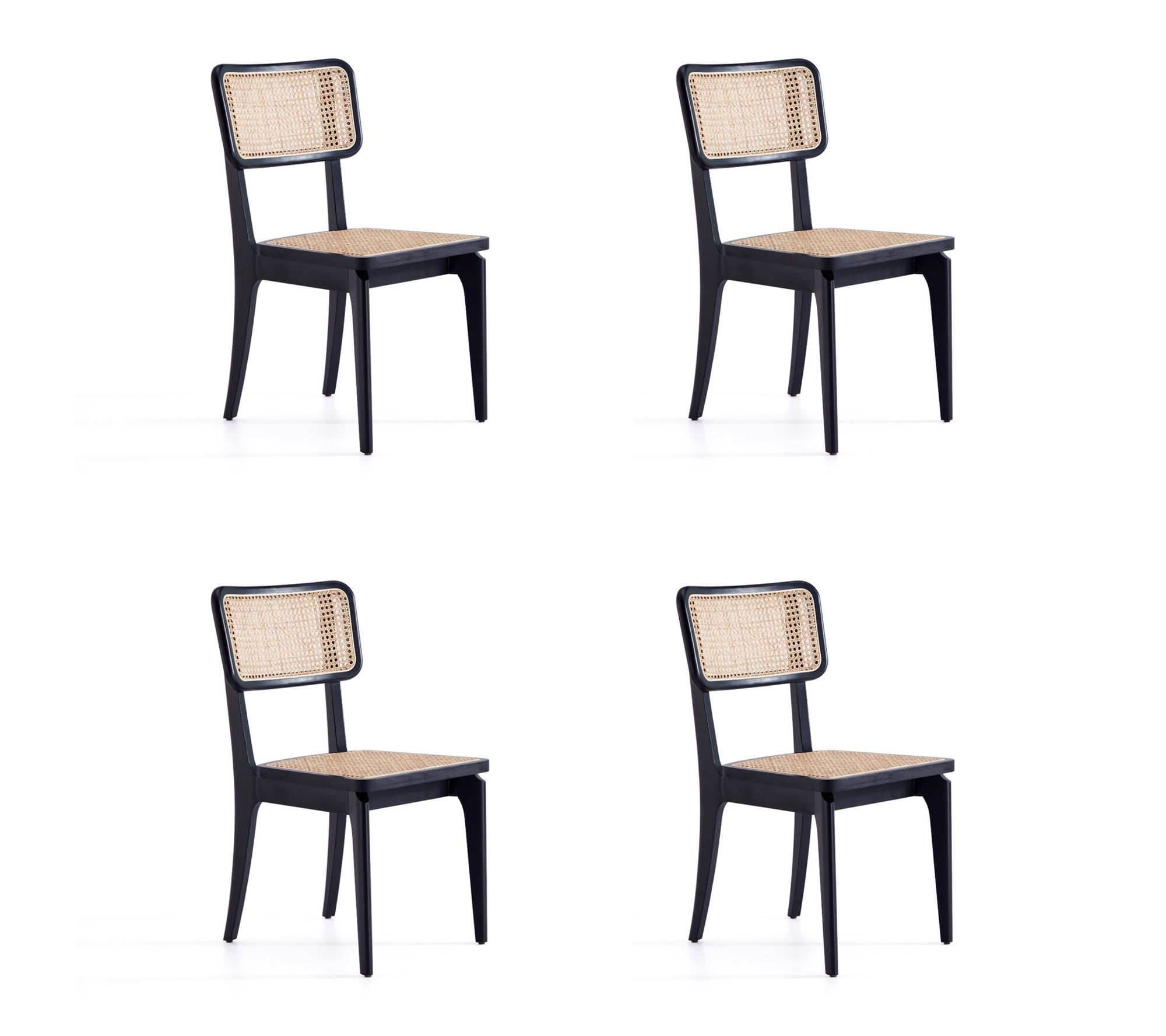 A dinner party feels effortlessly stylish when guests settle into these modern dining chairs. With refined lines, rich ash wood, and an airy cane seat and back, this set of four instantly brings an industry-chic edge to your dining space -- perfect for everything from casual brunches to special celebrations. From Manhattan Comfort.