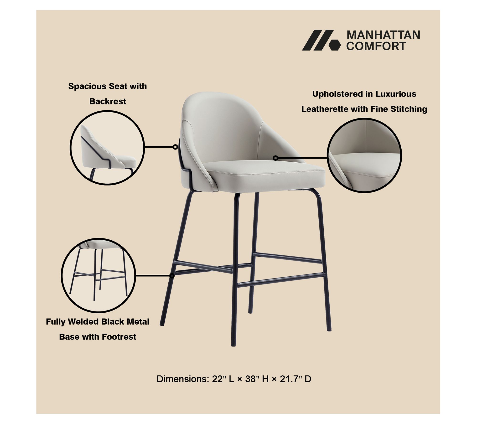 Whether you're hosting a casual brunch or a sophisticated soire, this counter stool will add a dash of elegance to your space. The luxurious leatherette upholstery ensures every meal or conversation feels special. The sleek, sculpted design seamlessly blends comfort and modern sophistication, making it an essential addition to any bar or kitchen setup. From Manhattan Comfort.