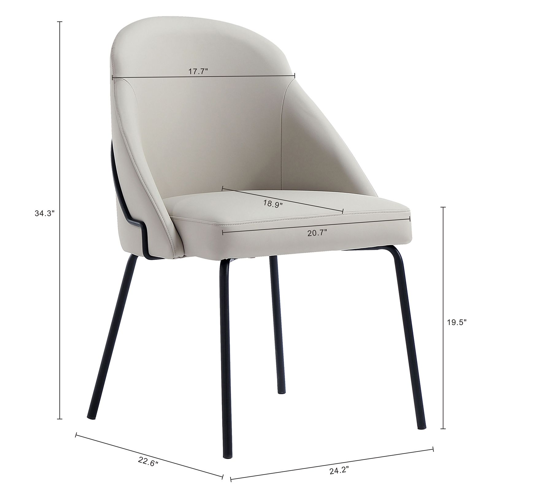 • Seat height approximately 19.5"