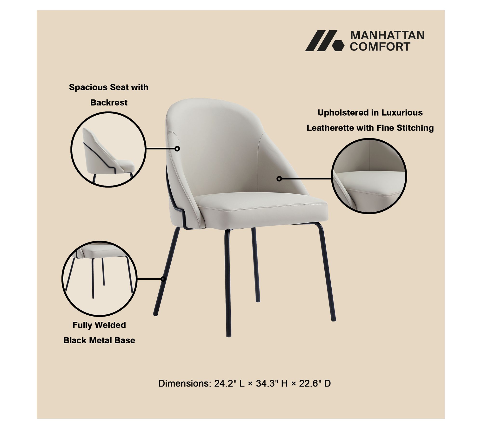 Gather friends and family around a table that feels as welcoming as it looks. Plush faux leather surrounds a gently sculpted seat, offering comfort through every leisurely meal or lively conversation. Polished metal legs lend a modern edge, while easy-care materials ensure practical style is always within reach. From Manhattan Comfort.